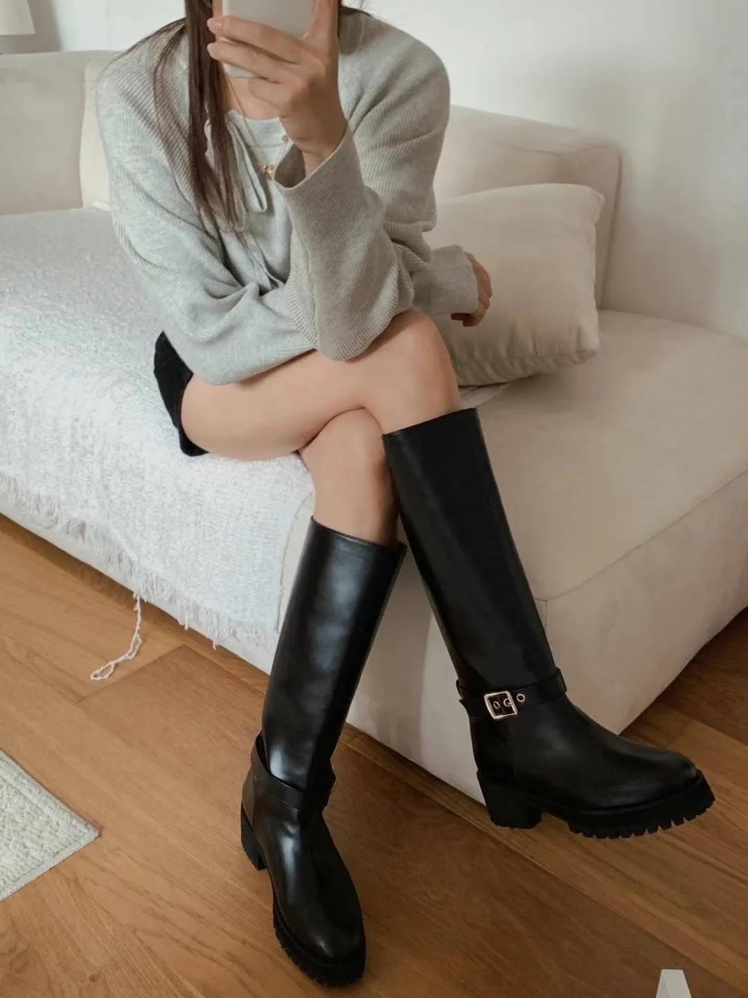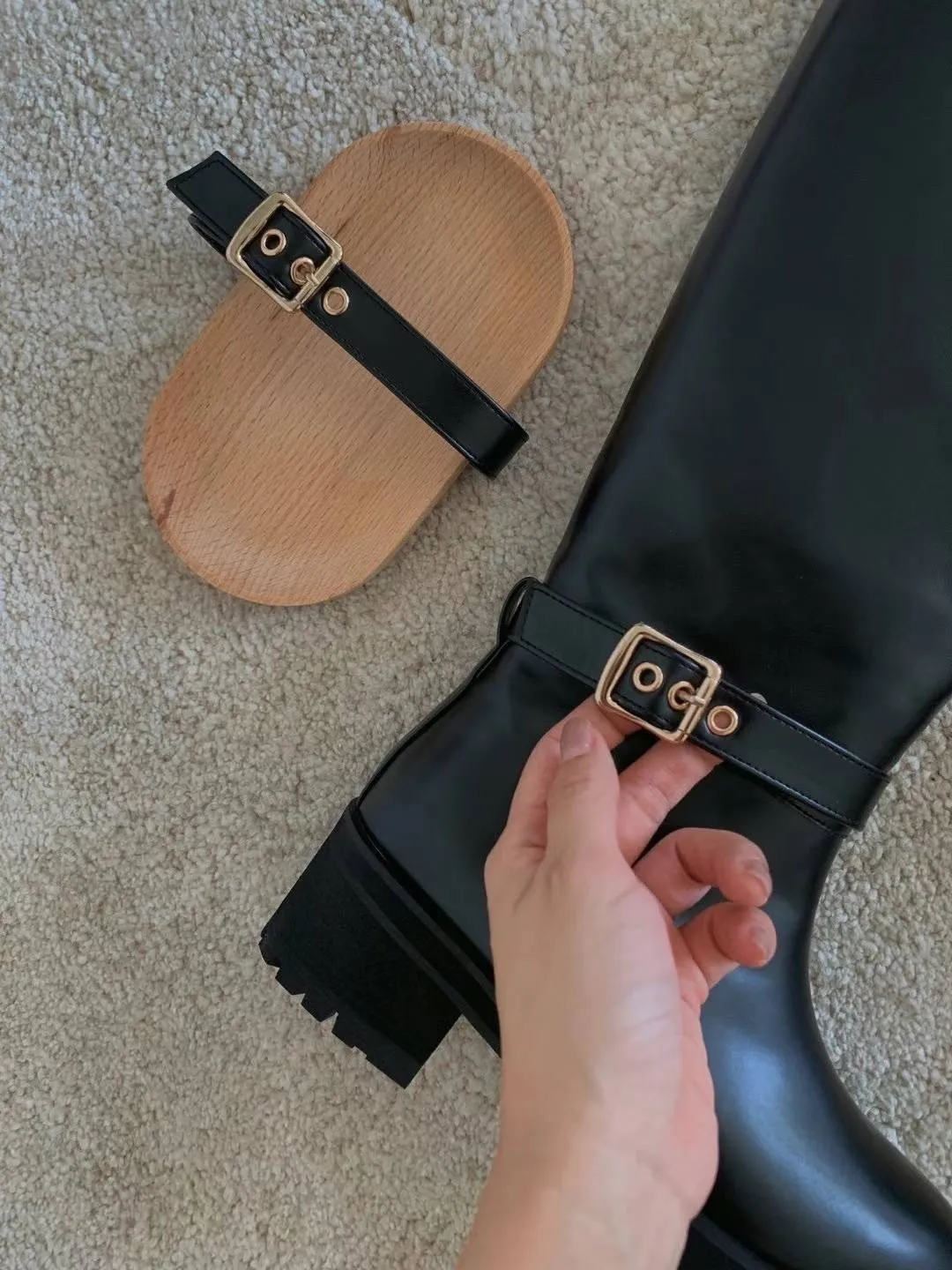 PC759金屬框皮革綁帶長靴230-250(有半號) $1580