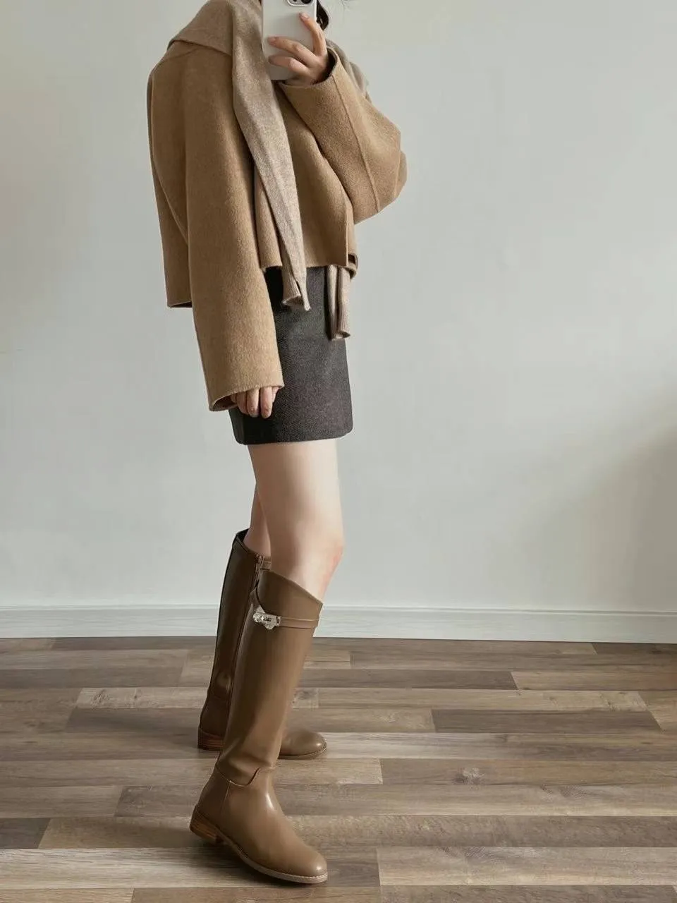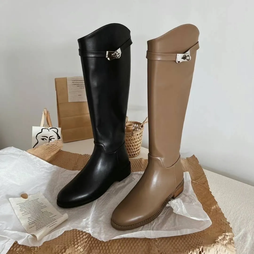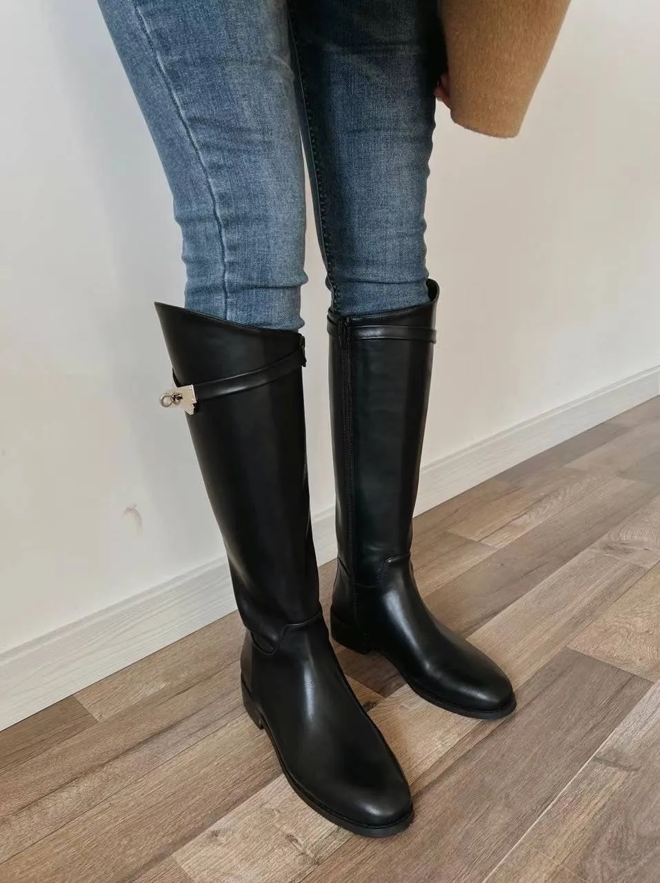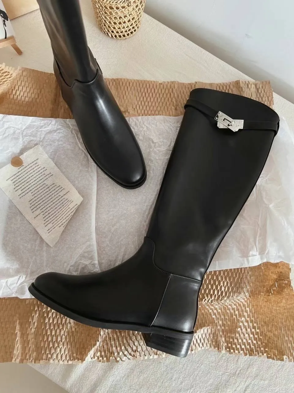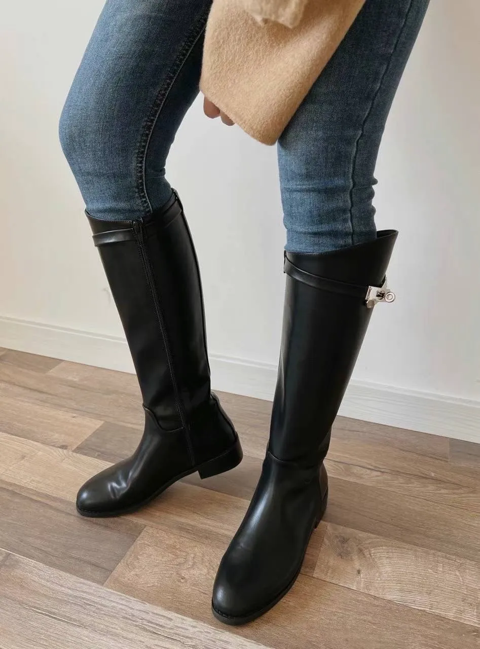 PC763經典極美金屬方框長靴 咖 黑 奶茶 230-250(有半號) $1520