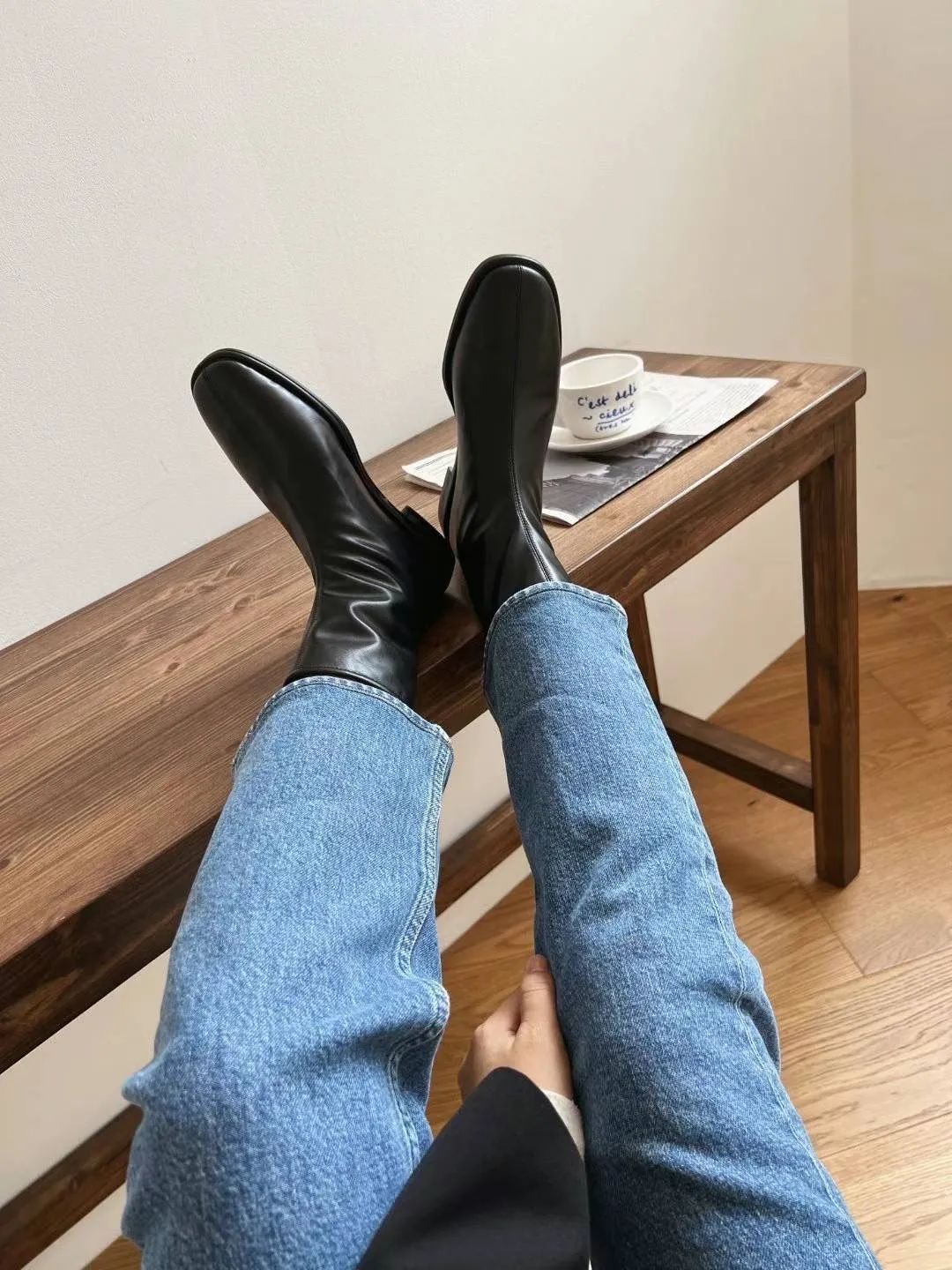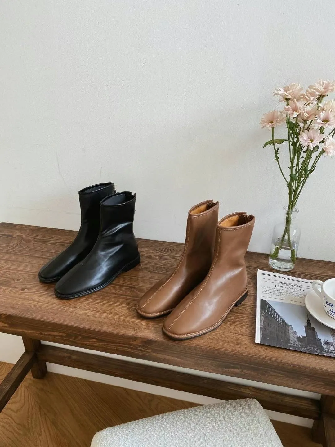 PC773中車線平底靴子 咖 黑 230-250(有半號) $1050