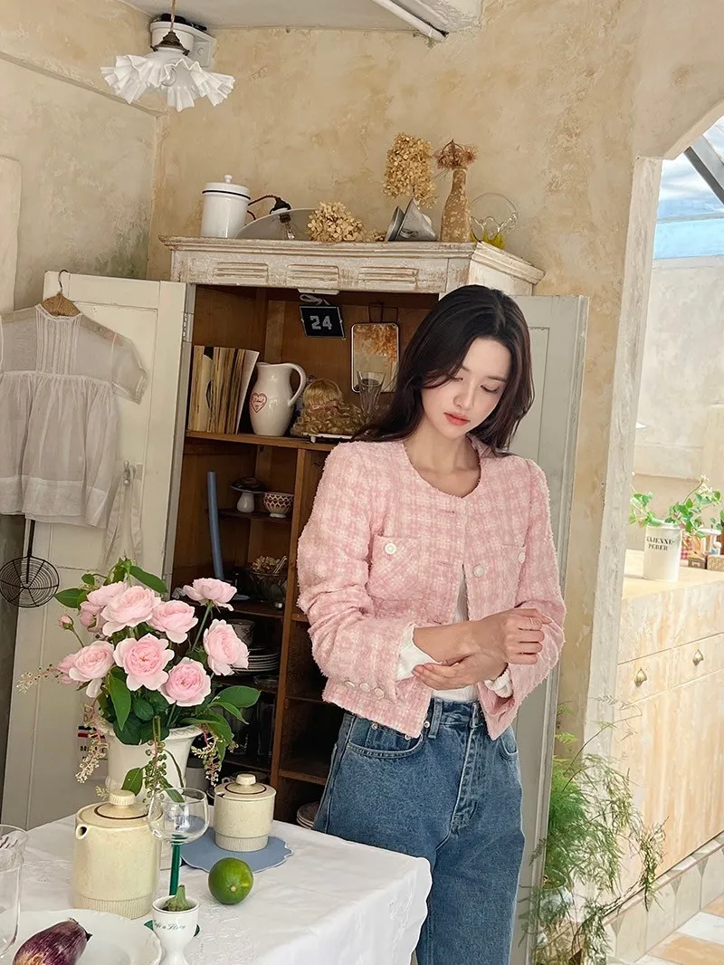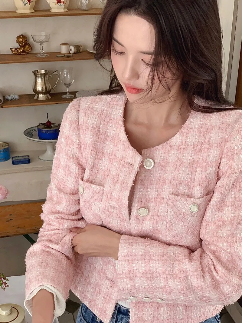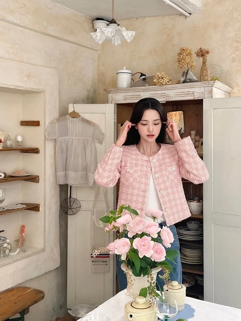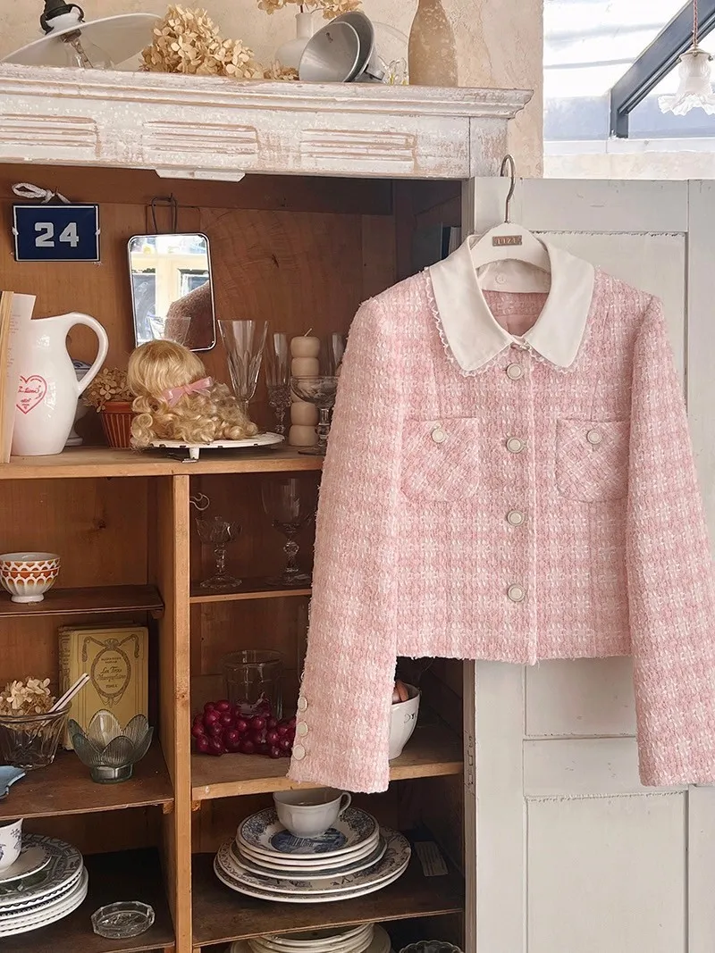 PC840質感粉色小香風外套 S M 官網價$3120 線上$2990