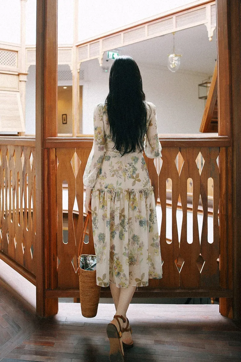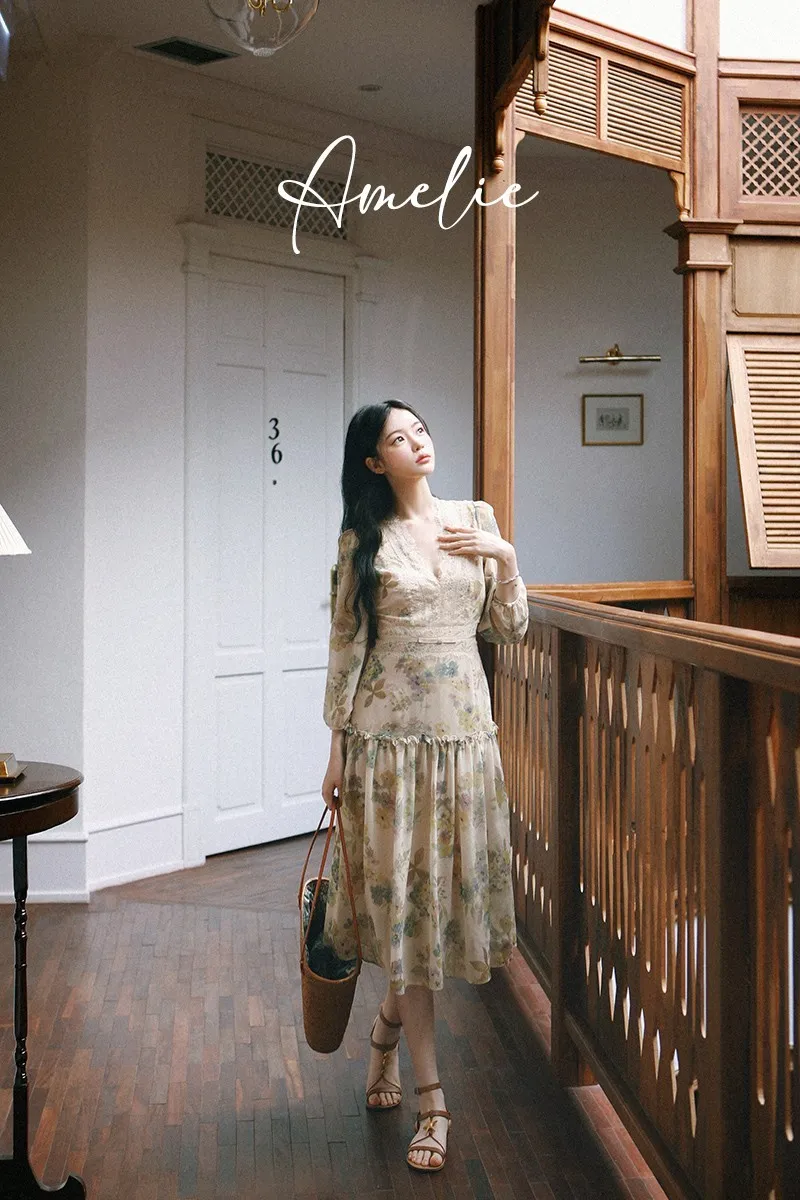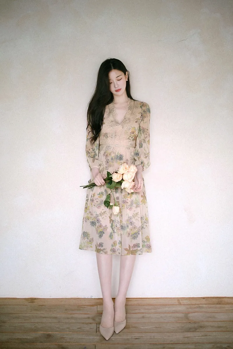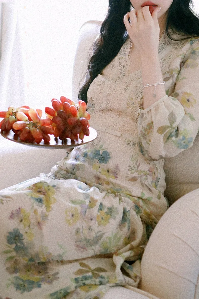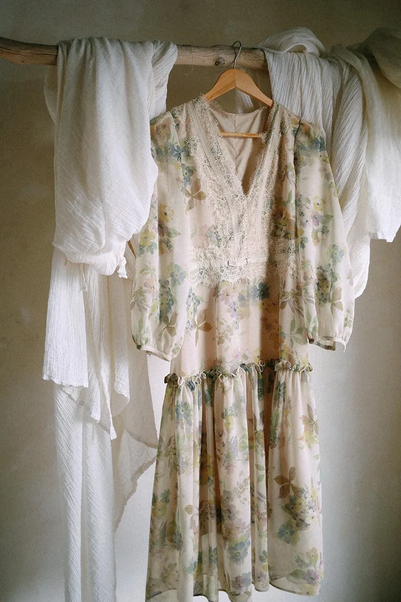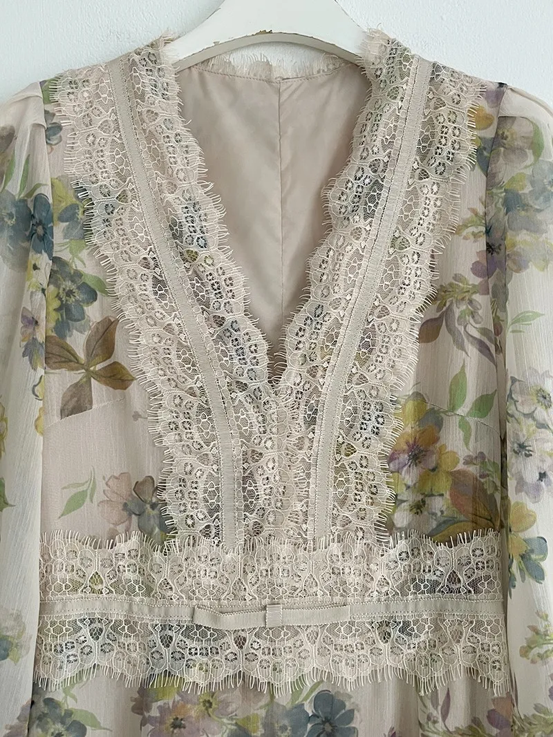 雪紡+睫毛蕾絲 飄逸薄款 腰身修飾 氣質典雅 有內裡