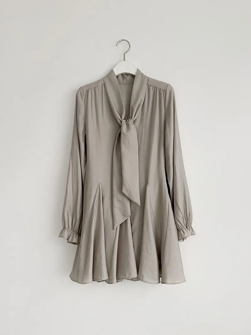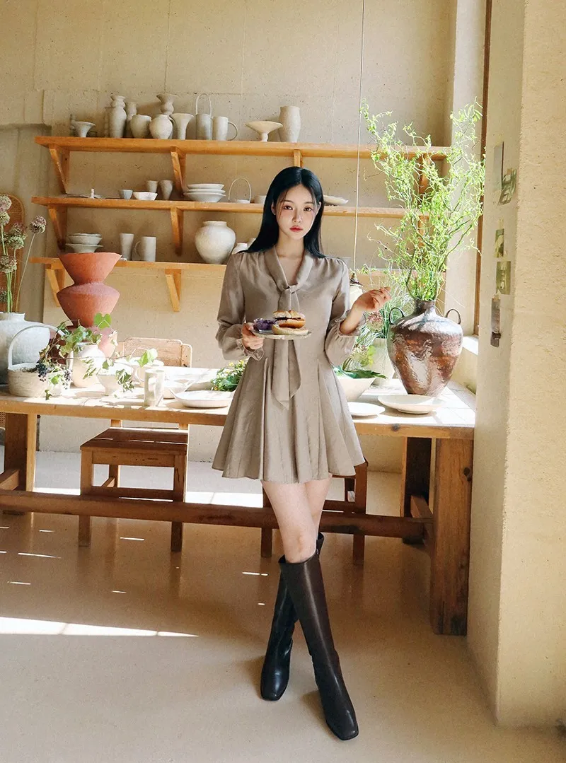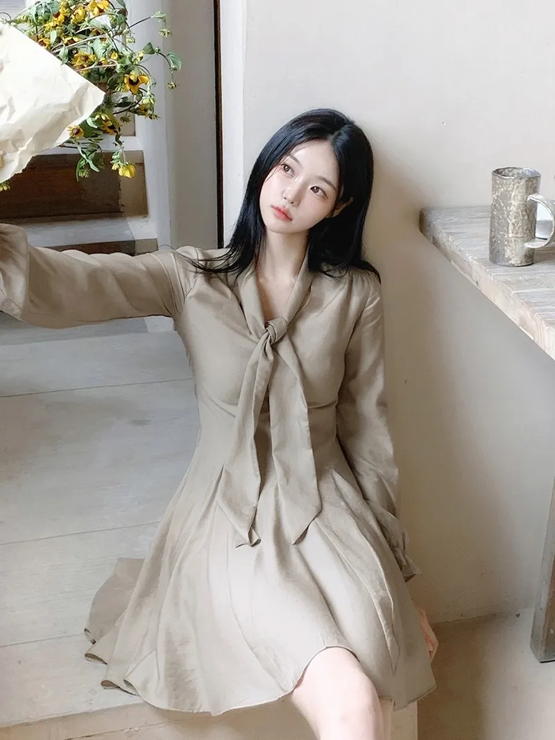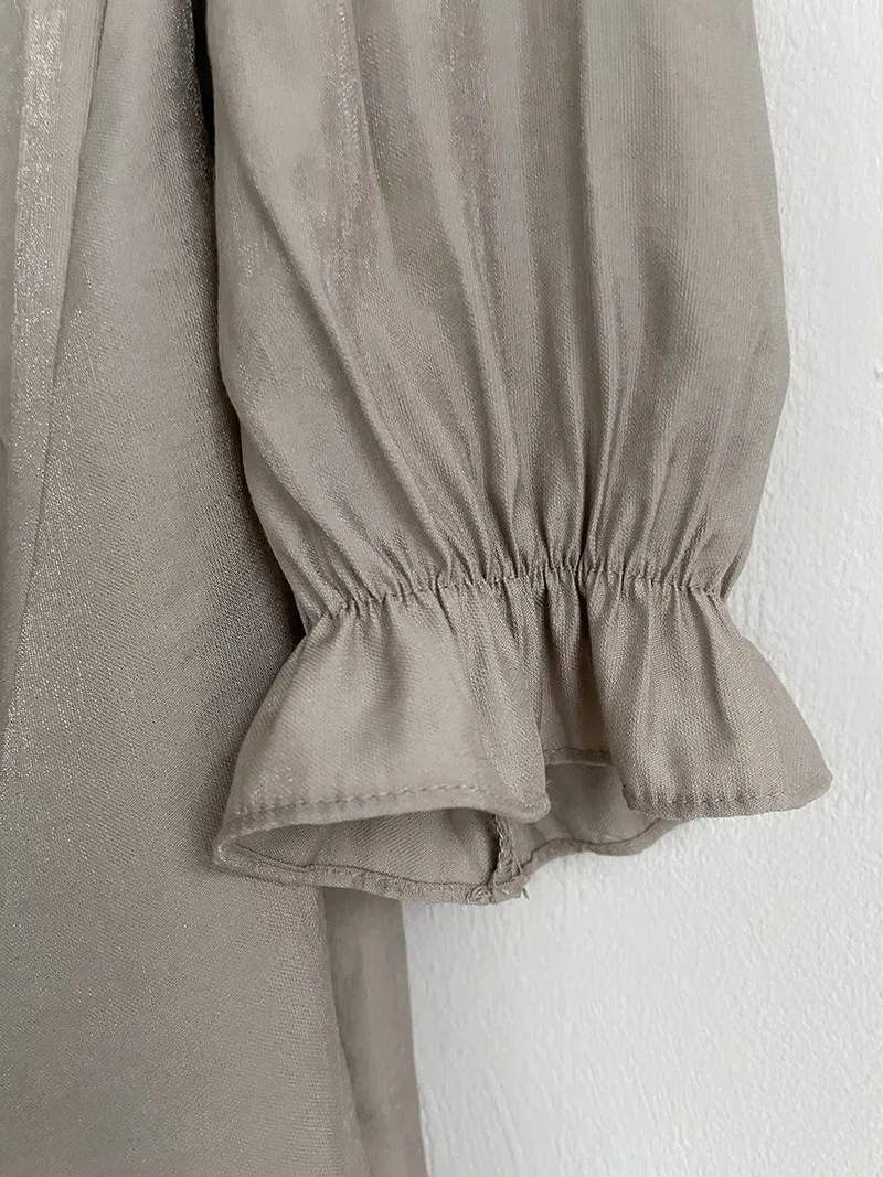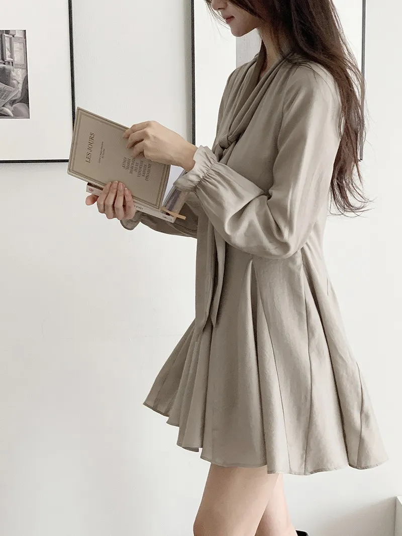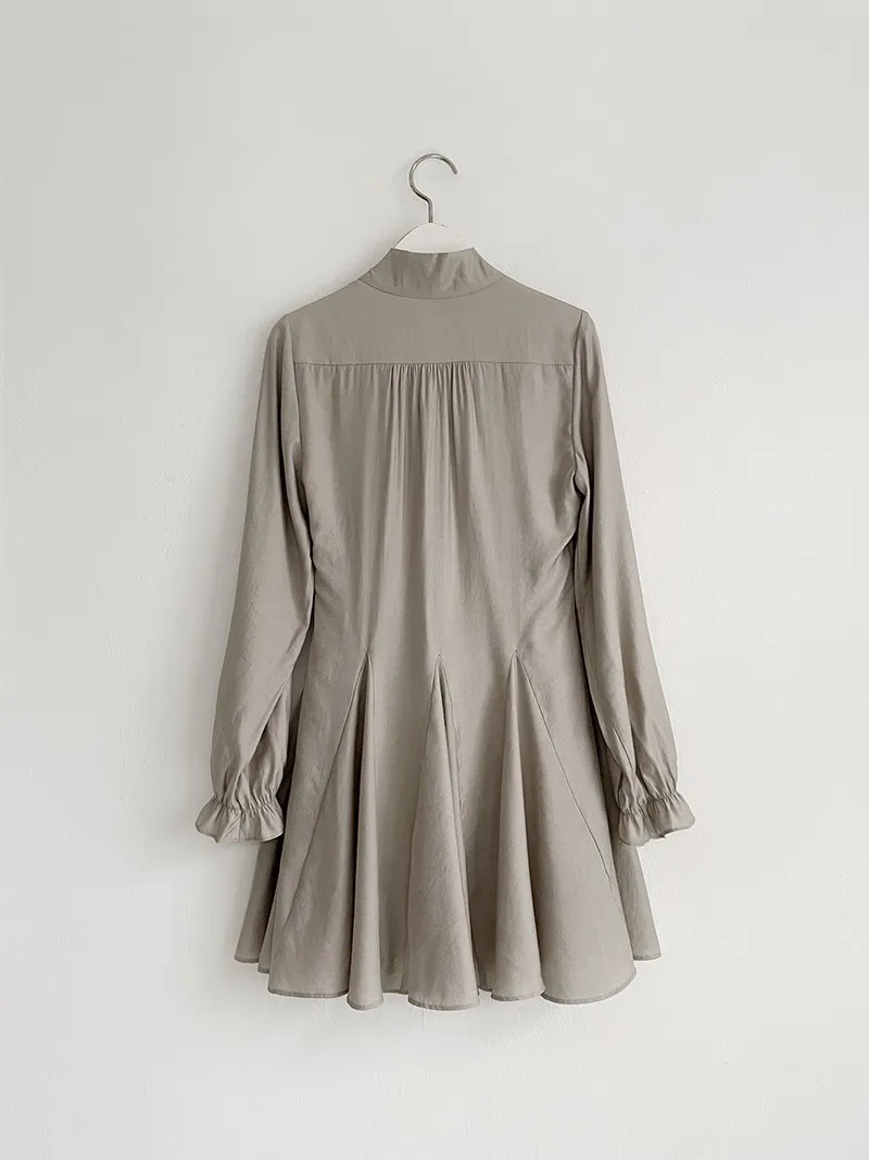 棉+聚酯 胸綁帶不可拆 V領氣質 荷葉手袖 傘擺腰身裙