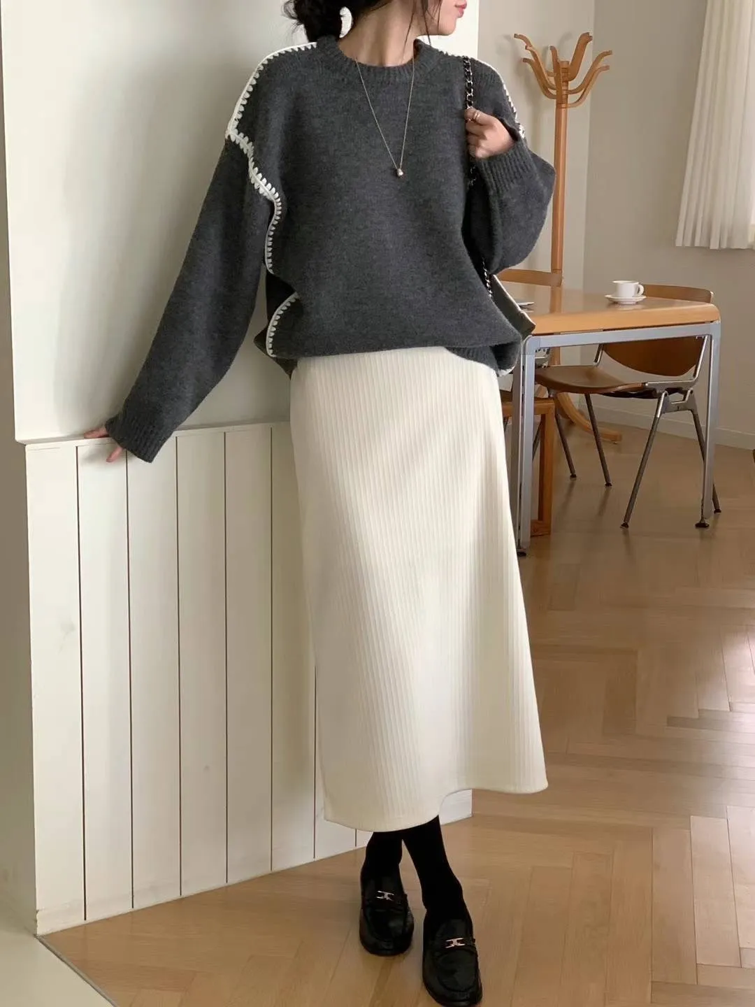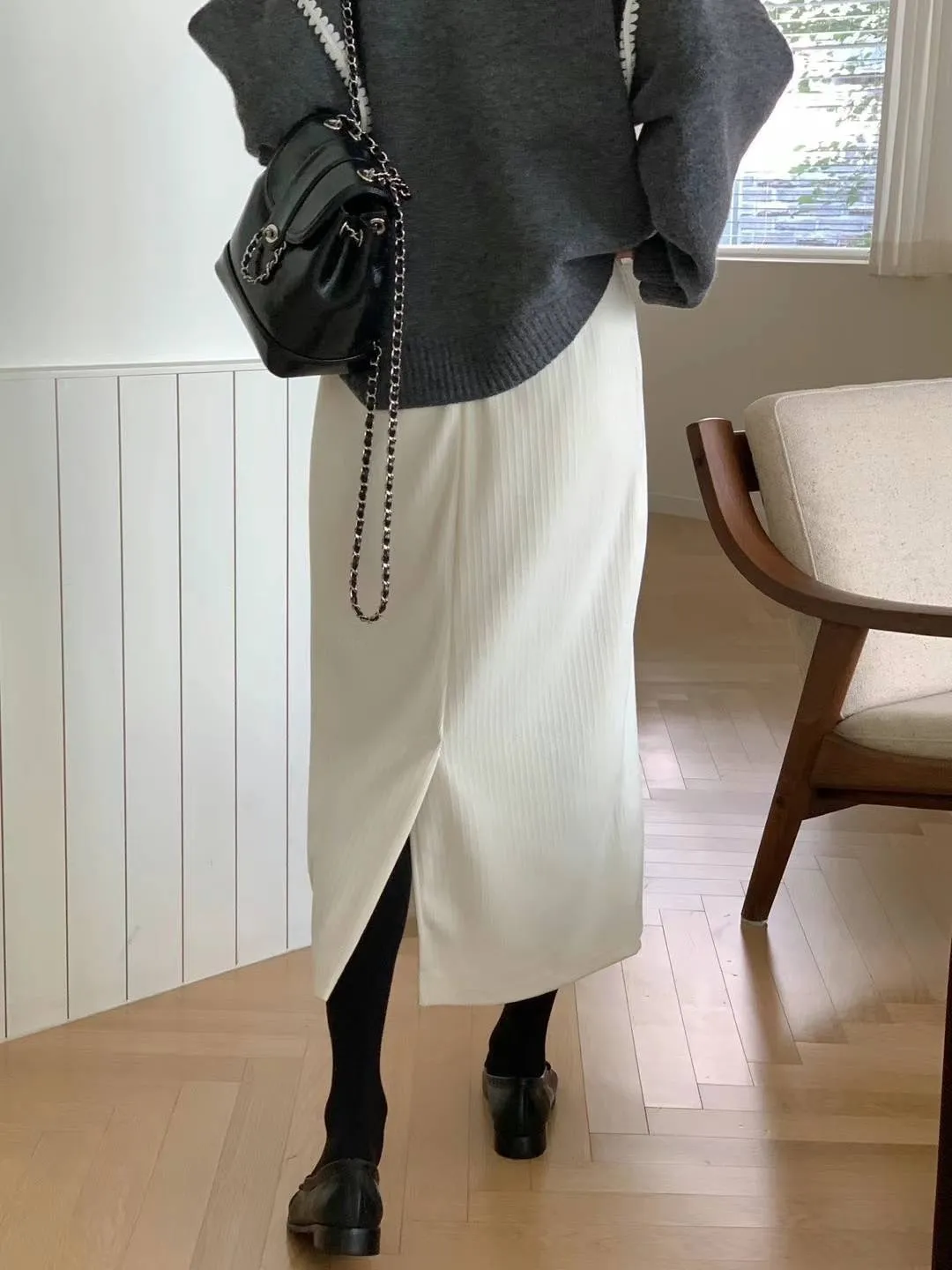 聚酯+彈力 後鬆緊 後開岔 不顯肚 只有白色有內裡