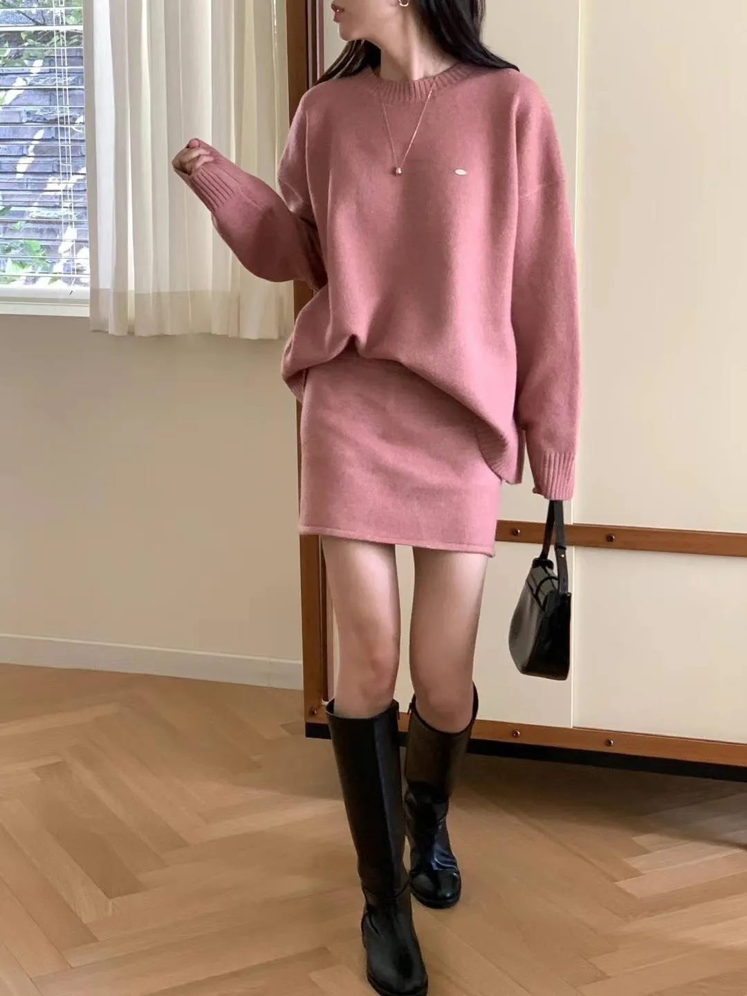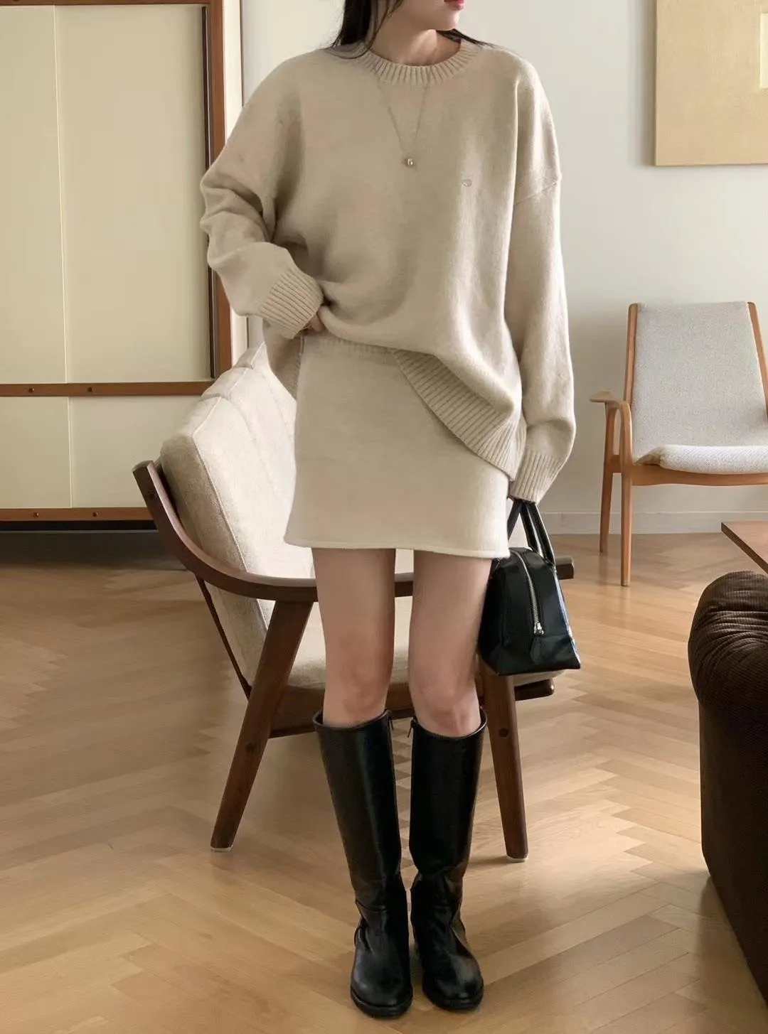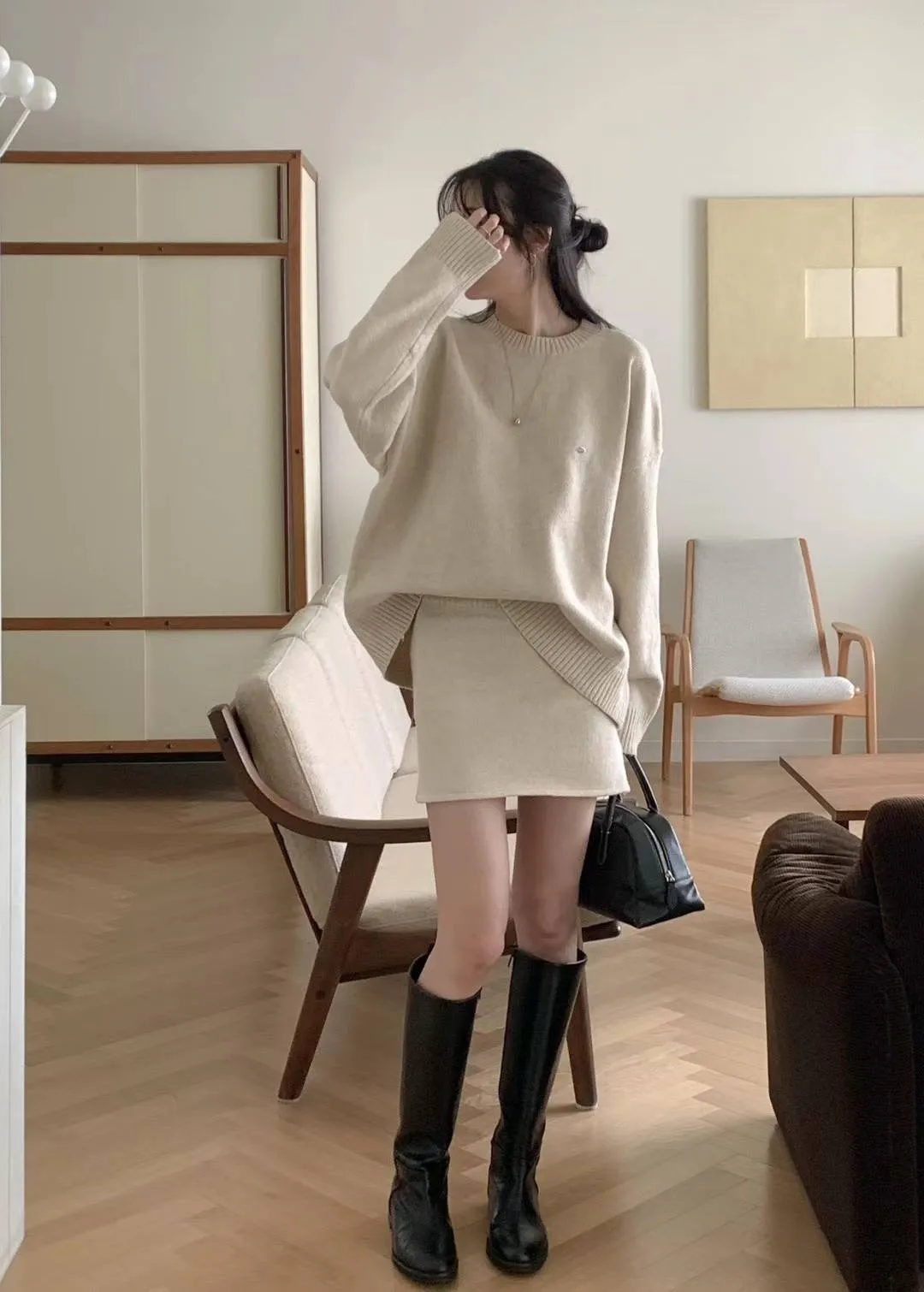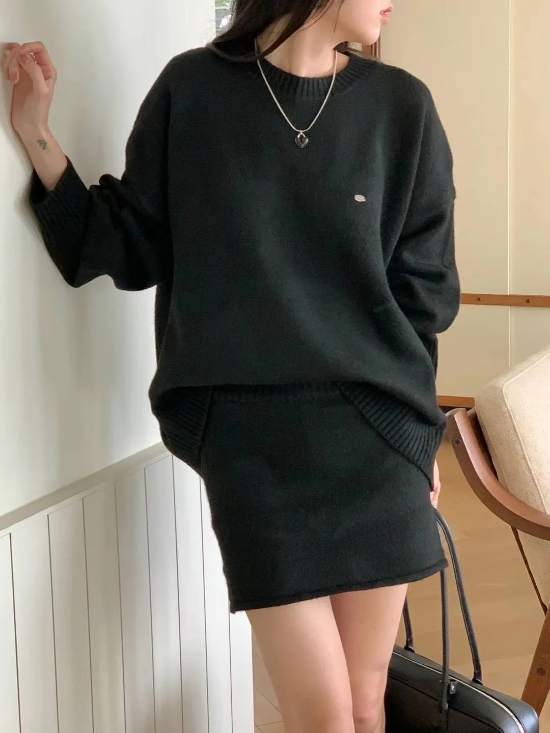PC907小銀標羊毛套裝(上衣+褲裙) 黑 米 粉 咖 官網價$1720 線上價$1690羊毛40+壓克力60 上衣落肩+寬鬆版 彈性佳 不刺癢 L號可上衣肩寬73胸寬70-113全長65褲裙腰寬35-58臀寬43-73全長40以下黑色穿搭👇🏻 以下粉色穿搭👇🏻 以下米色穿搭👇🏻 以下顏色如圖所示