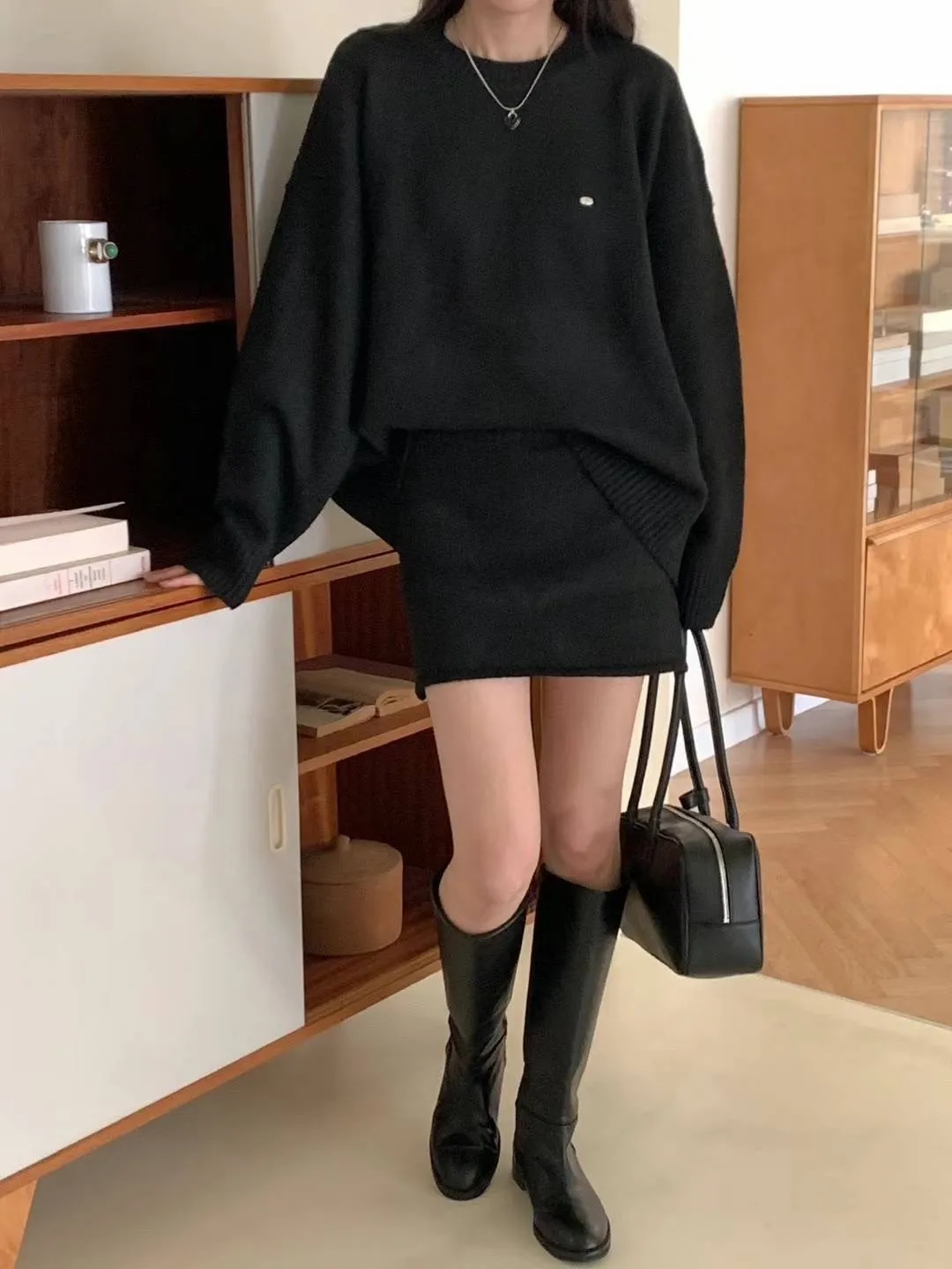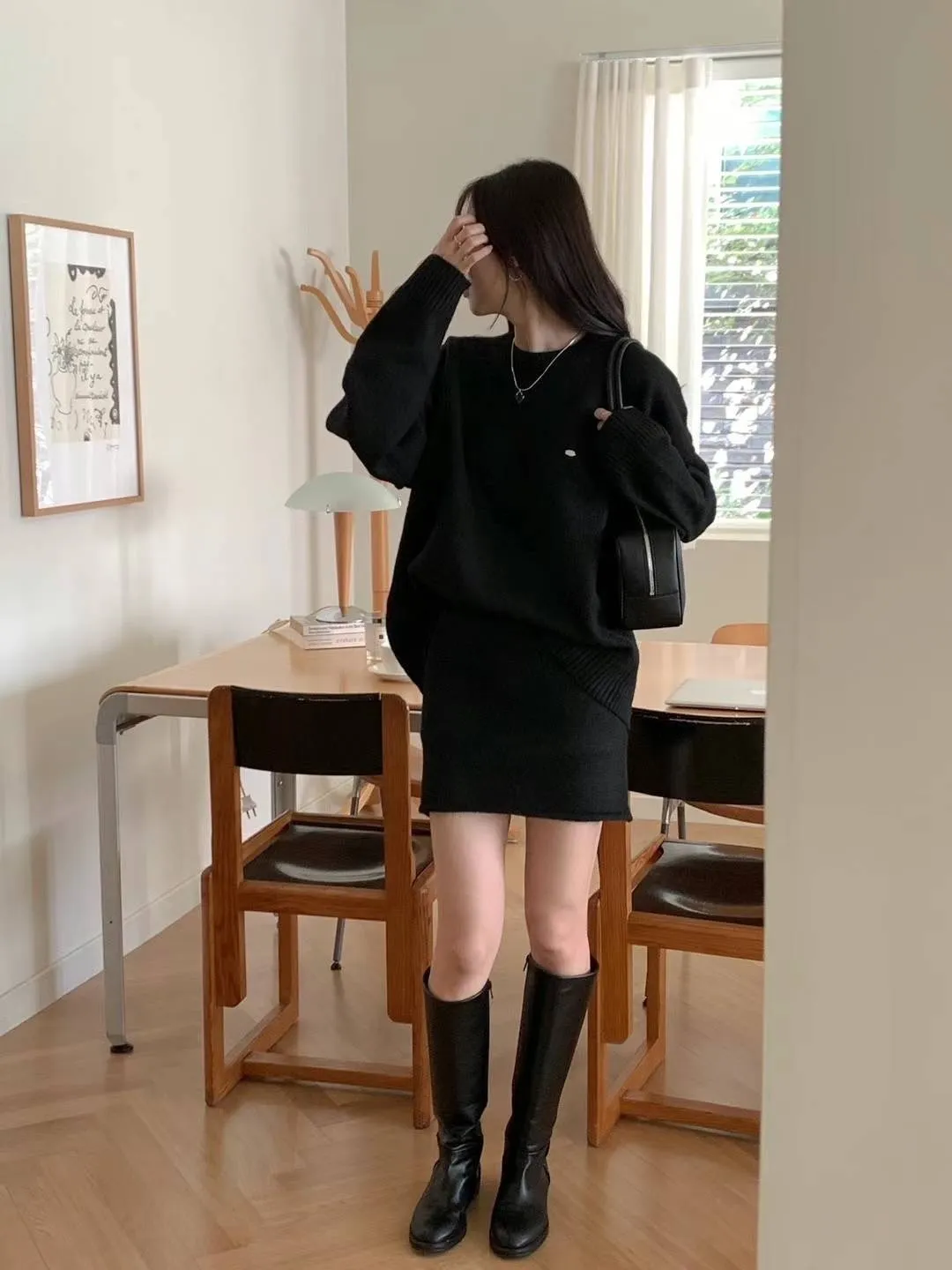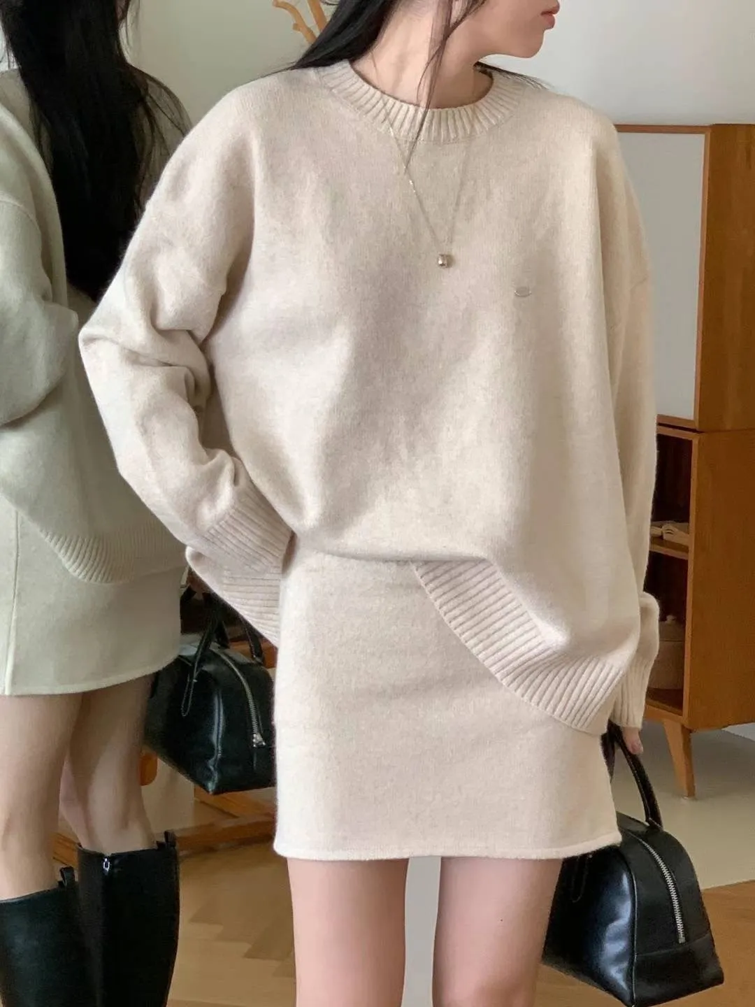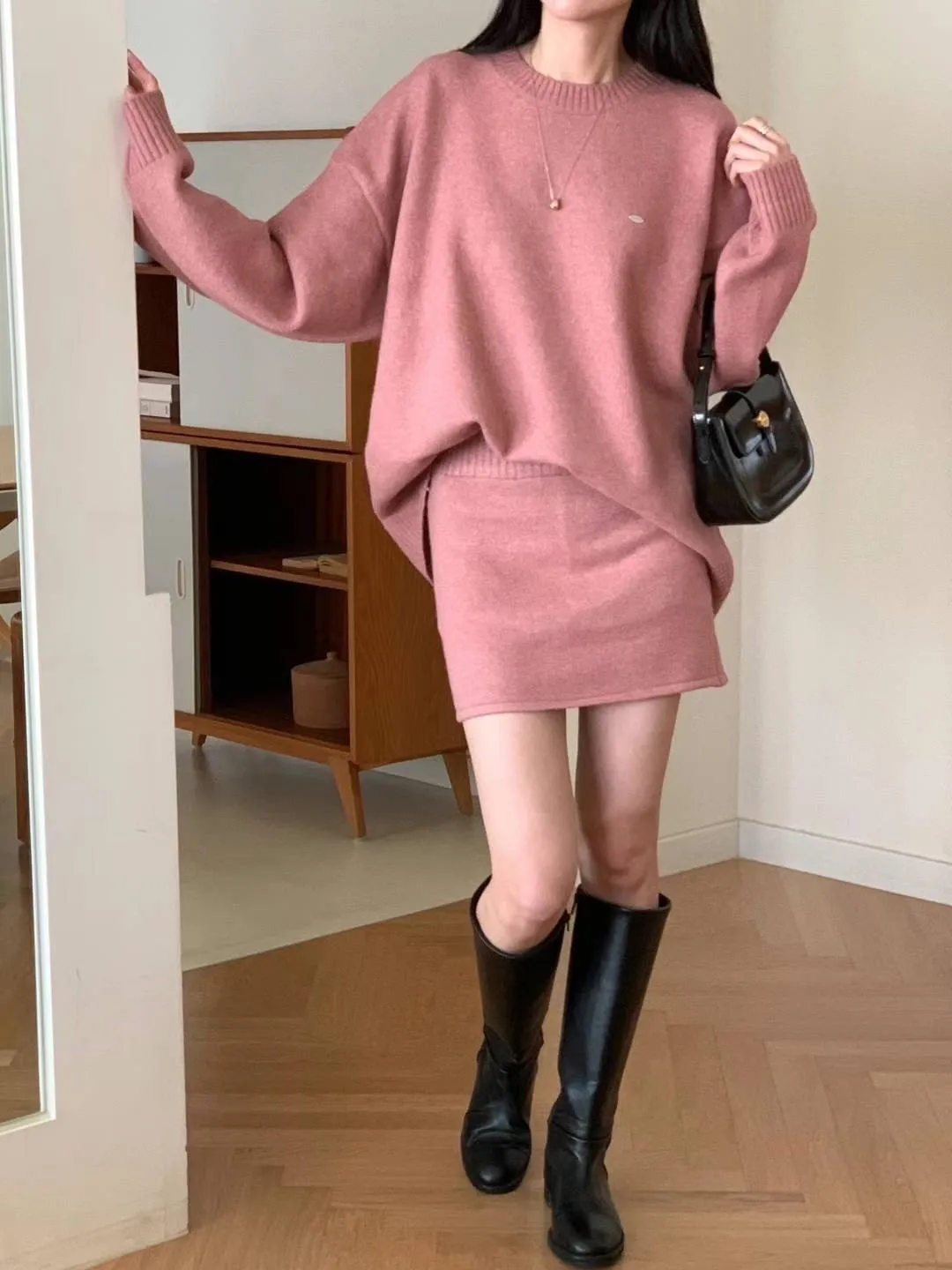 PC907小銀標羊毛套裝(上衣+褲裙) 黑 米 粉 咖 官網價$1720 線上價$1690羊毛40+壓克力60 上衣落肩+寬鬆版 彈性佳 不刺癢 L號可上衣肩寬73胸寬70-113全長65褲裙腰寬35-58臀寬43-73全長40以下黑色穿搭👇🏻 以下粉色穿搭👇🏻 以下米色穿搭👇🏻 以下顏色如圖所示