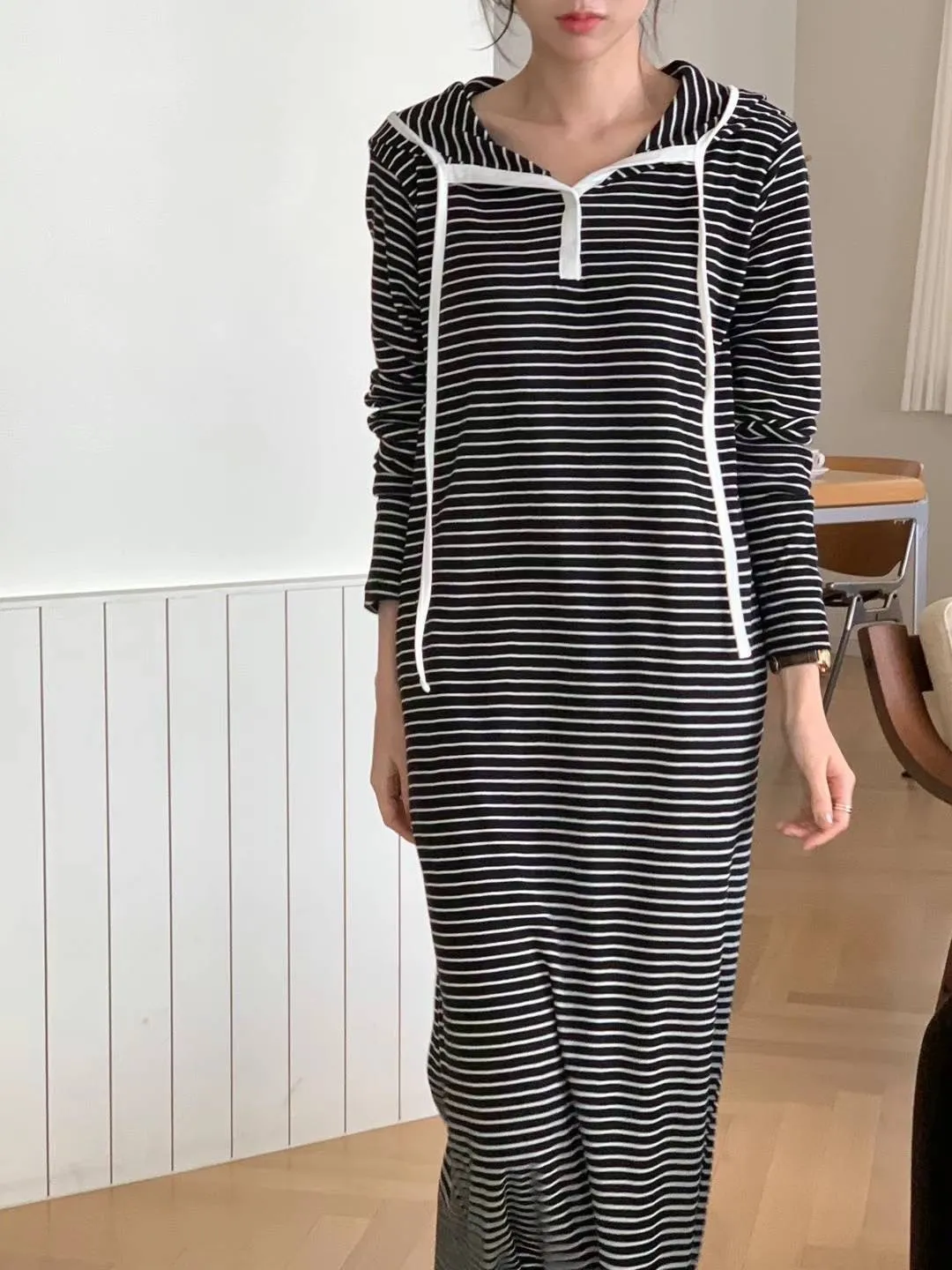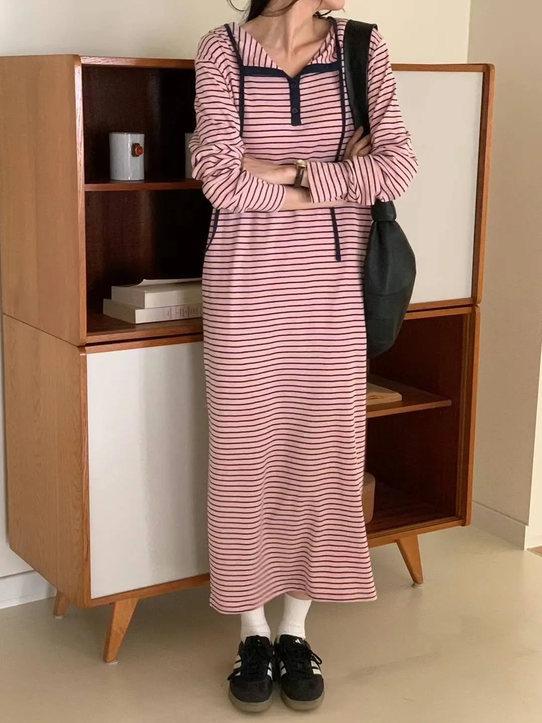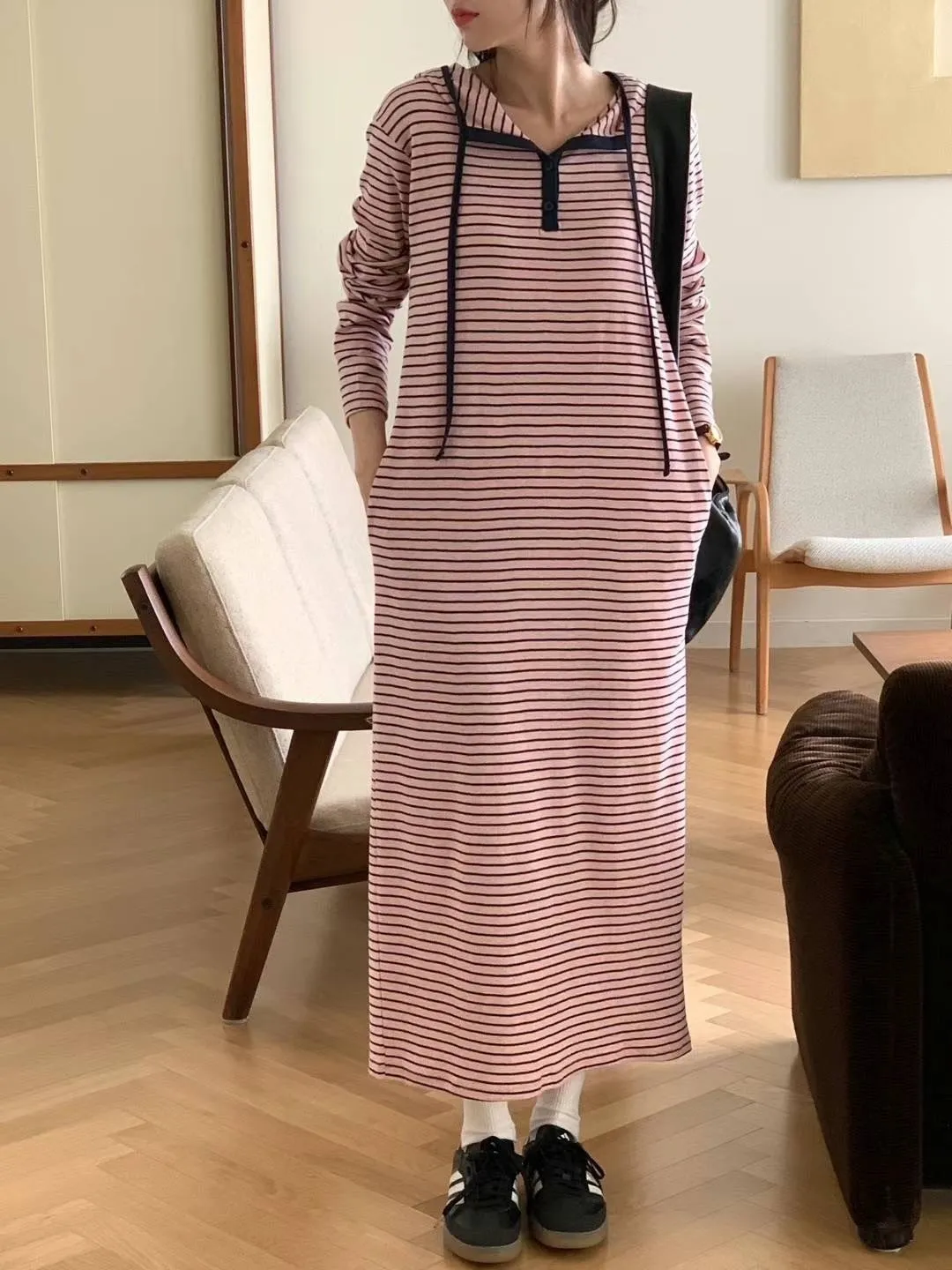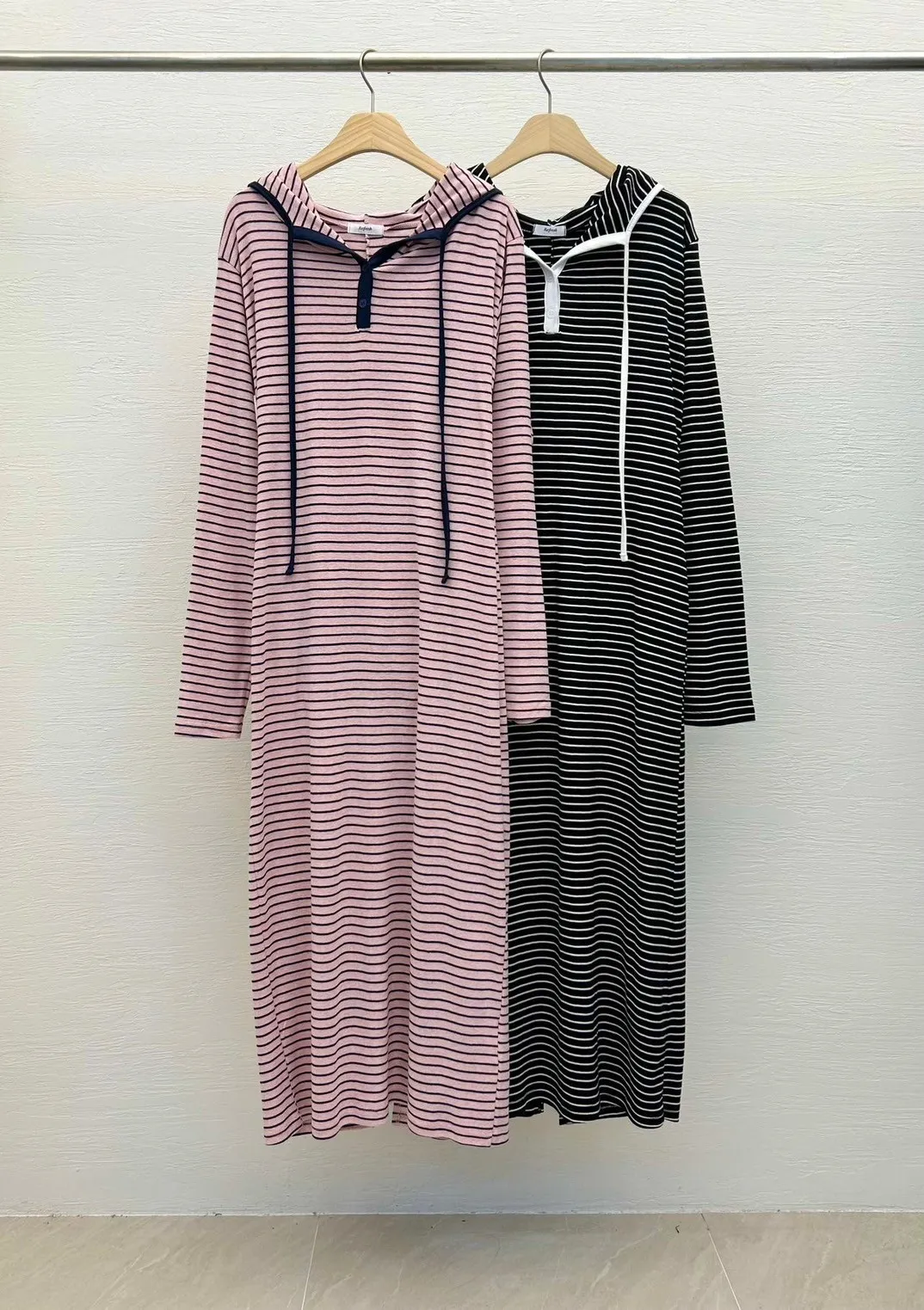 棉100% 薄款 彈性好 粉色配藍色條紋 後開叉 有口袋
