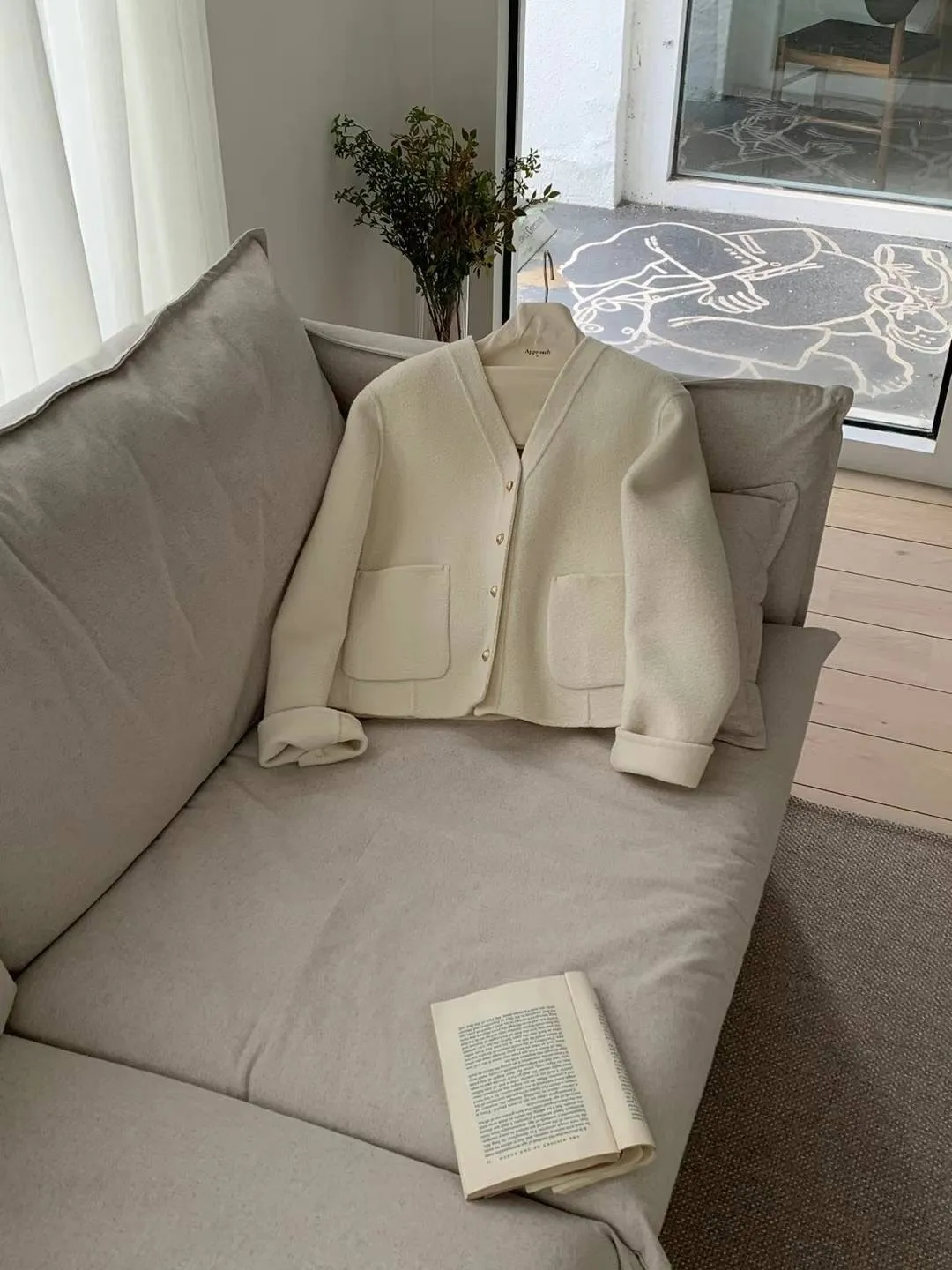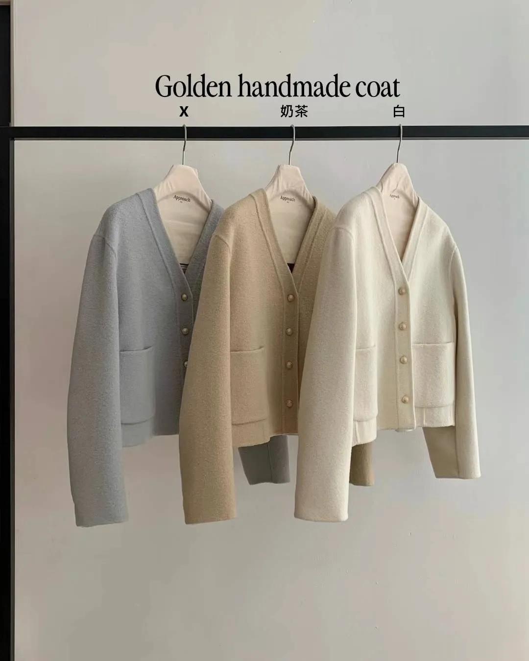 PC946熱銷款雙口袋羊毛外套 白 奶茶 官網價$4250 線上價$4220
