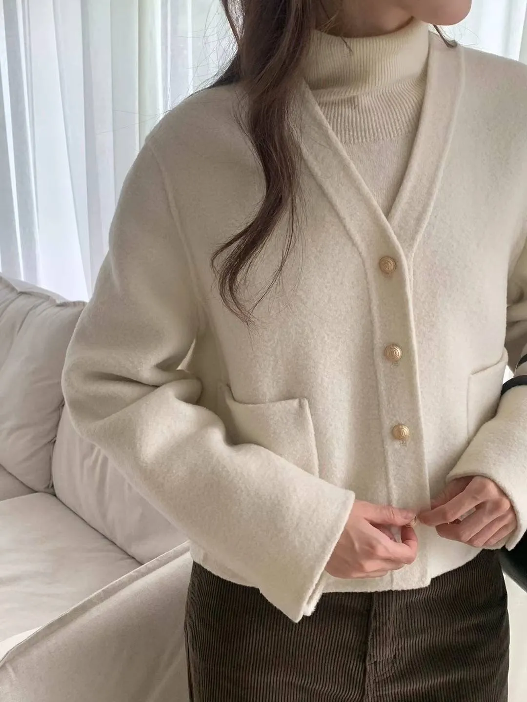 羊毛90%,有內裡 質感金釦 雙口袋 外層Q毛內層滑順
