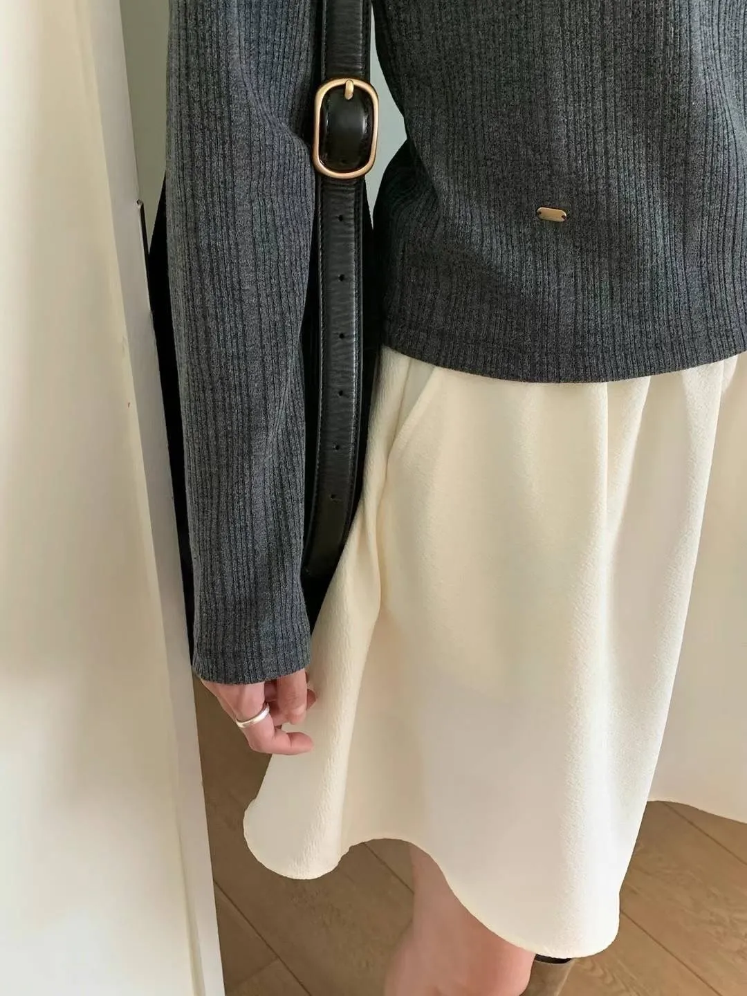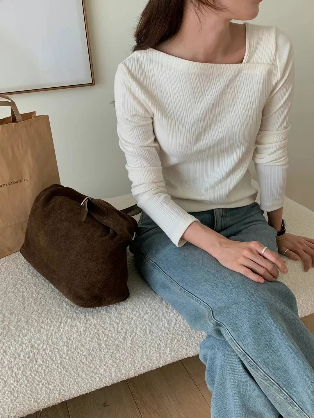 聚酯+彈力 不對稱斜切領口 粗細坑條層次交接
