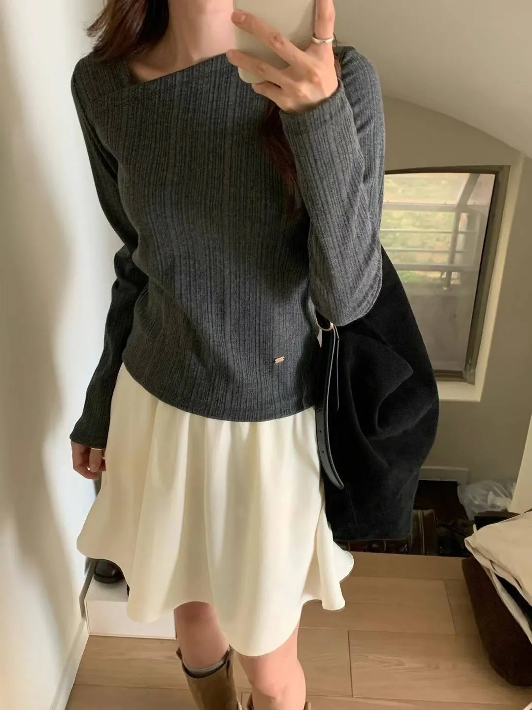 PC947必收藏斜領設計感上衣 米 灰 咖 黑 官網價$690 線上價$660