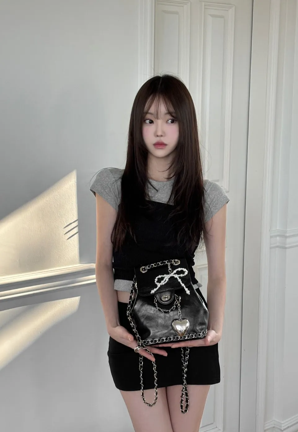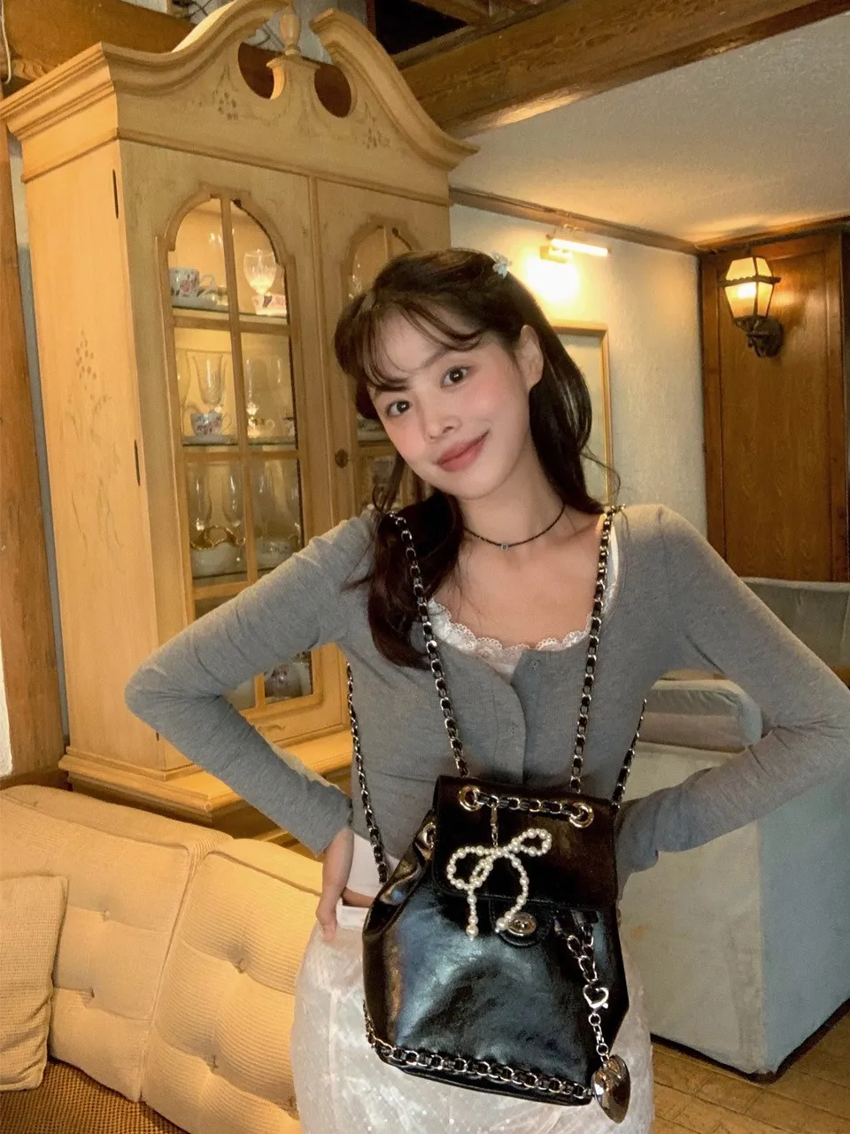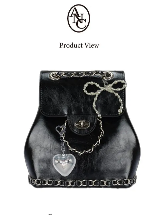PC993限量款珍珠蝴蝶結鍊條愛心吊飾背包(原ANC028) 官網價$4290