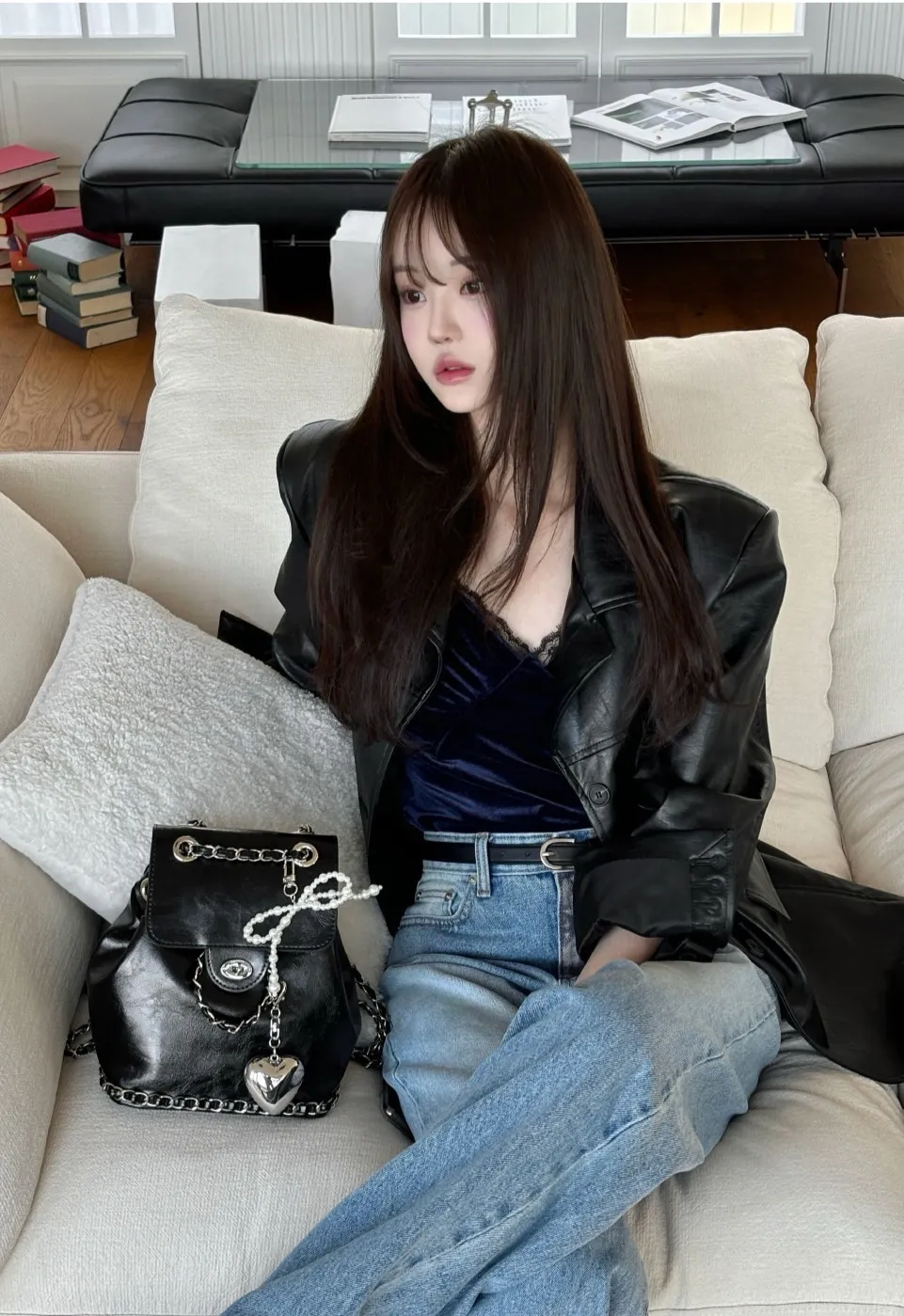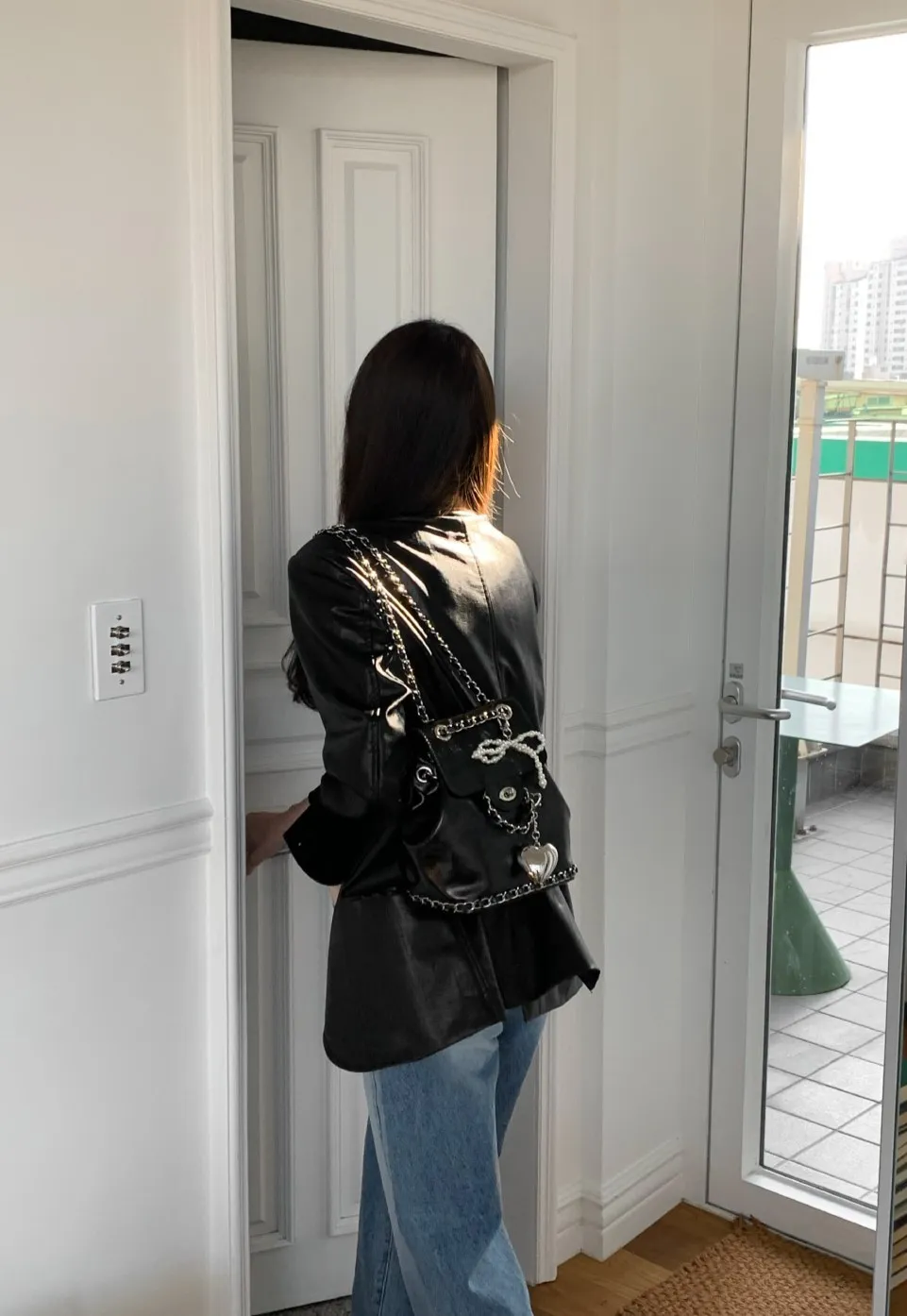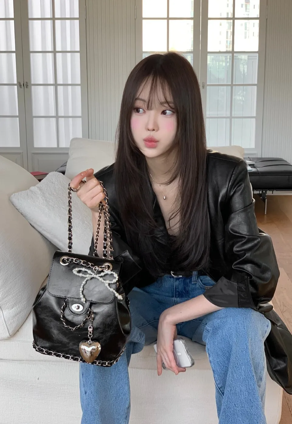 PC993限量款珍珠蝴蝶結鍊條愛心吊飾背包(原ANC028) 官網價$4290