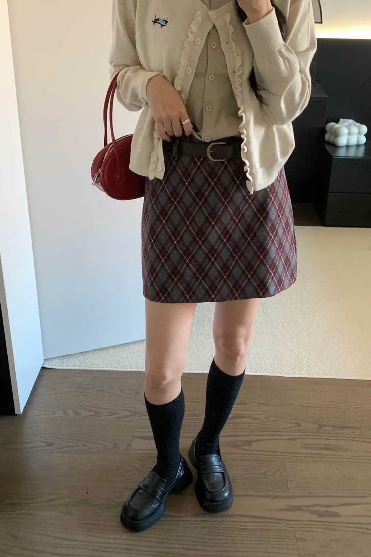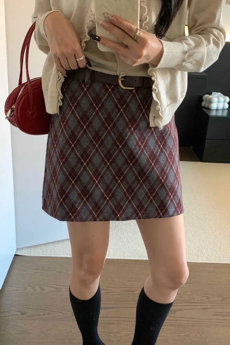 PF003推薦款細緻格紋褲裙 藍 紅 咖 S M L 官網價$530 永恆甜甜價$480