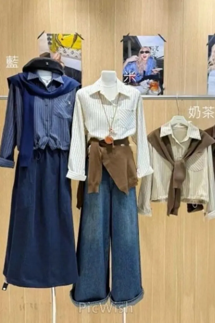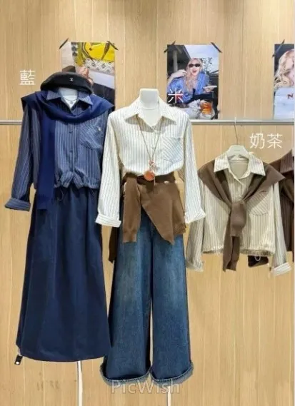 PF009冰絲蜜桃絨套裝組(襯衫+披肩) 米 藍 奶茶 官網價$530 永恆甜甜價$480