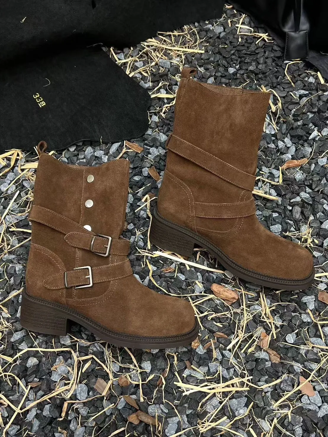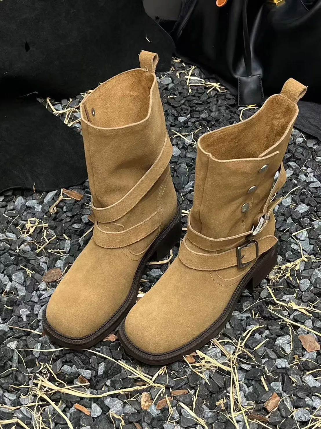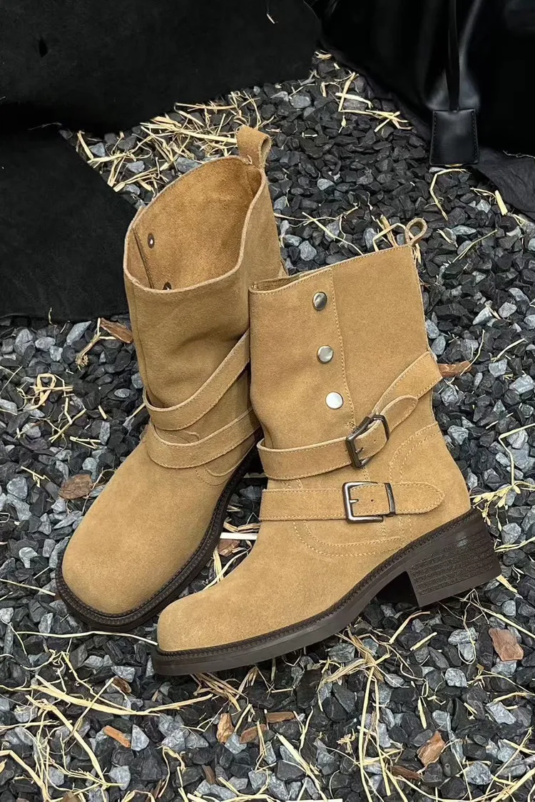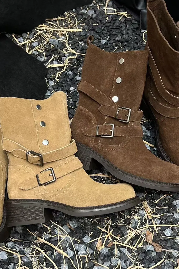 PF016牛皮方頭短靴 奶茶 深咖 230-250(有半號)官網價$1640 永恆甜甜價$1590