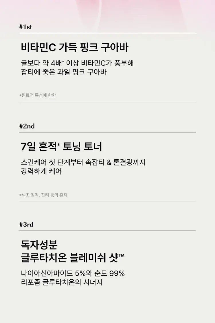 成分 : 粉紅番石榴萃取+99% 純脂質體谷胱甘肽+α-熊果苷+煙酰胺 (維他命B3)