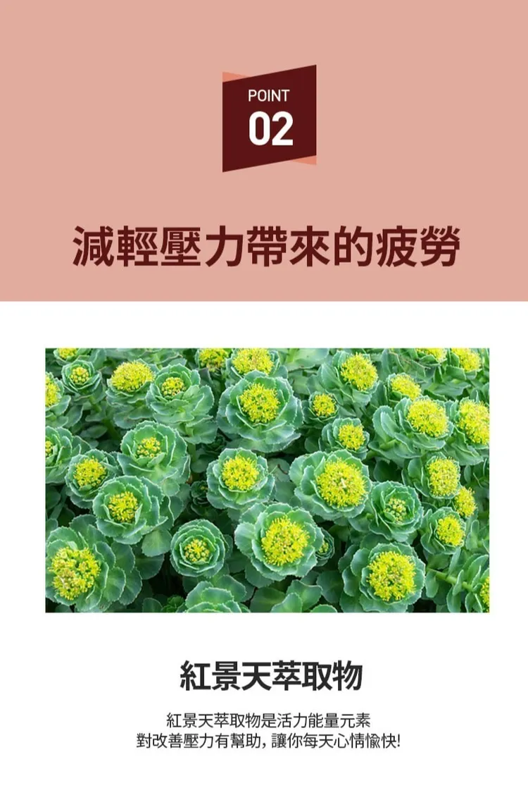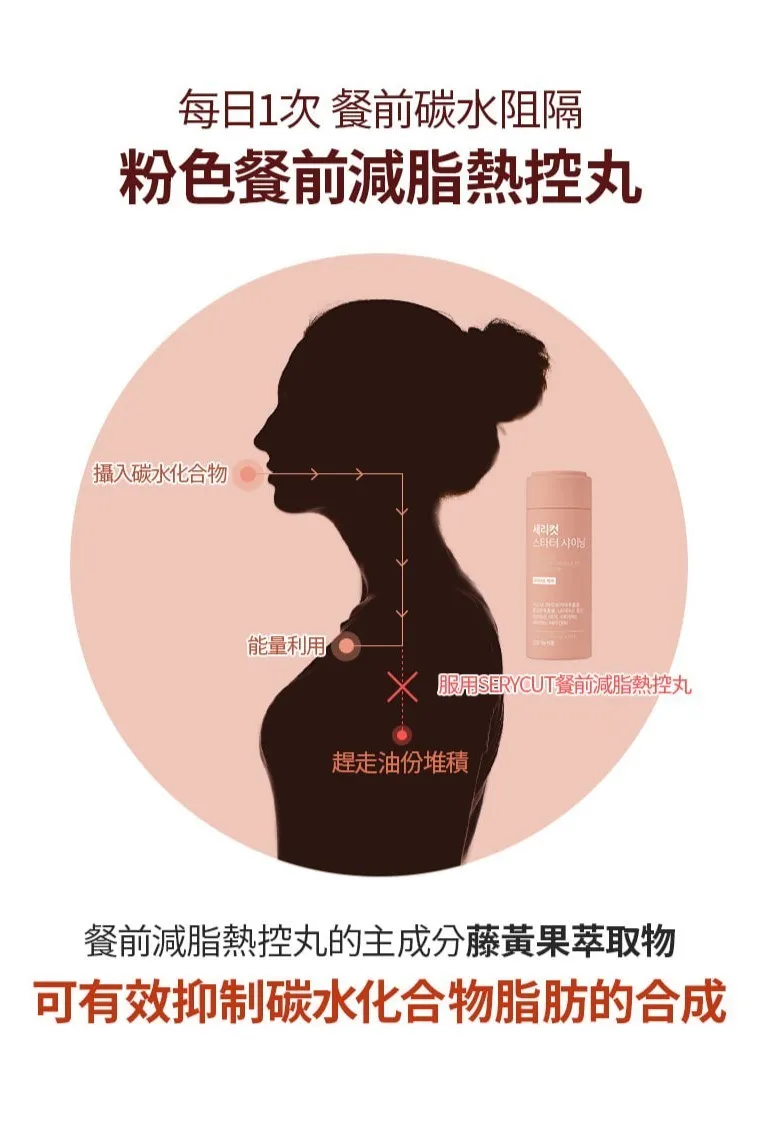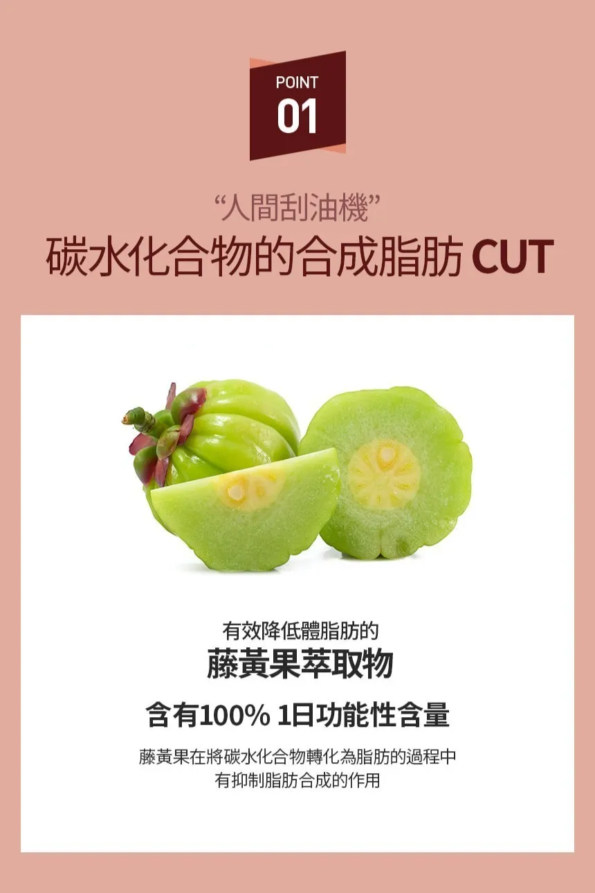 成份 : 藤黃果+紅景天+維生素B群+泛酸+葉酸+菸酸+鋅+銀杏葉