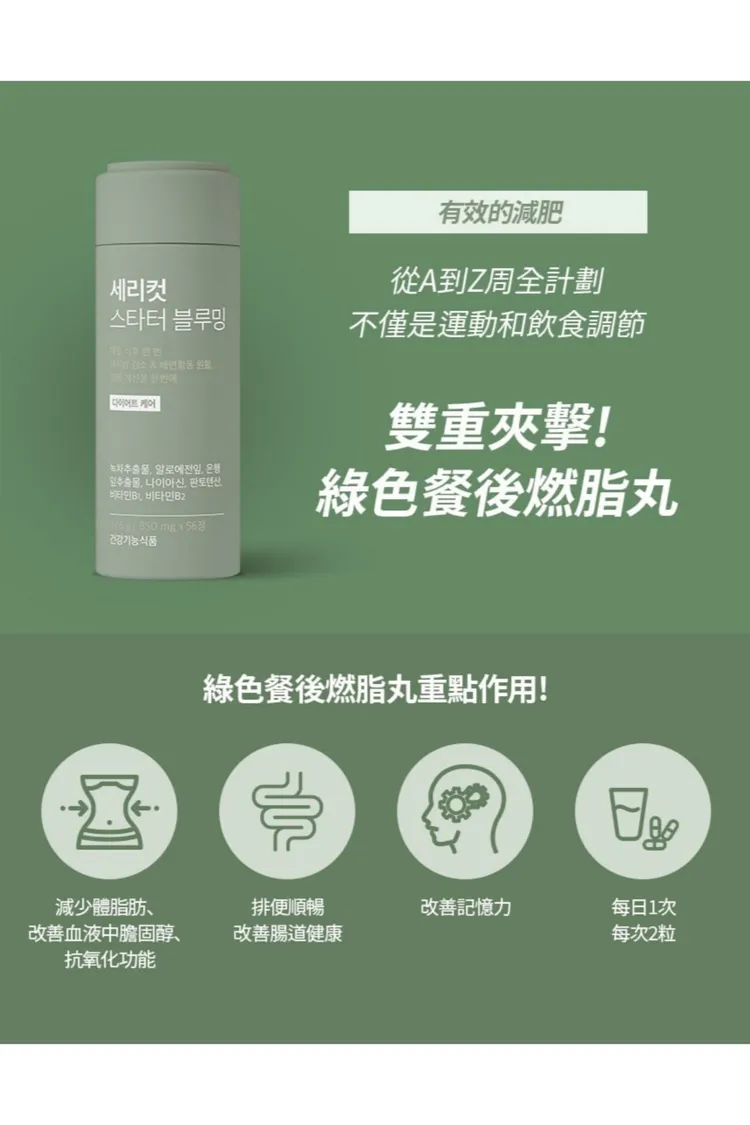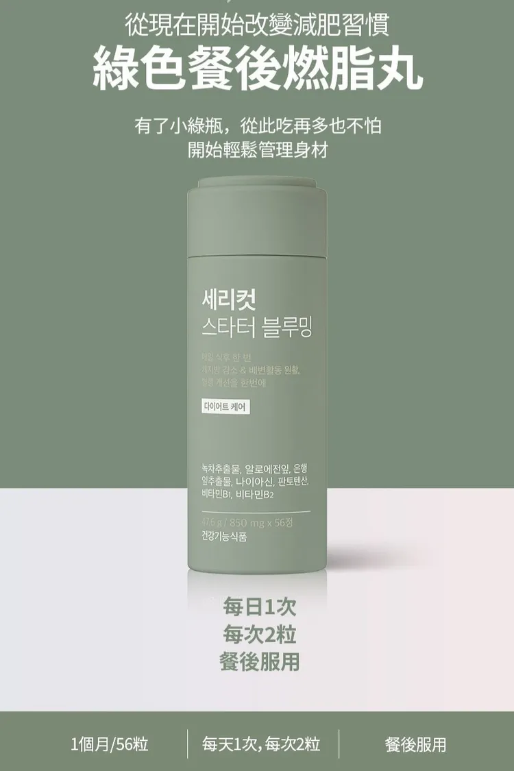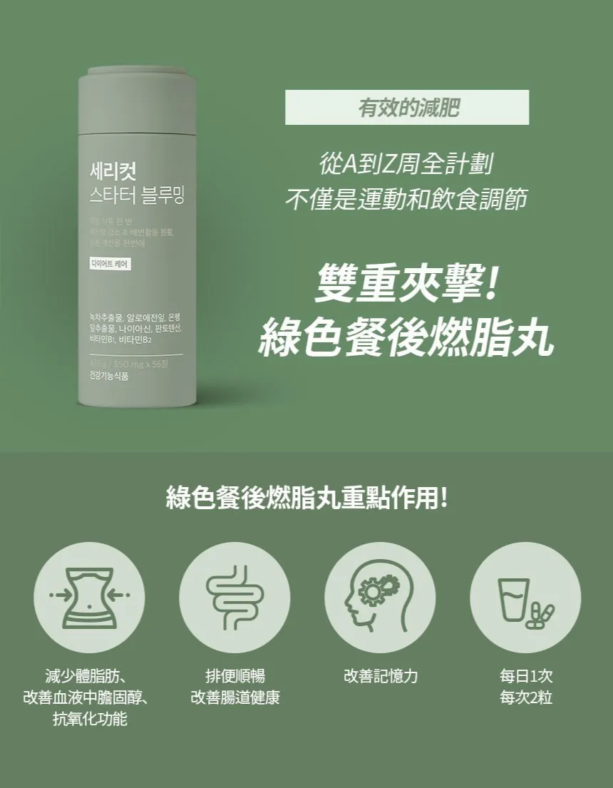 小綠方式 : 每日一次, 每次兩粒, 餐後服用