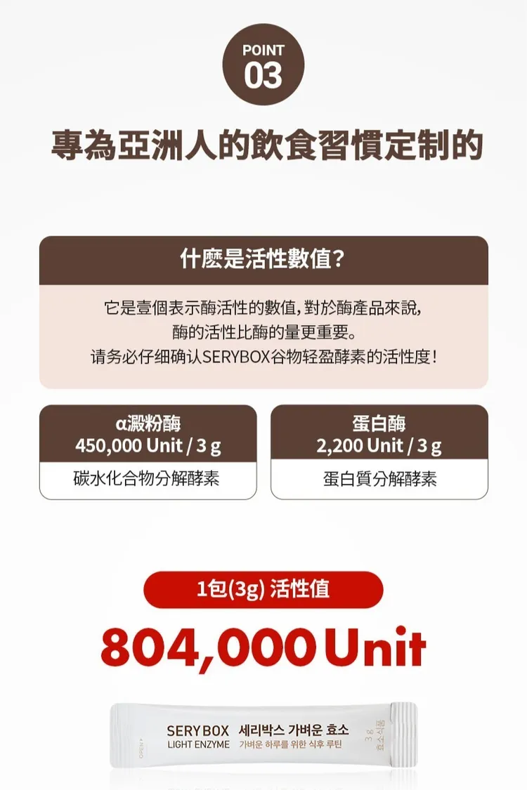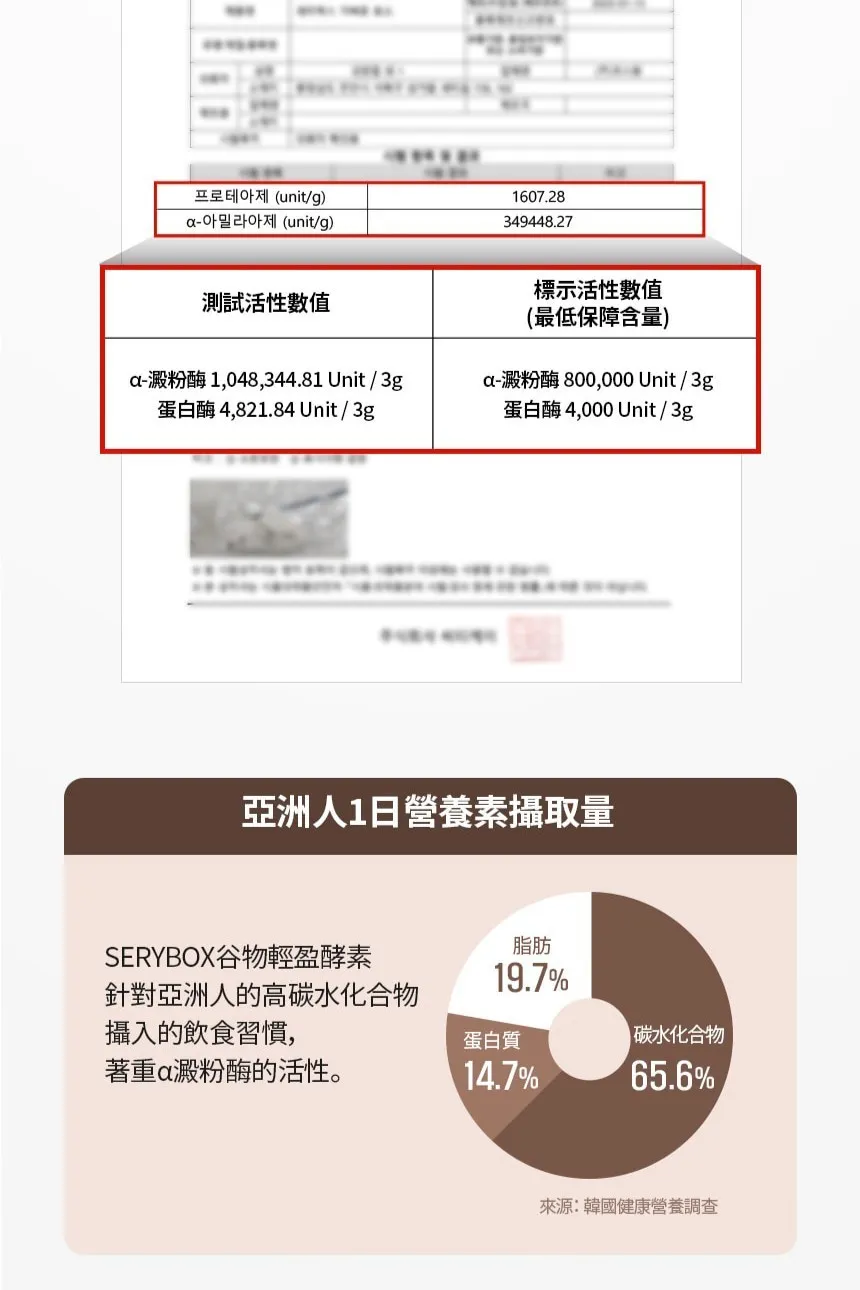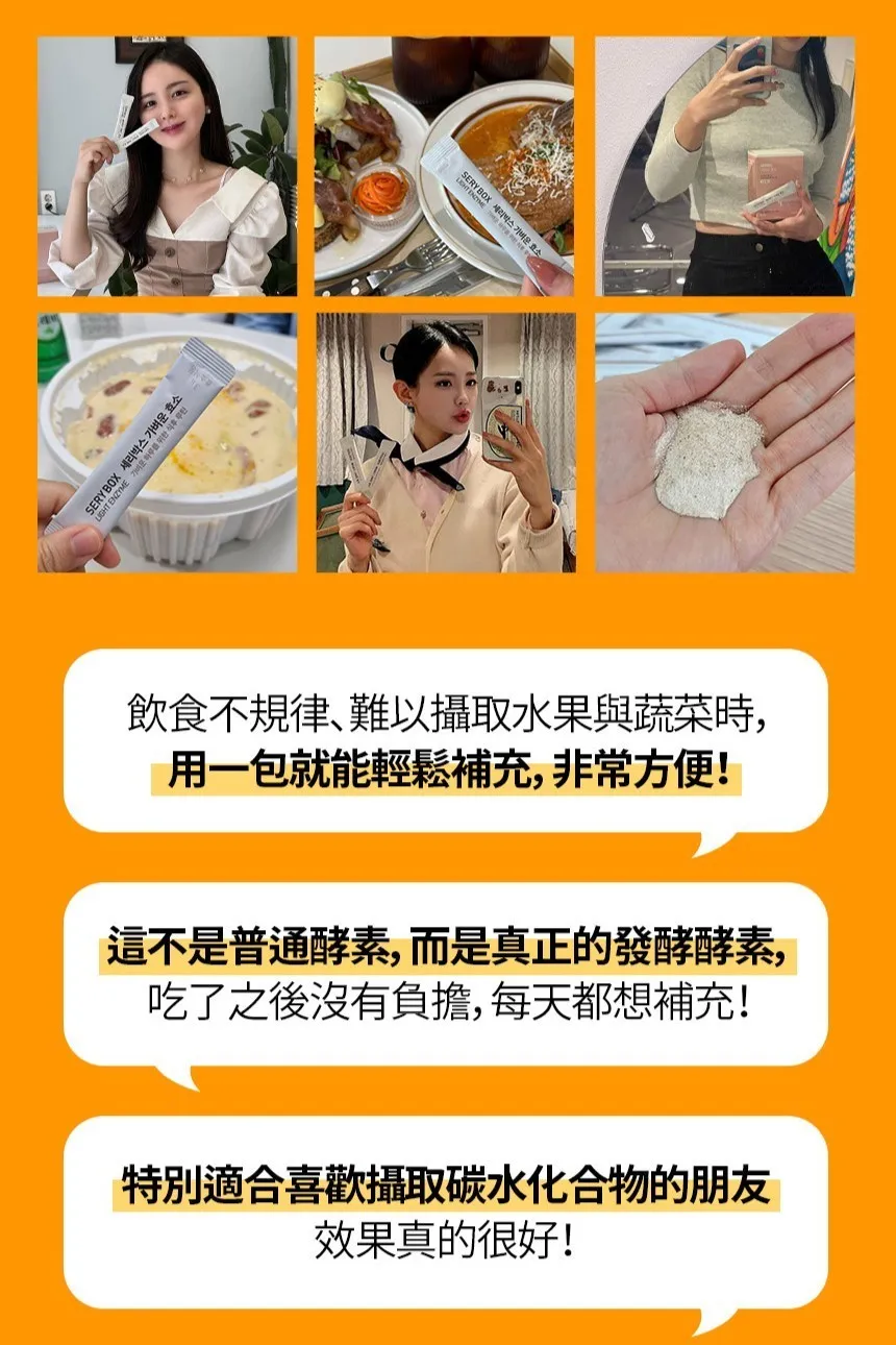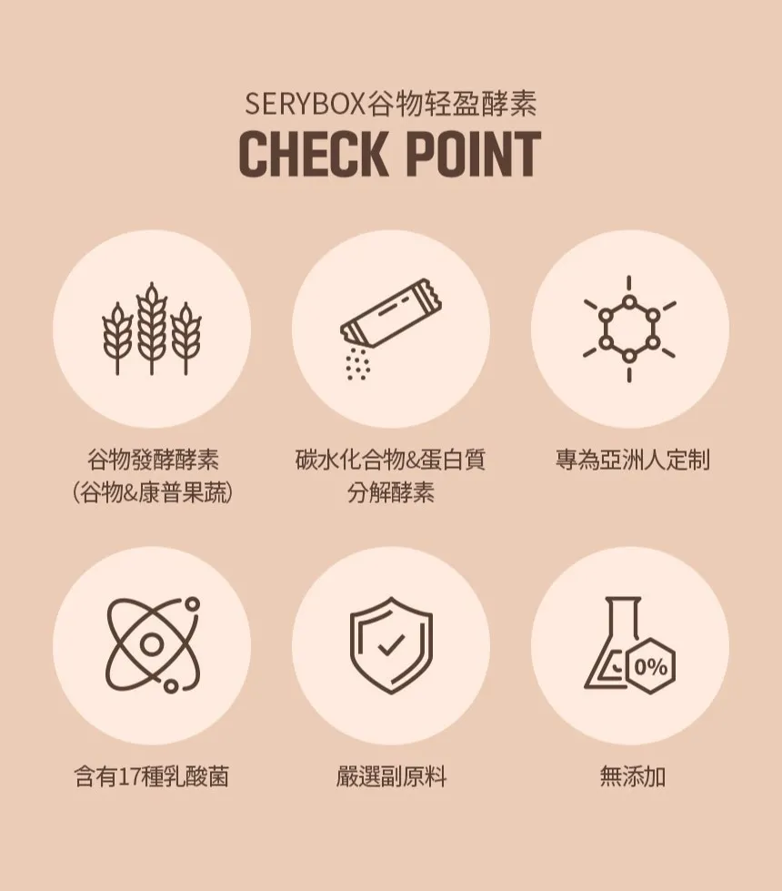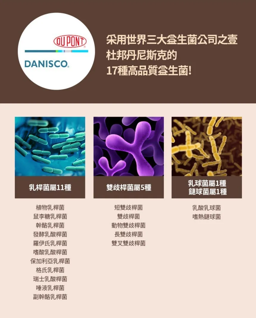 成份 : 14種穀物+22種康普蔬果發酵酵素+17種高級益生菌