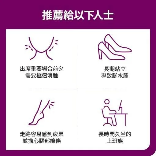 適合 : 臉部水腫,久坐導致小腿浮腫者,宵夜吃重鹹者,鈉攝取量大的人