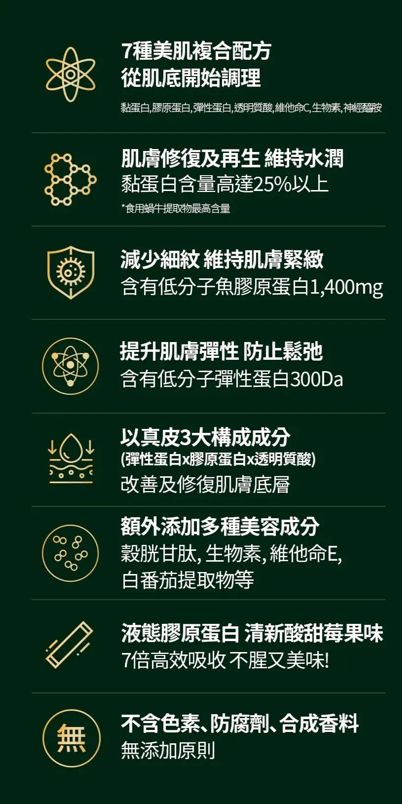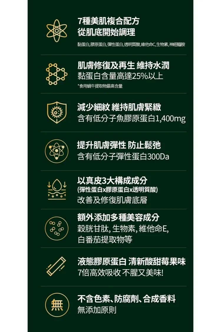 功效 : 肌膚緊緻透亮有彈性,促進膠原蛋白生成+減少皺紋