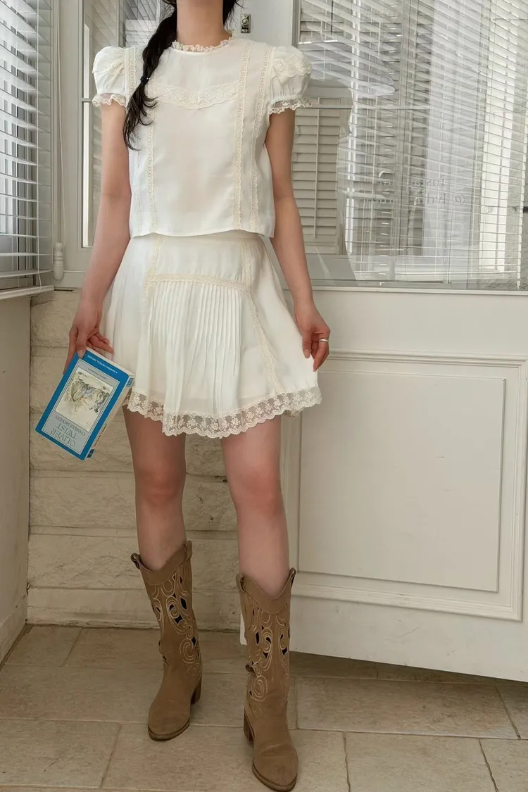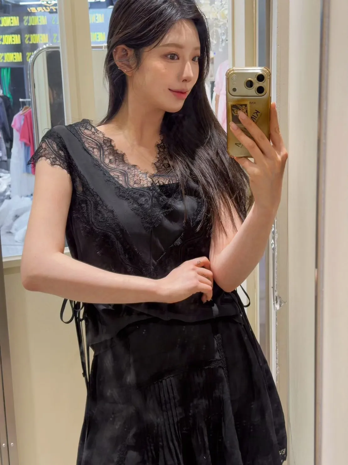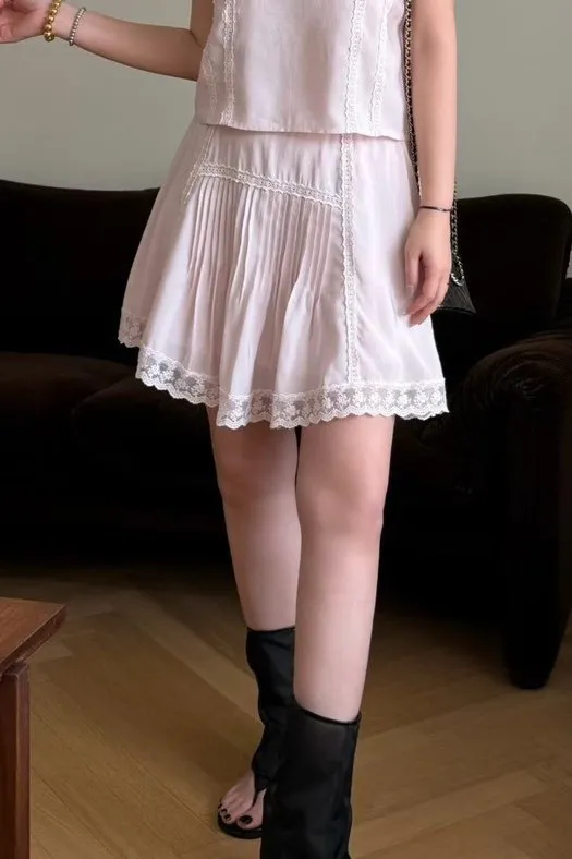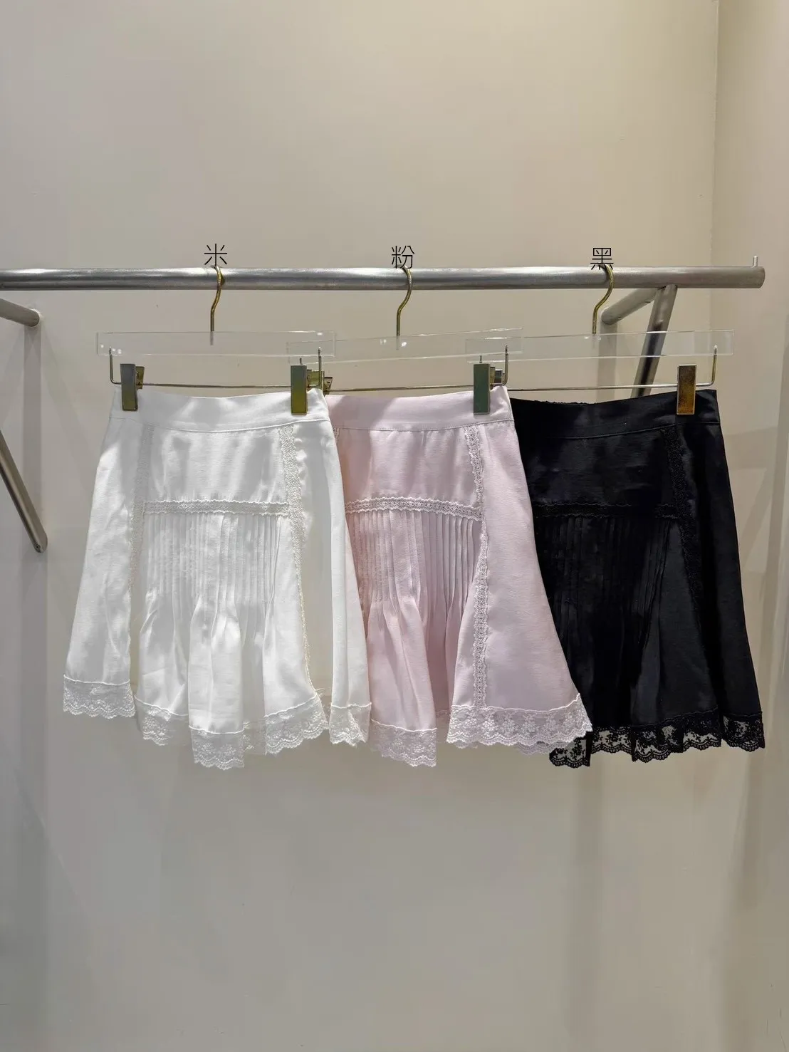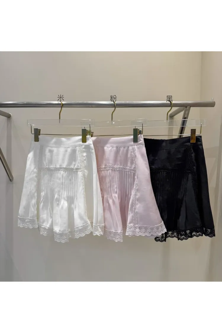 棉+天絲 精緻蕾絲下擺 前方細百褶 後腰鬆緊 側拉鍊 穿到小L
