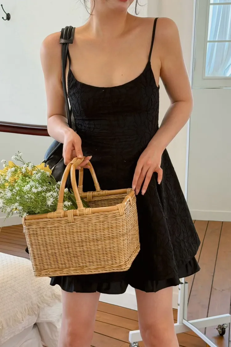 棉 細腰車線 肩帶可調 有內裡 下擺視覺雙層 穿到M號