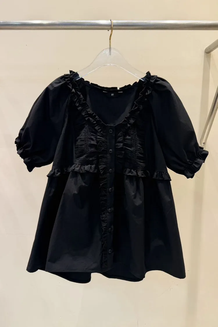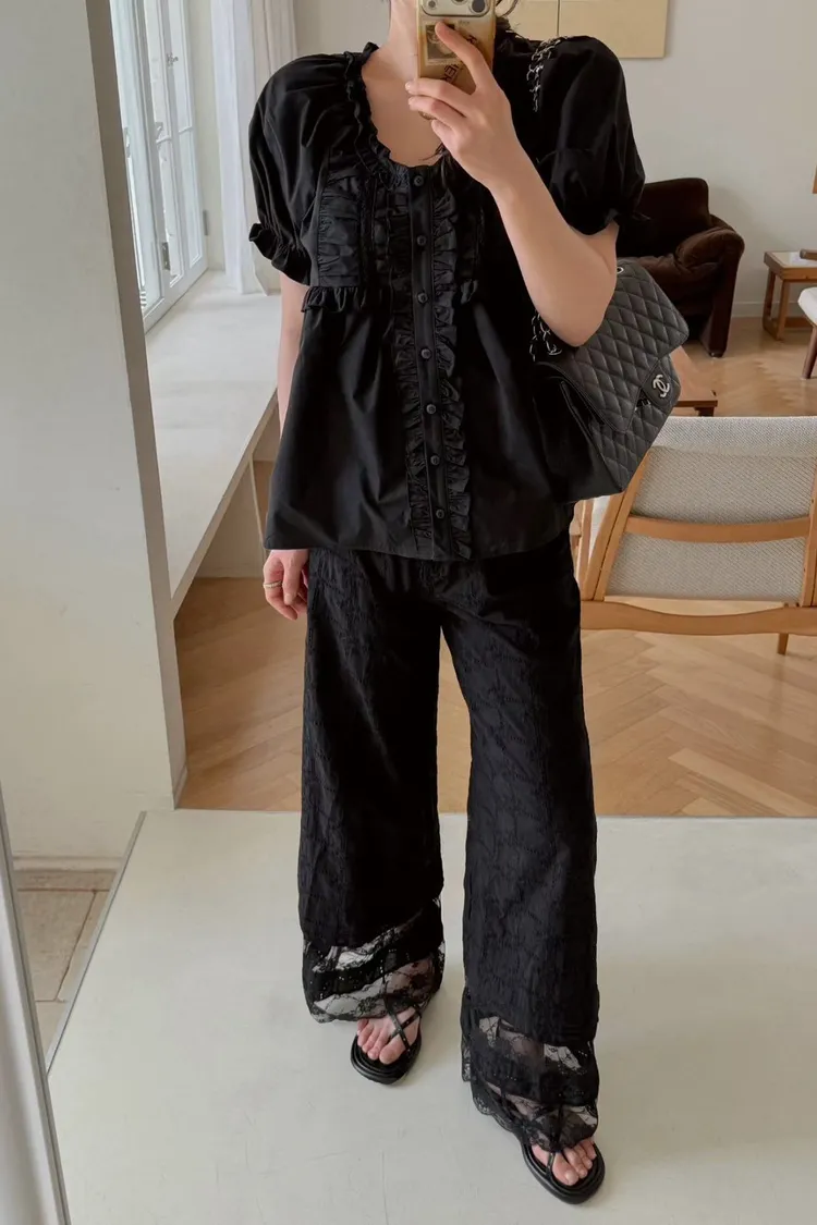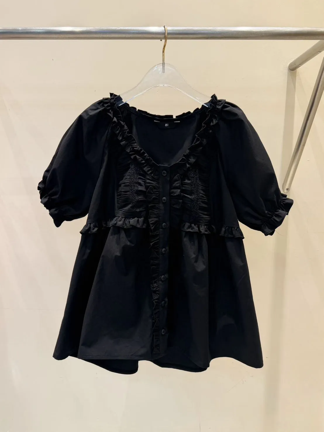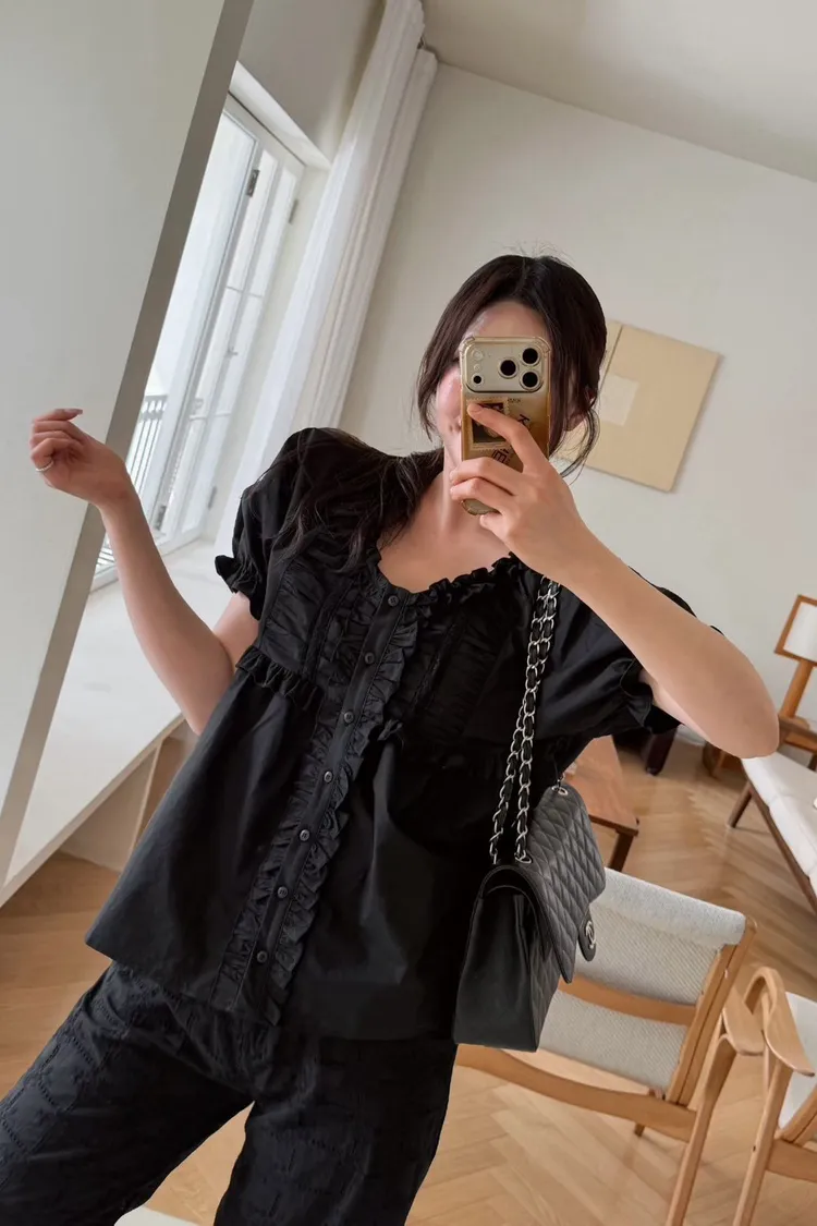 棉 胸前蕾絲抓皺 袖口彈性 寬鬆舒適 背後細緻抓皺 孕媽咪友善