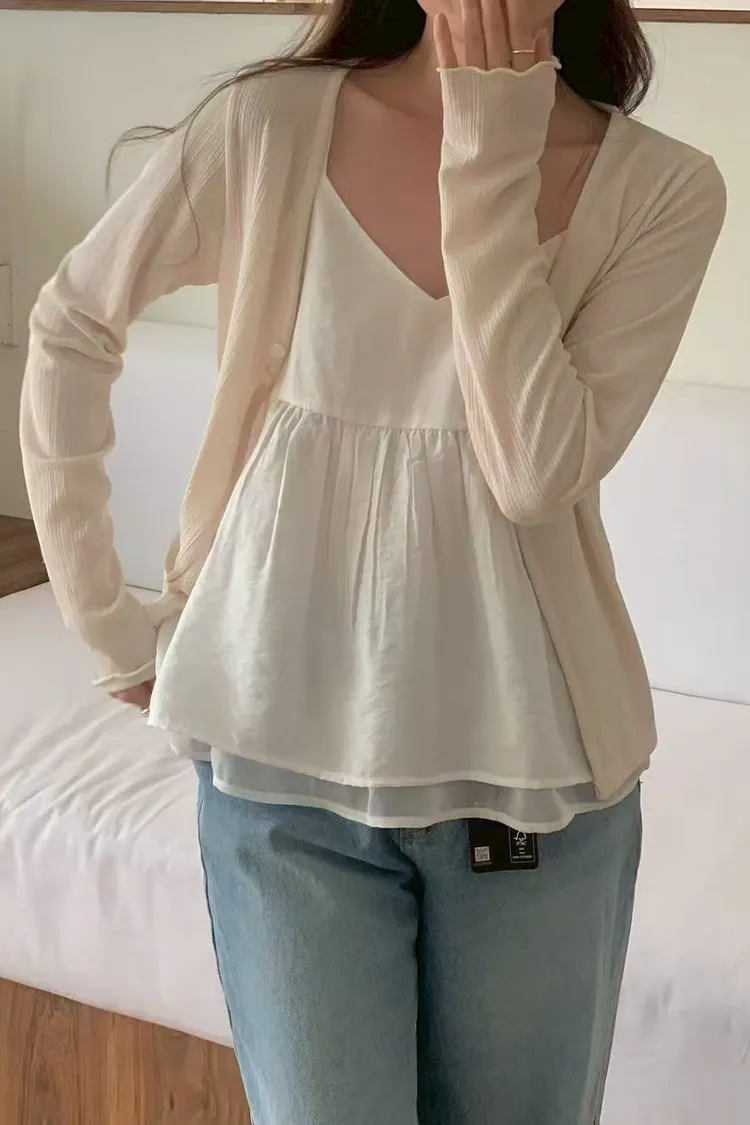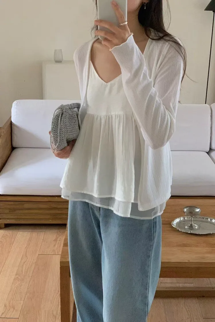 聚酯+彈力纖維 胸前兩顆鈕扣 白色微透 穿到M號