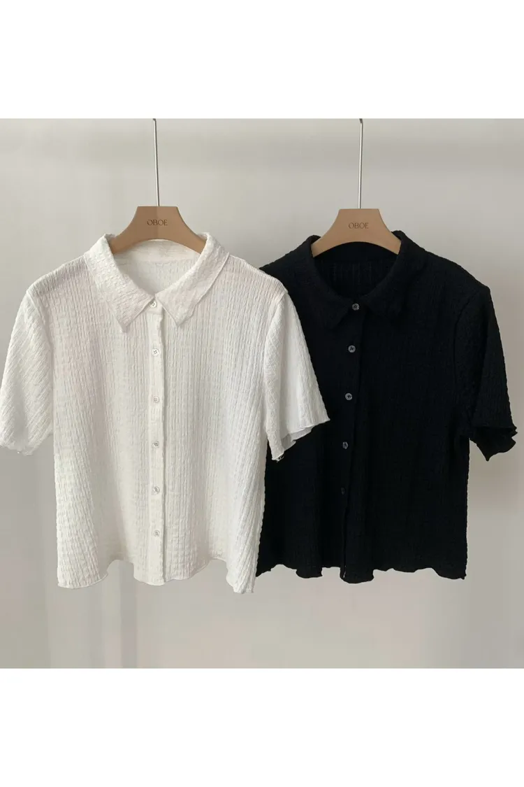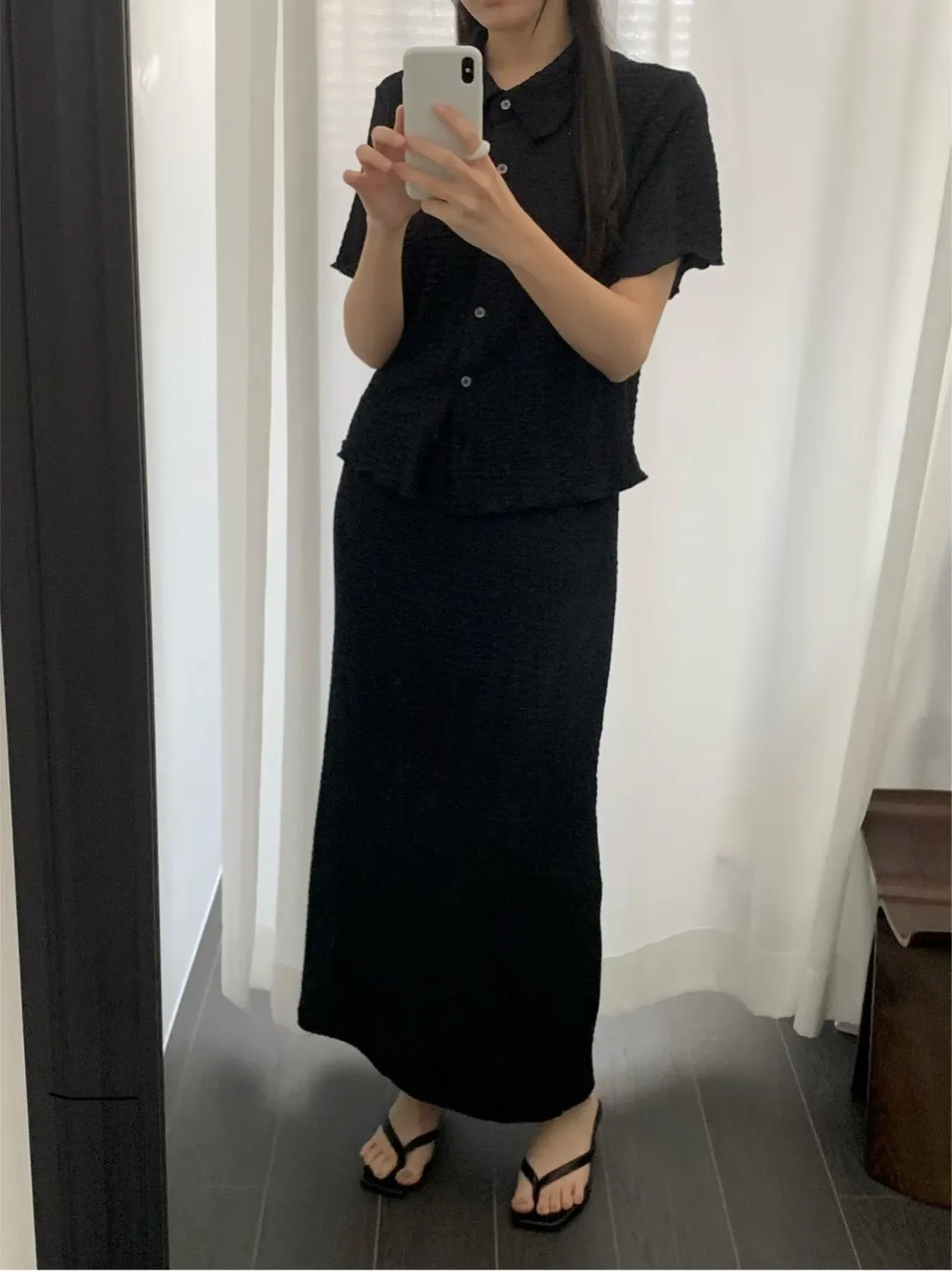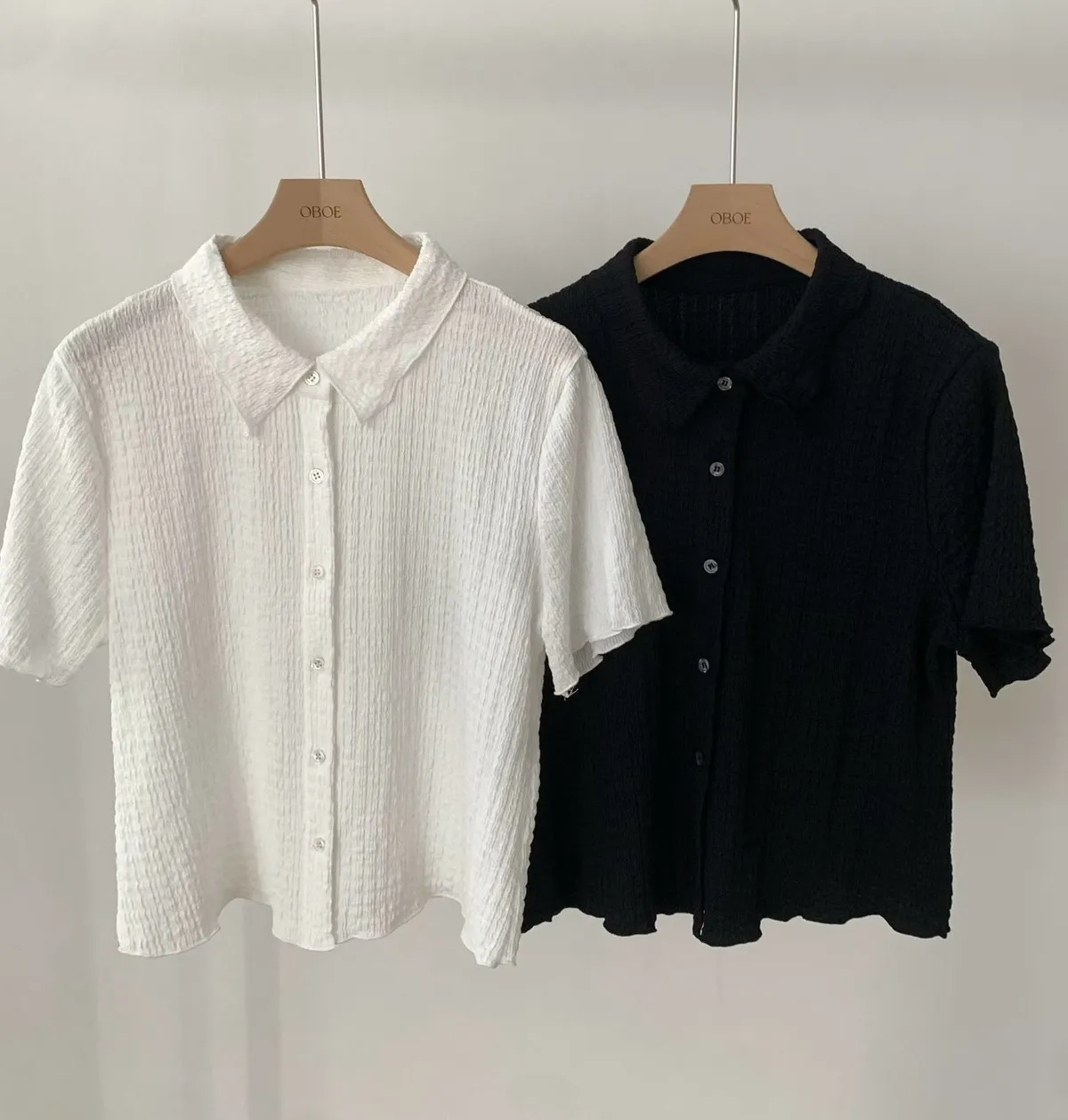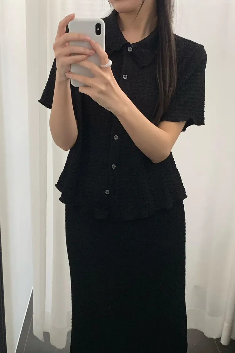 聚酯+彈力 柔軟親膚 細皺紋裡 排釦穿脫 木耳滾邊 有彈性