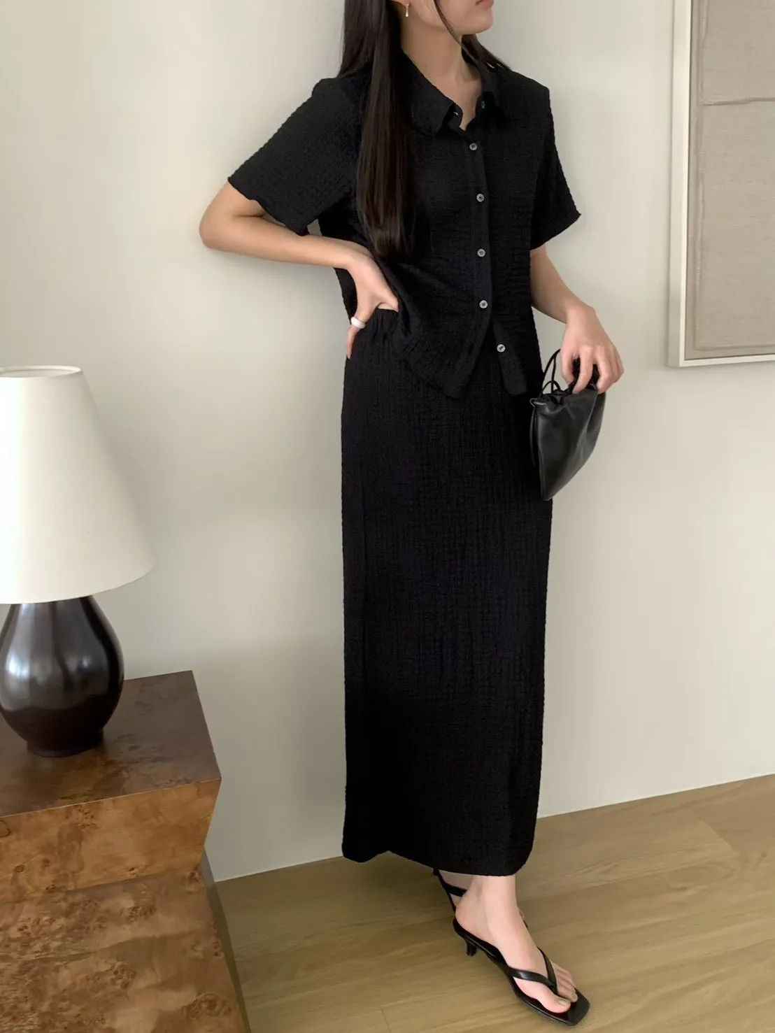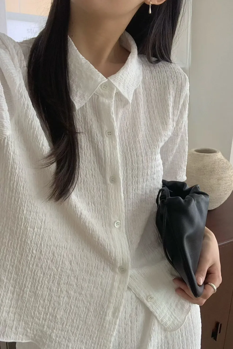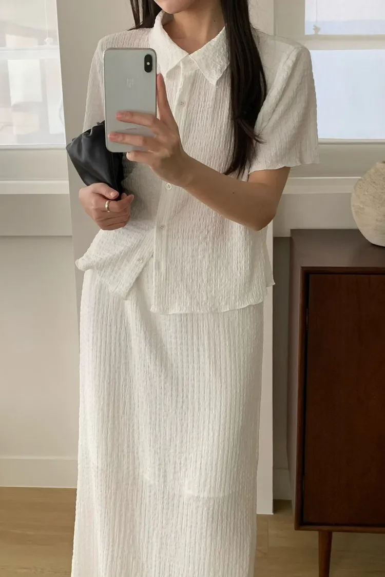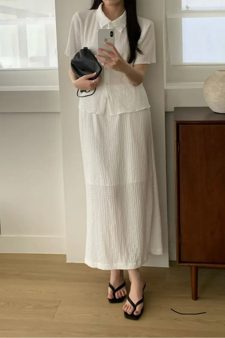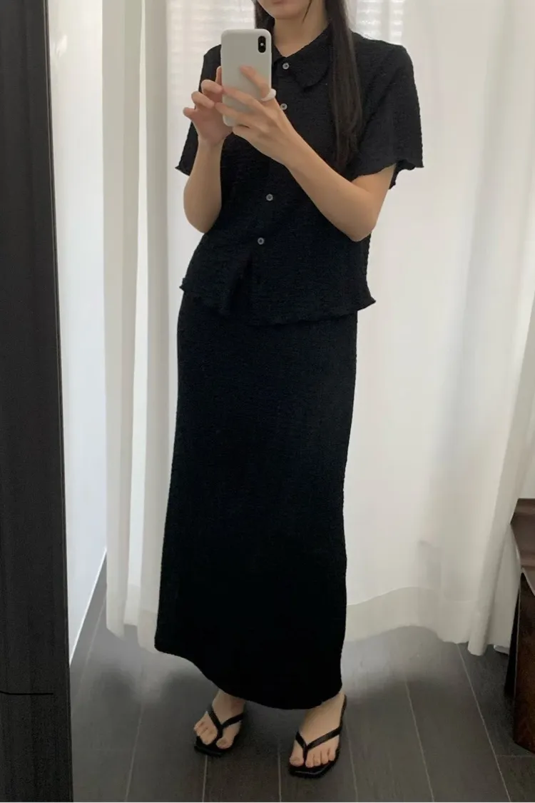 聚酯+彈力 柔軟親膚 細皺紋裡 排釦穿脫 木耳滾邊 有彈性