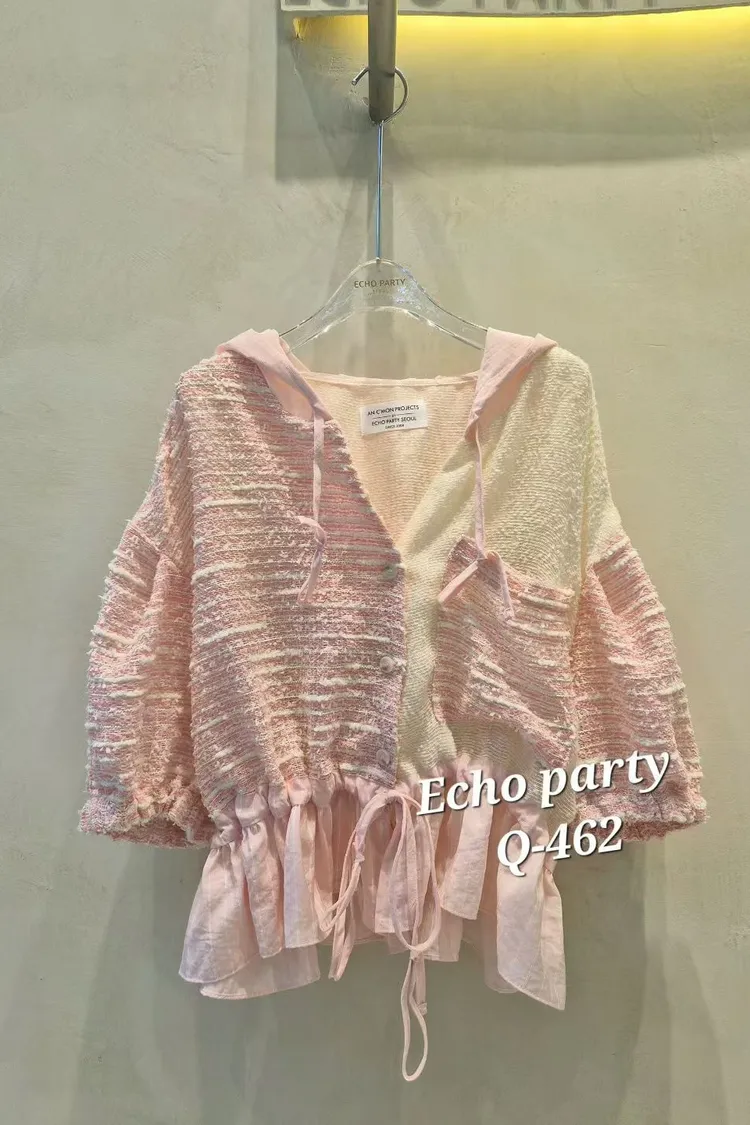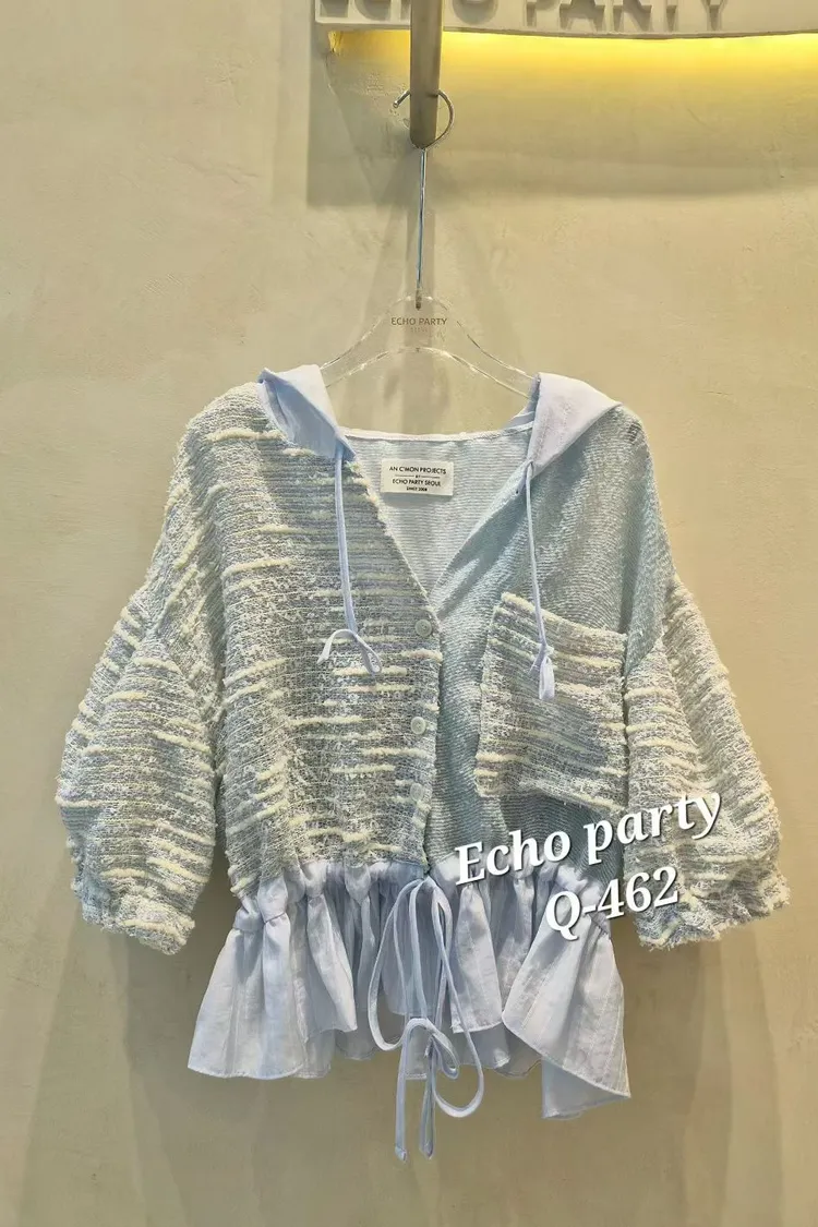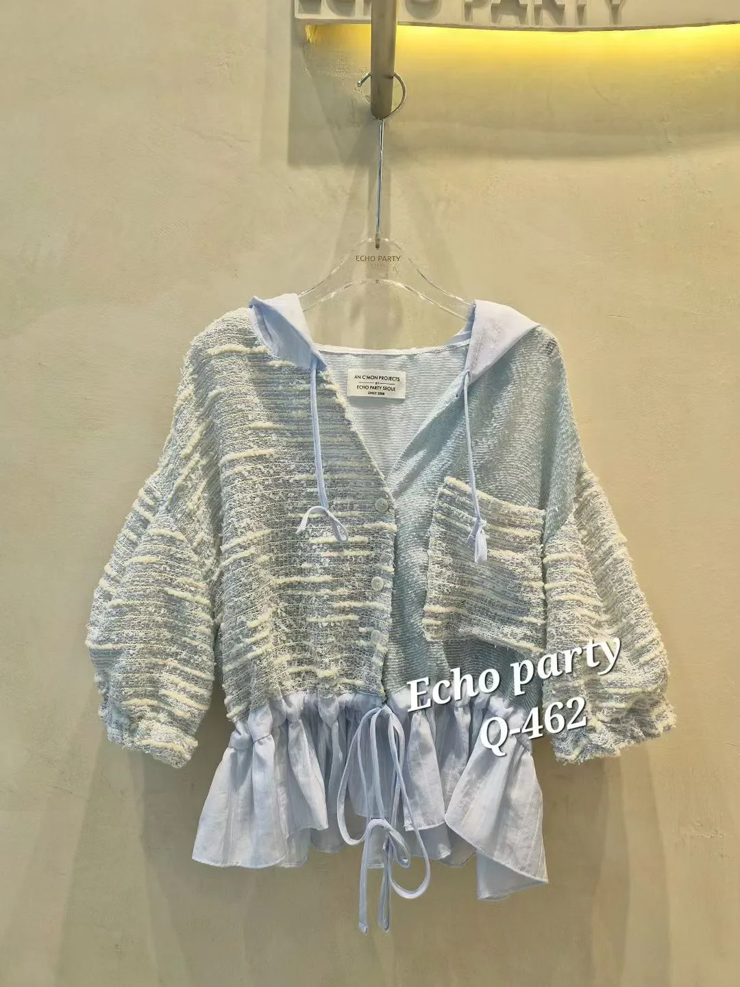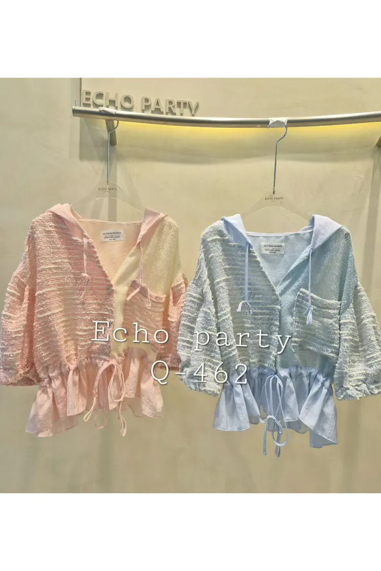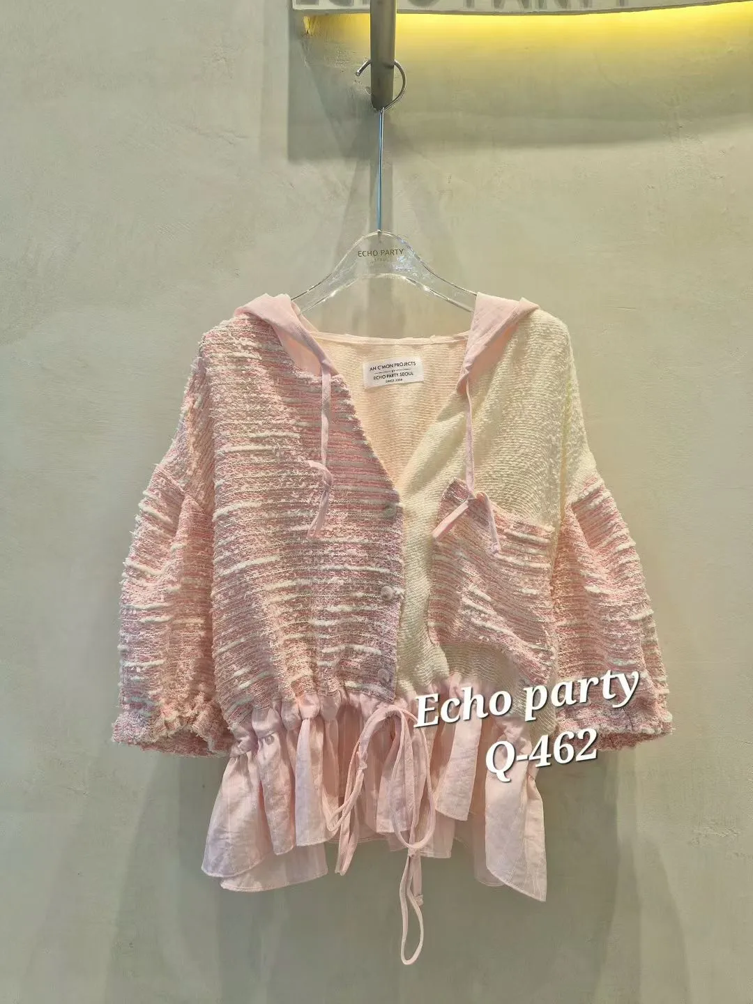 棉+聚酯 小香風格 薄款透膚 連帽設計 下擺鬆緊