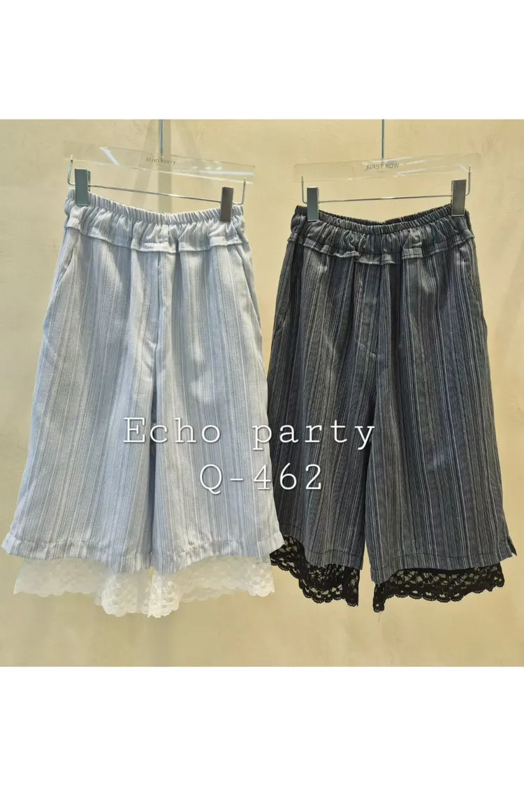 棉+聚酯 薄款面料 全腰鬆緊 有口袋 褲管下擺蕾絲 有內裡 夏天可穿