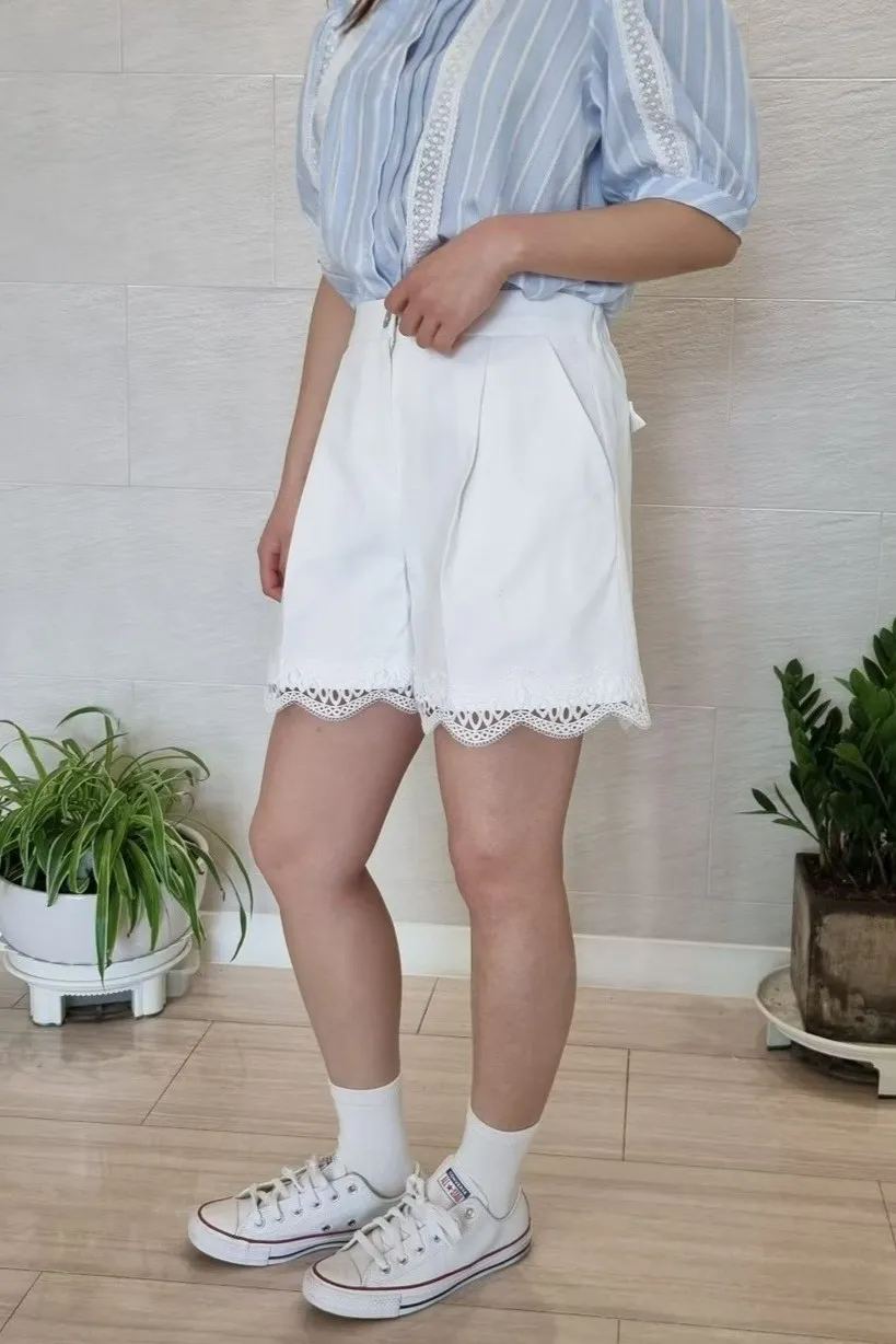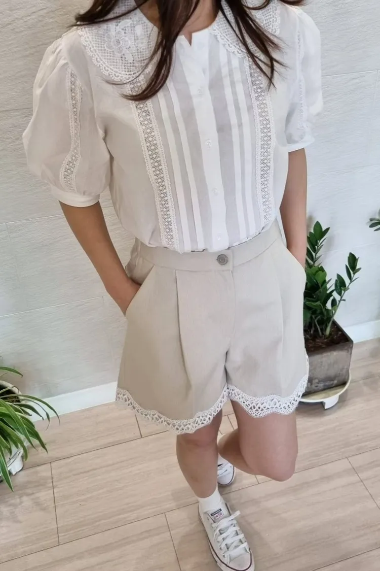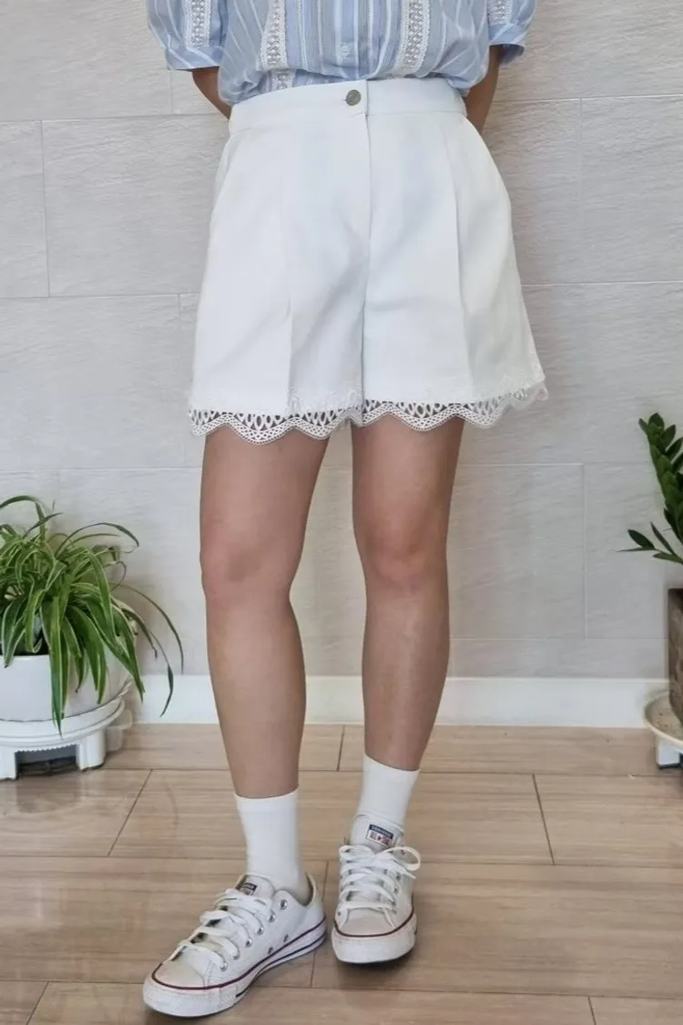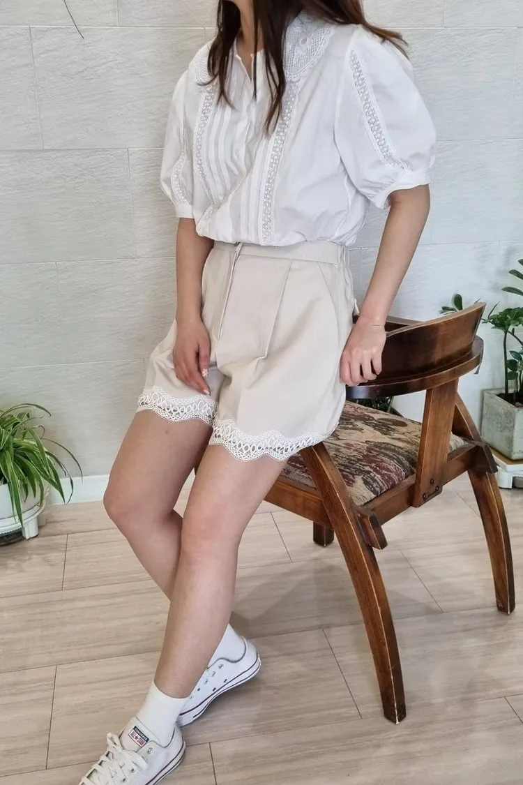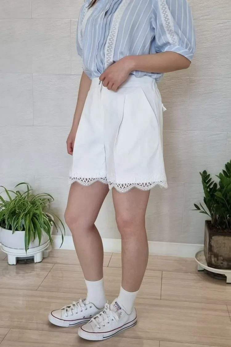 棉 下擺蕾絲 釦鍊穿脫 後腰鬆緊 有口袋
