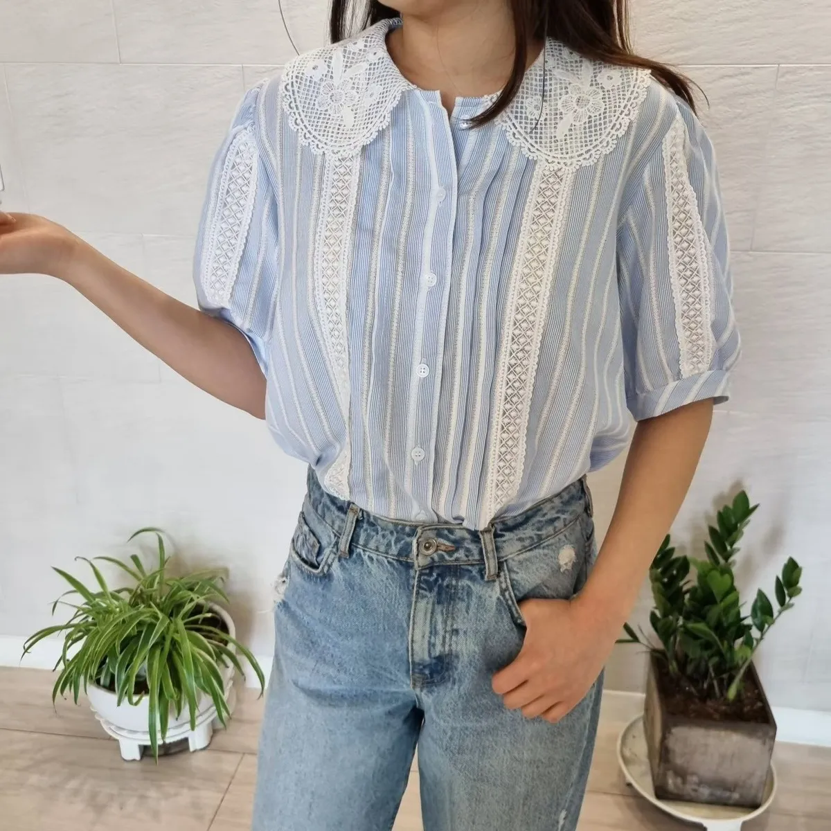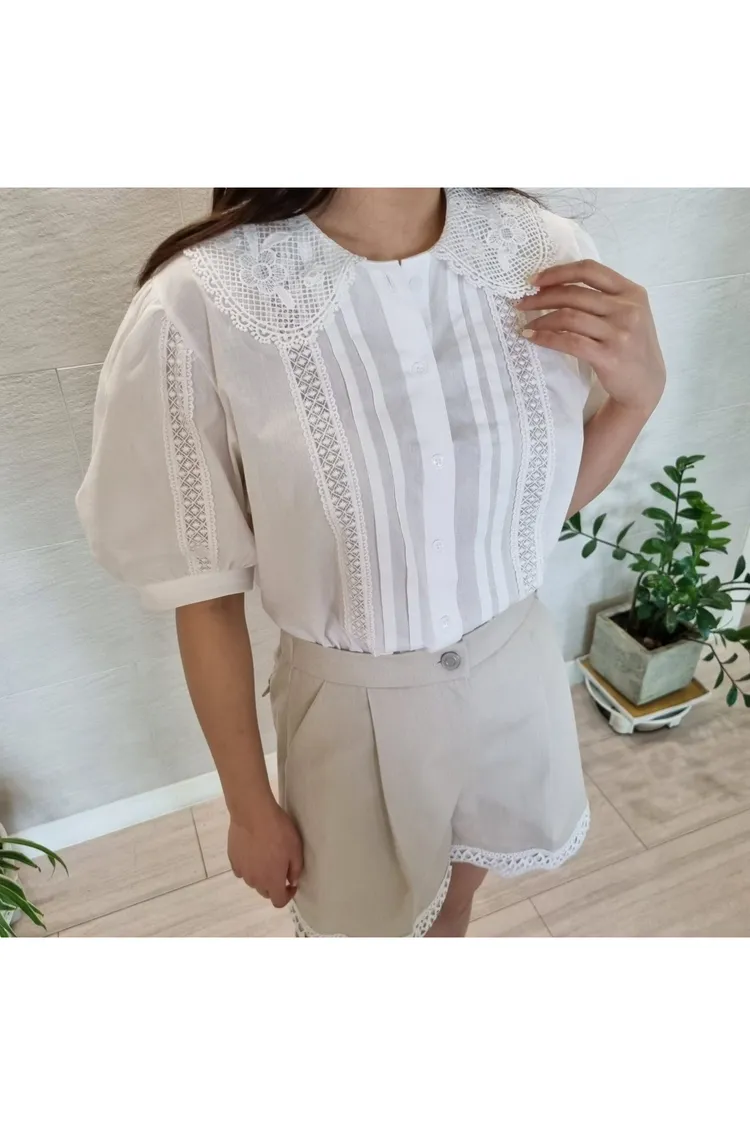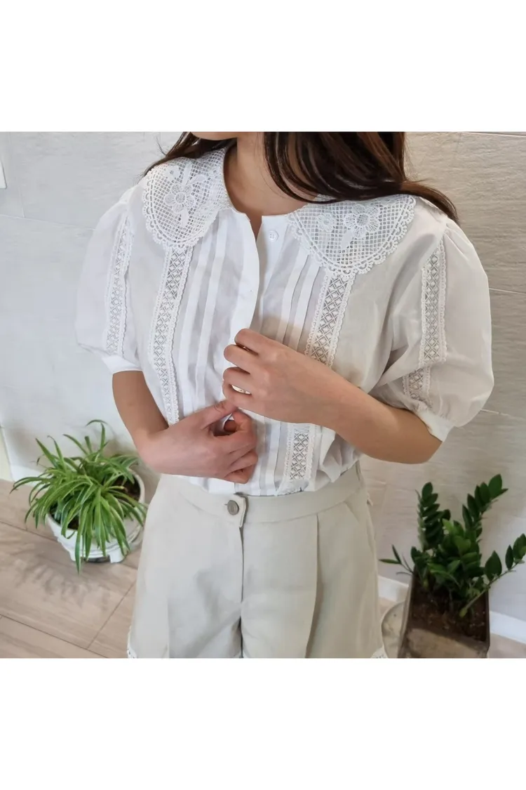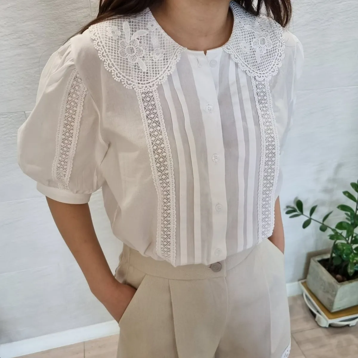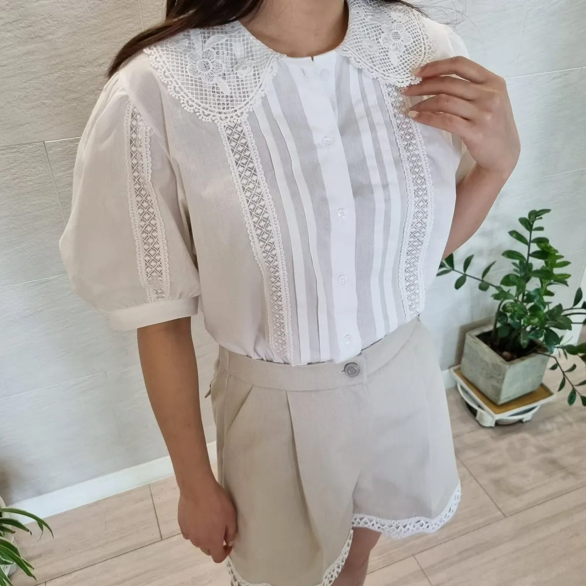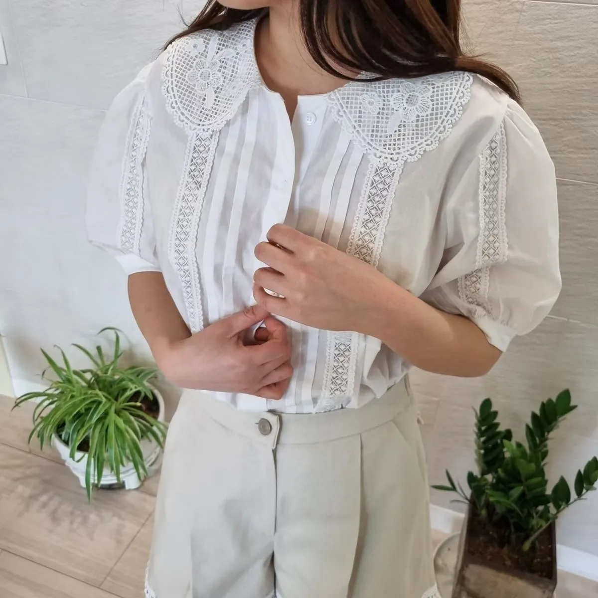 棉 薄款輕盈 透氣舒適 精緻蕾絲翻領 排釦穿脫
