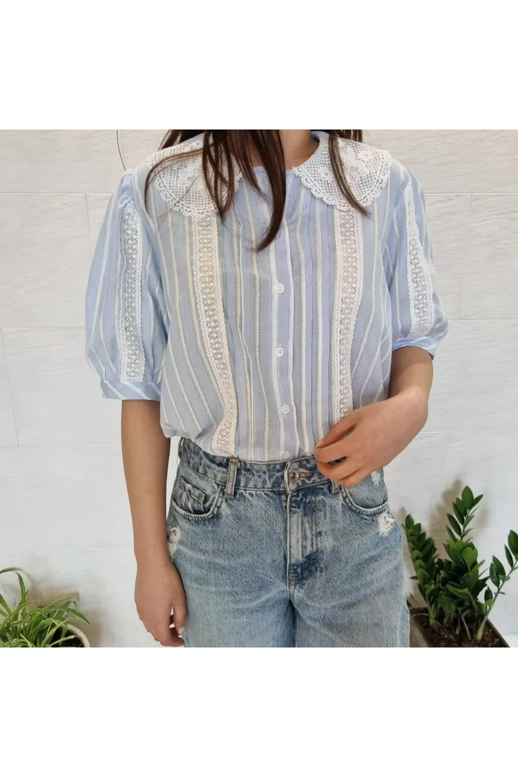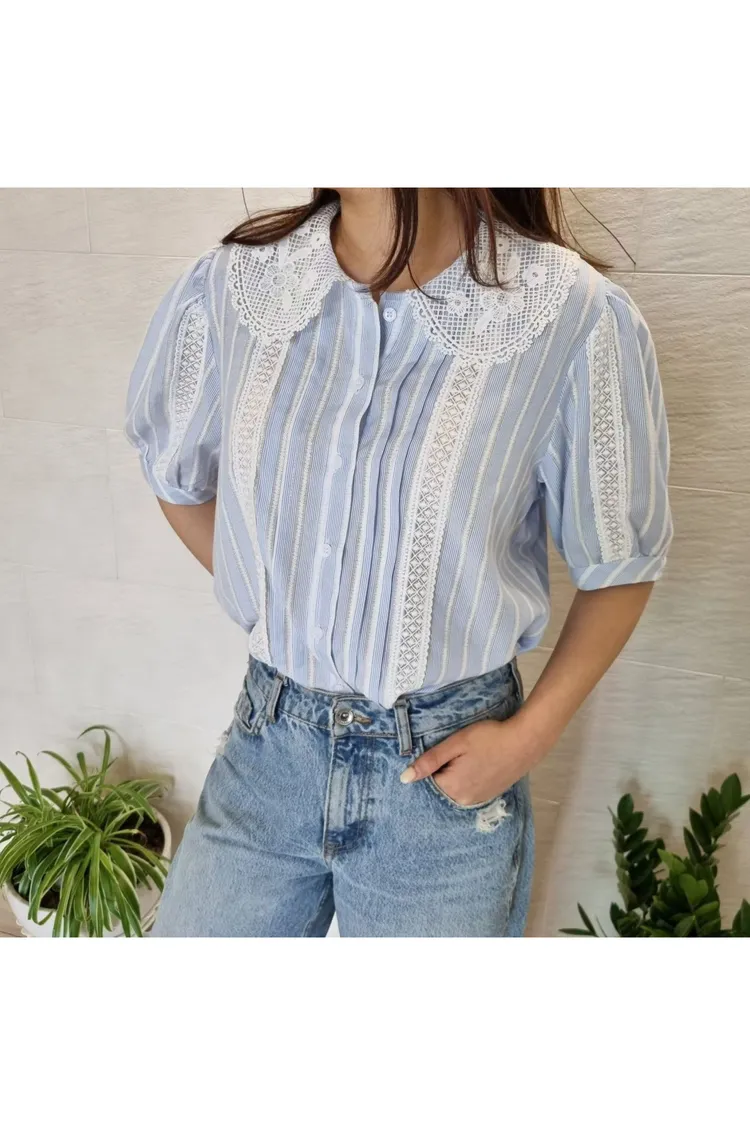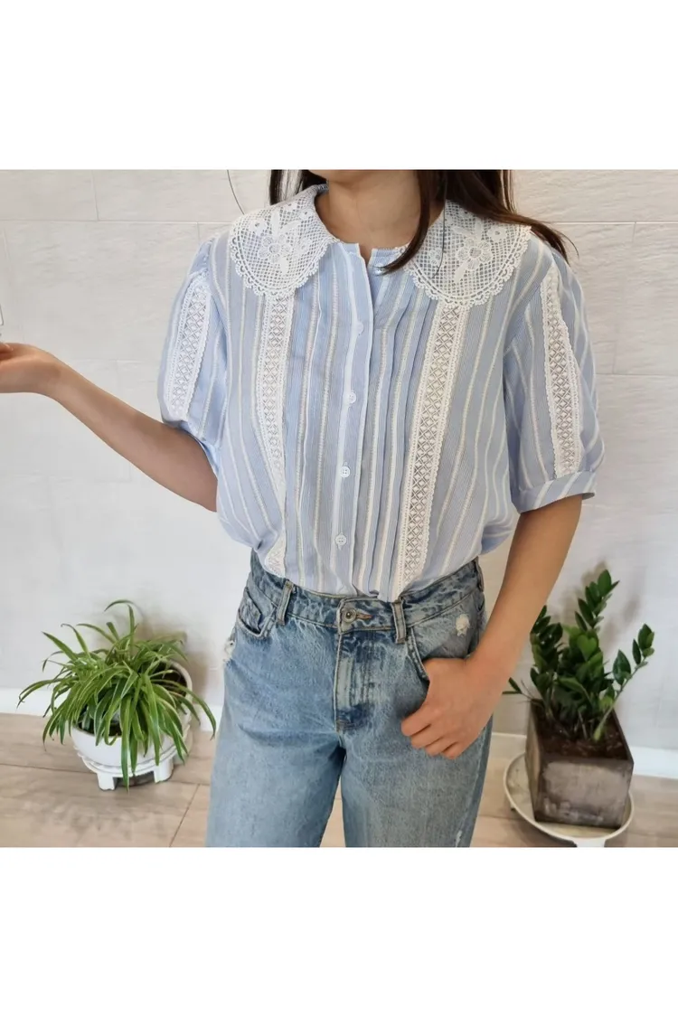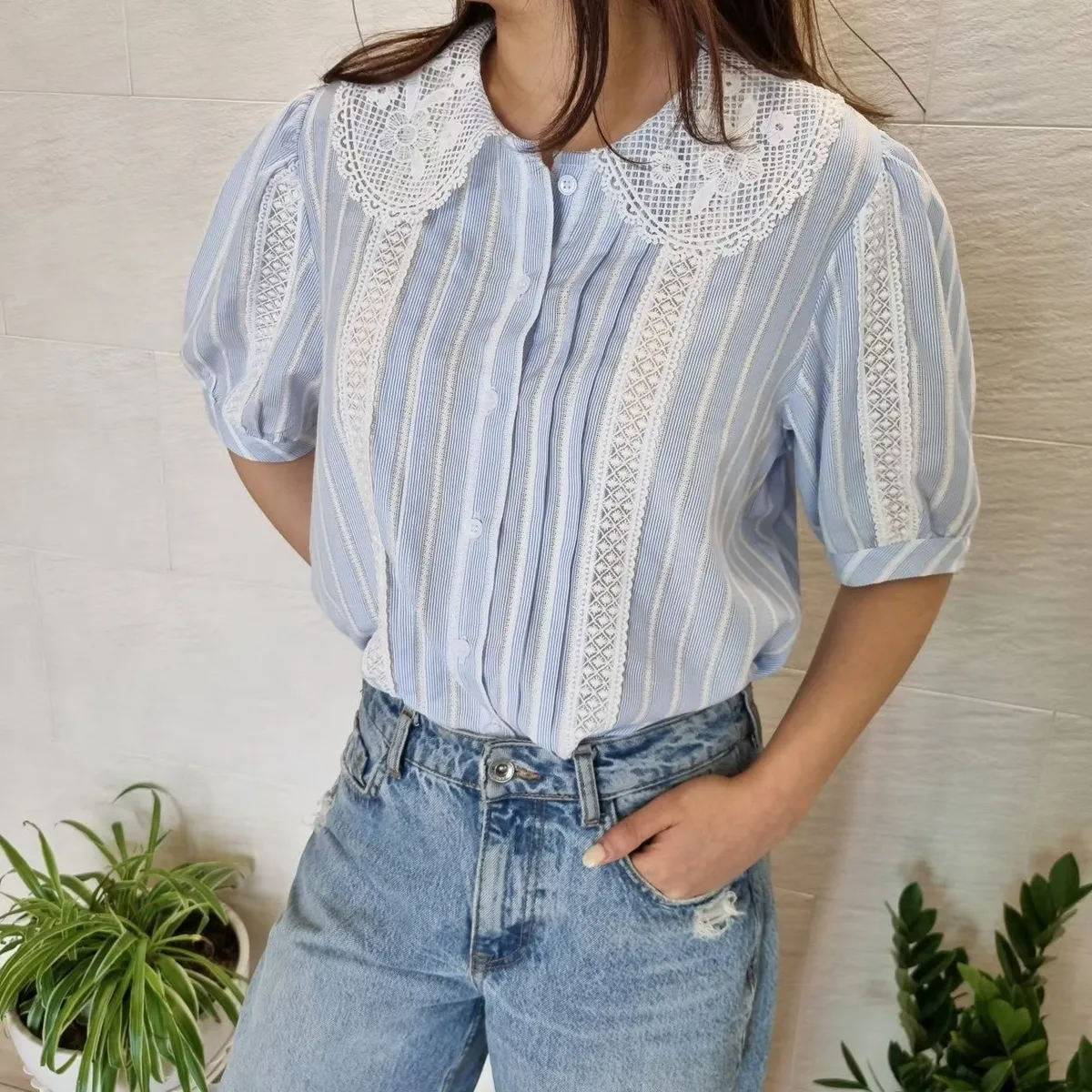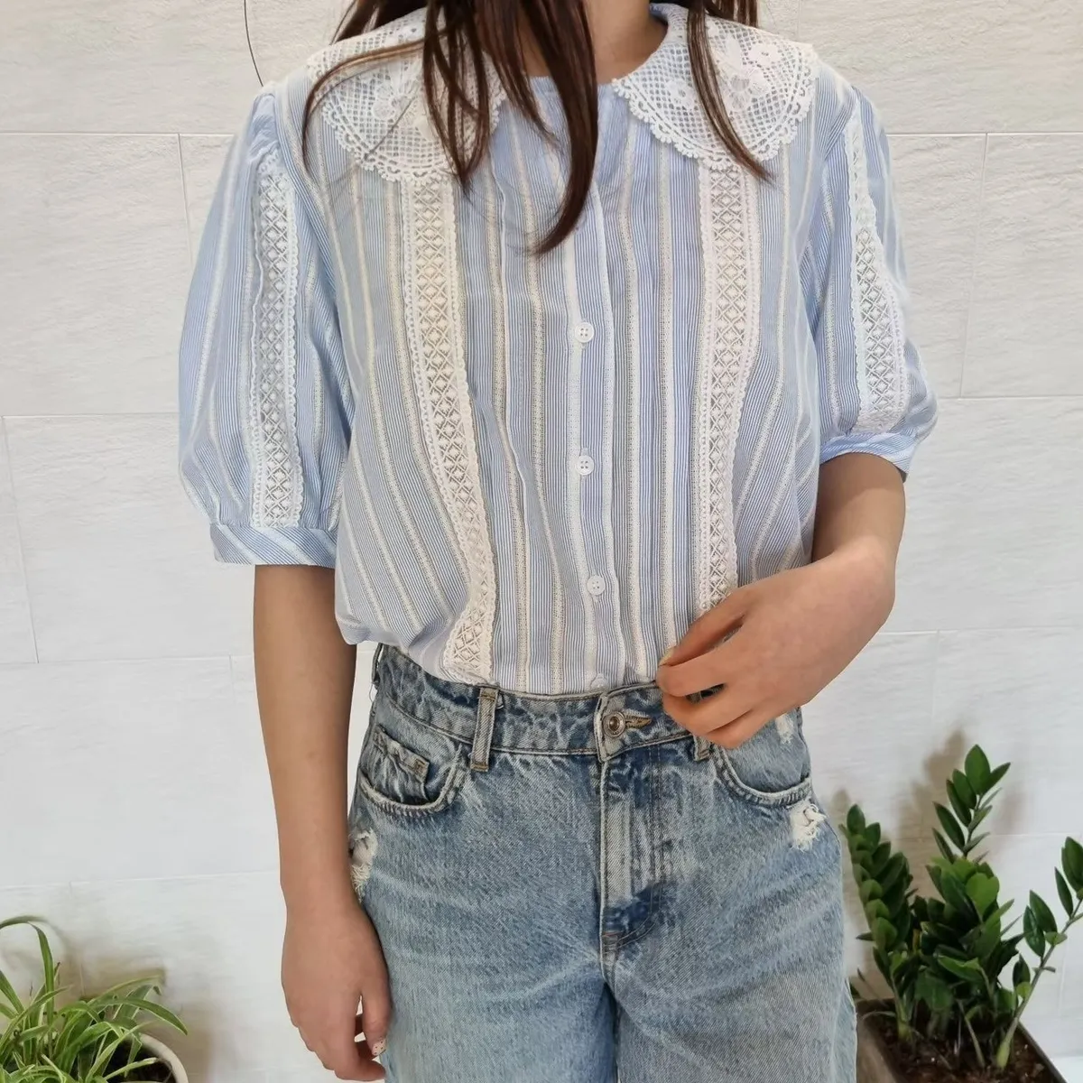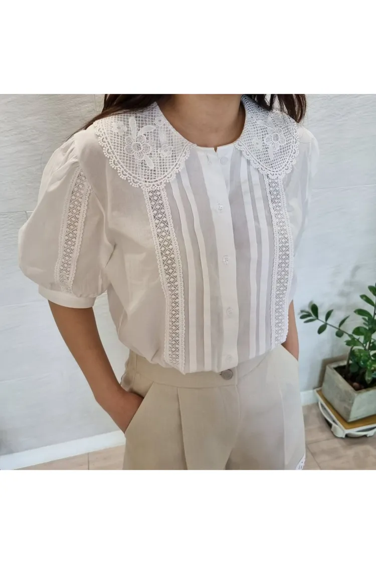 棉 薄款輕盈 透氣舒適 精緻蕾絲翻領 排釦穿脫