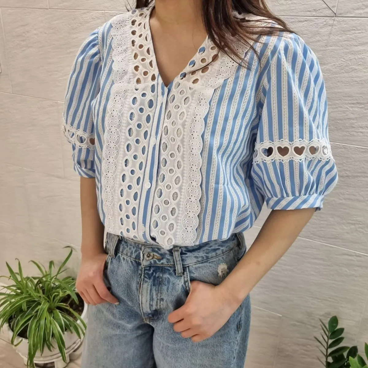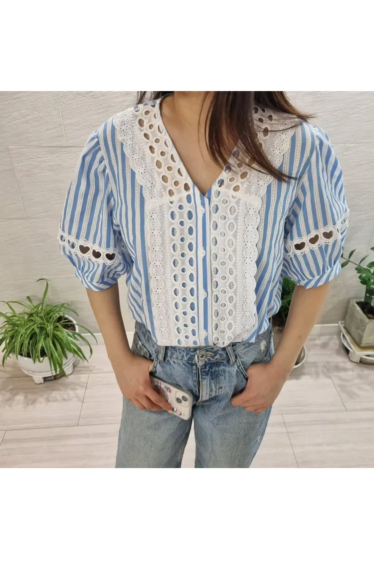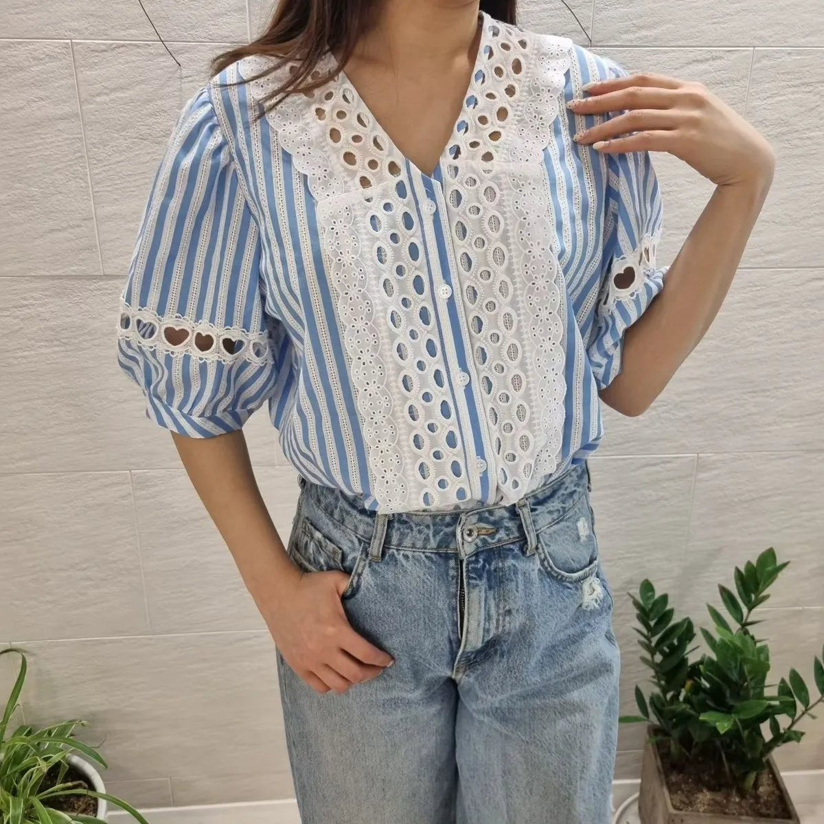 棉 愛心簍空手繡 燒花蕾絲 排釦穿脫 適合夏天