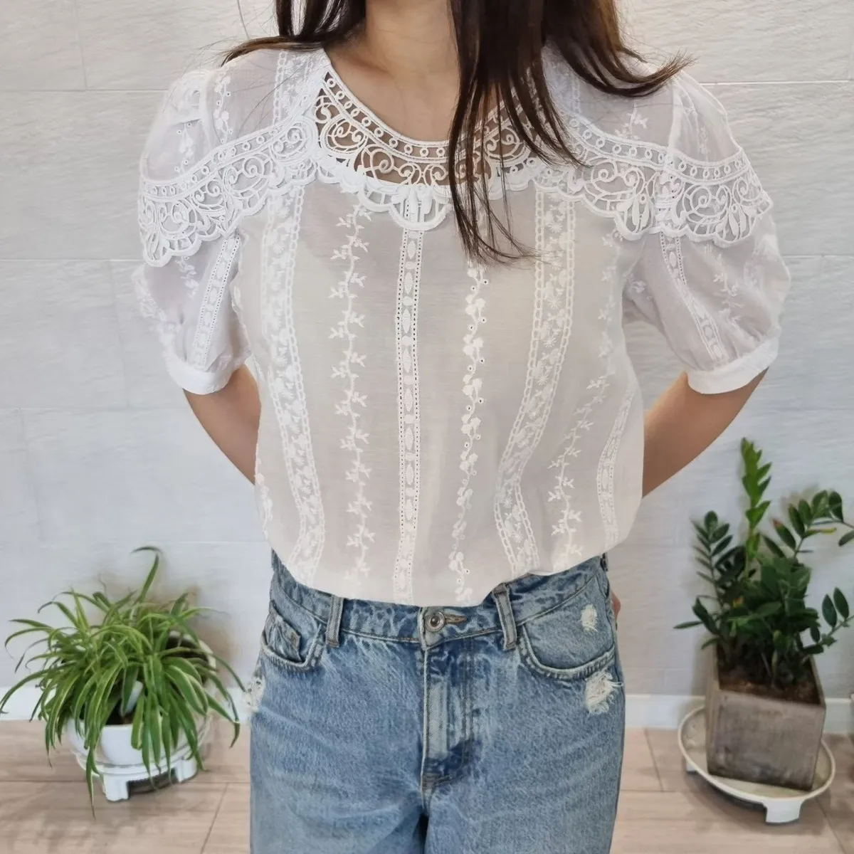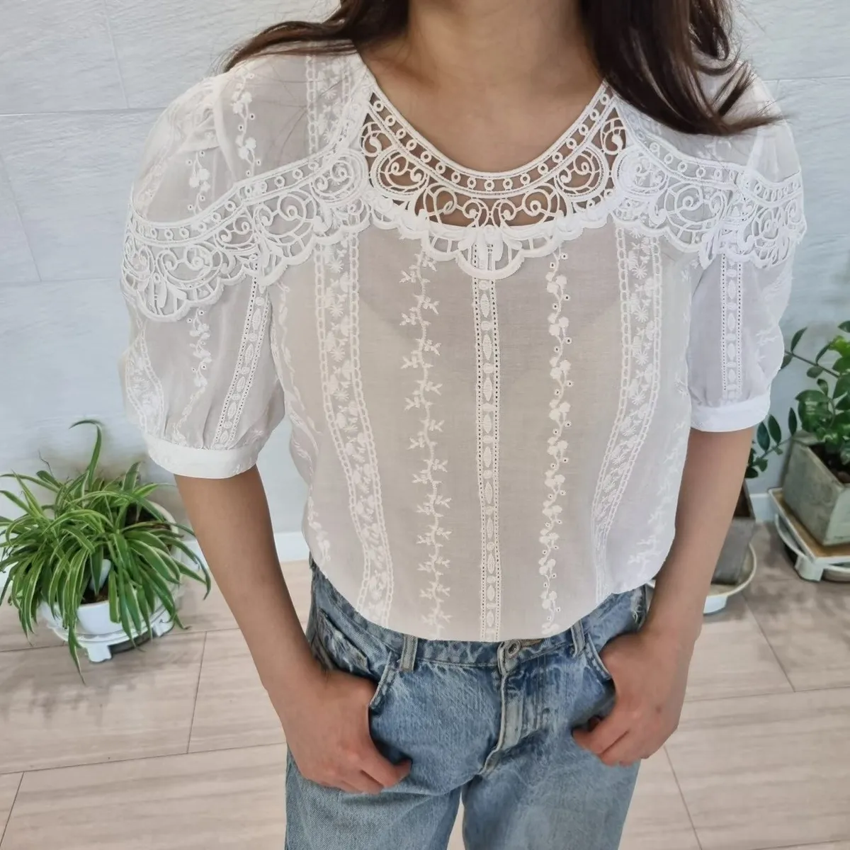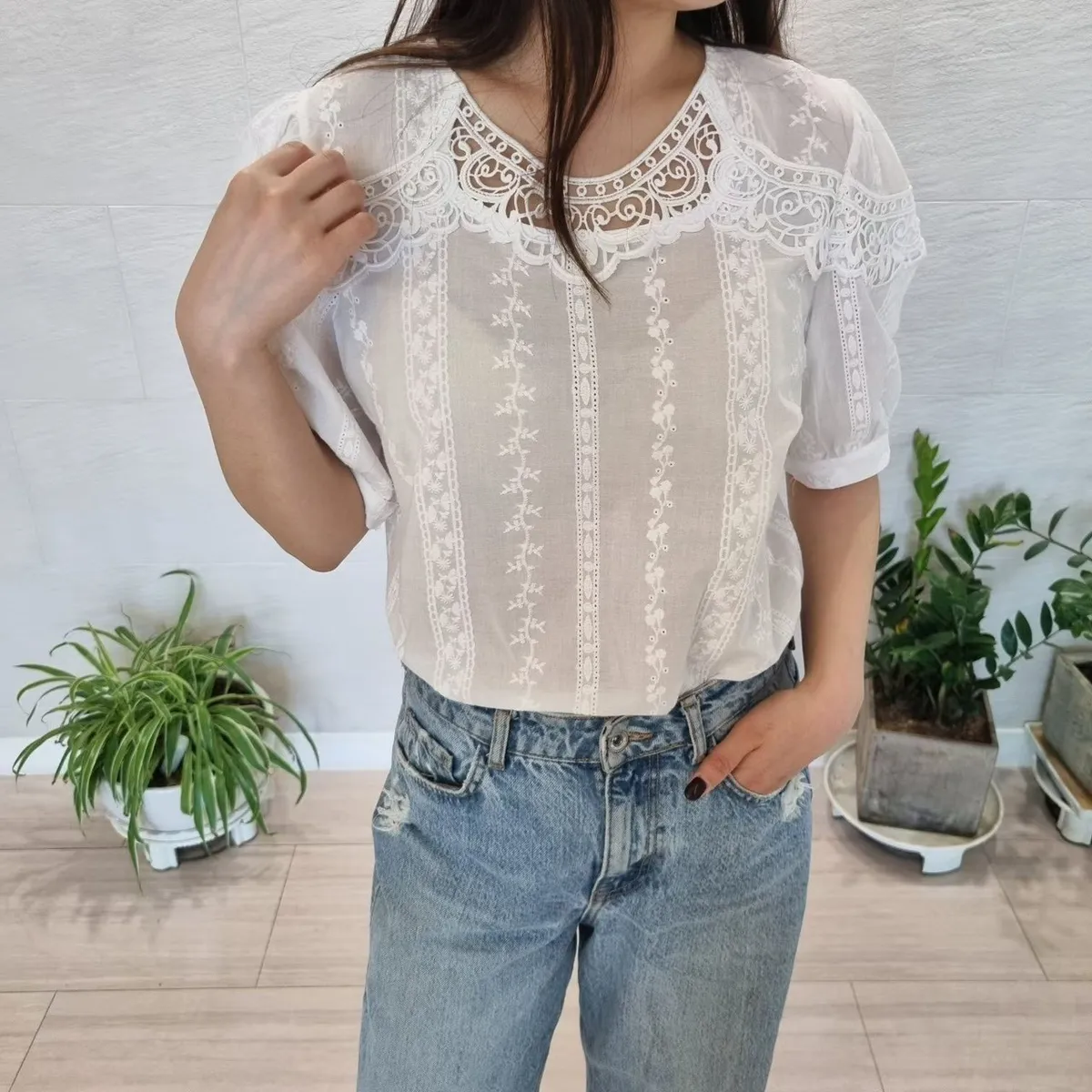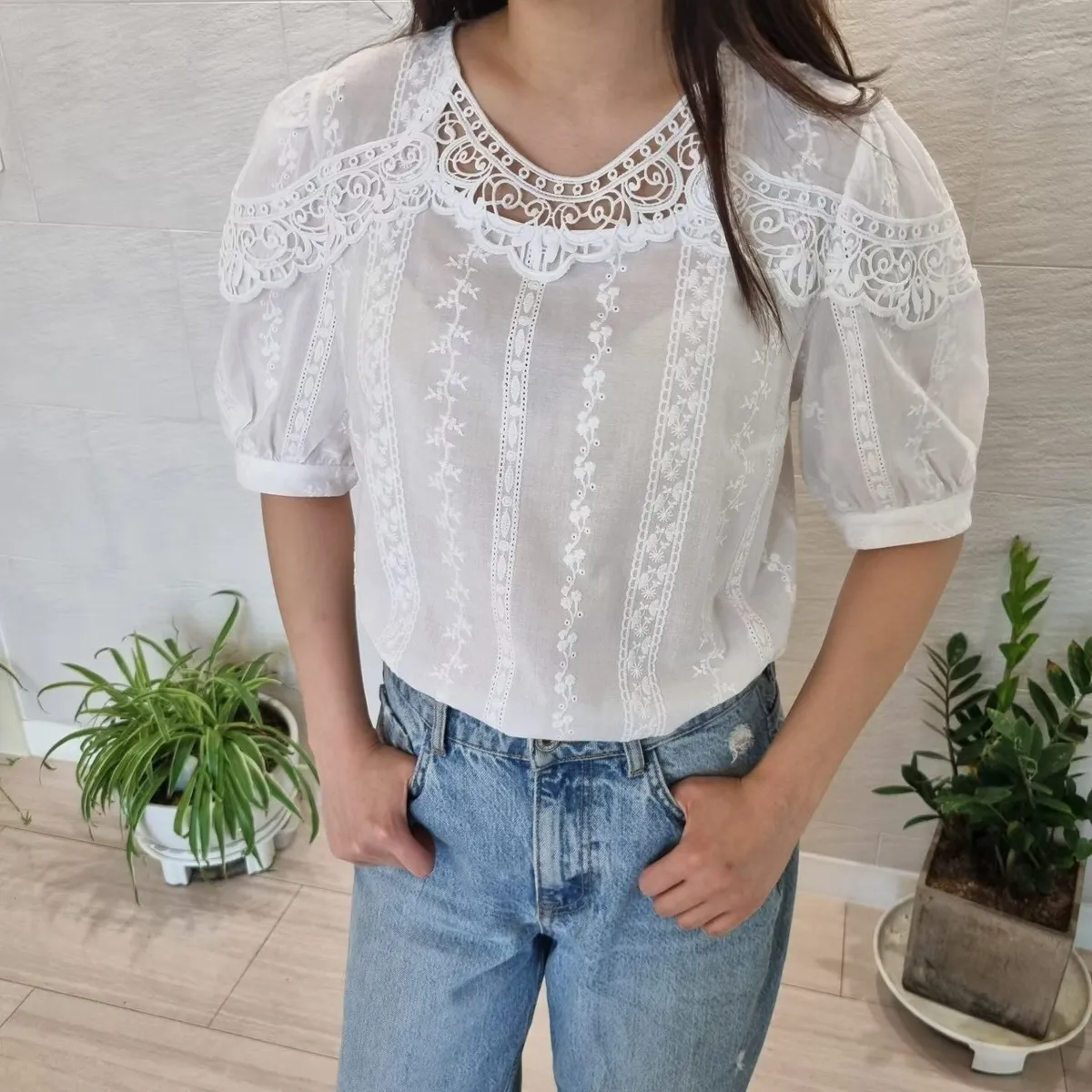棉 簍空雕花布蕾絲 精緻刺繡 後頸釦穿脫 版型顯瘦