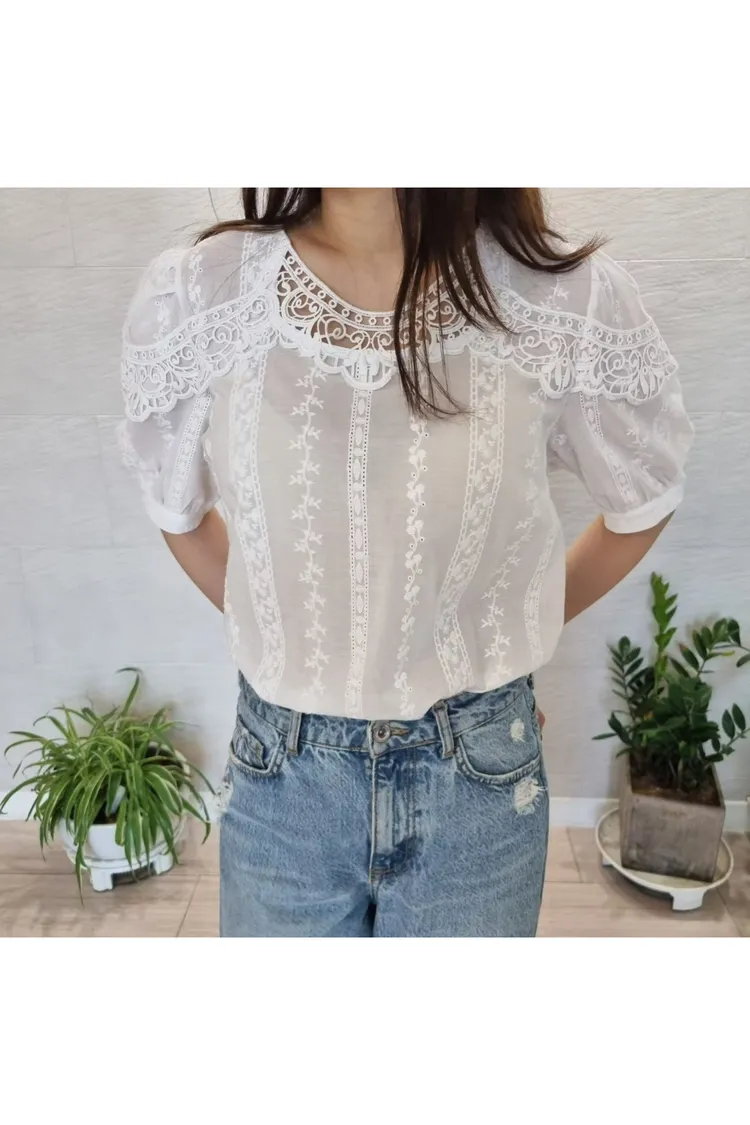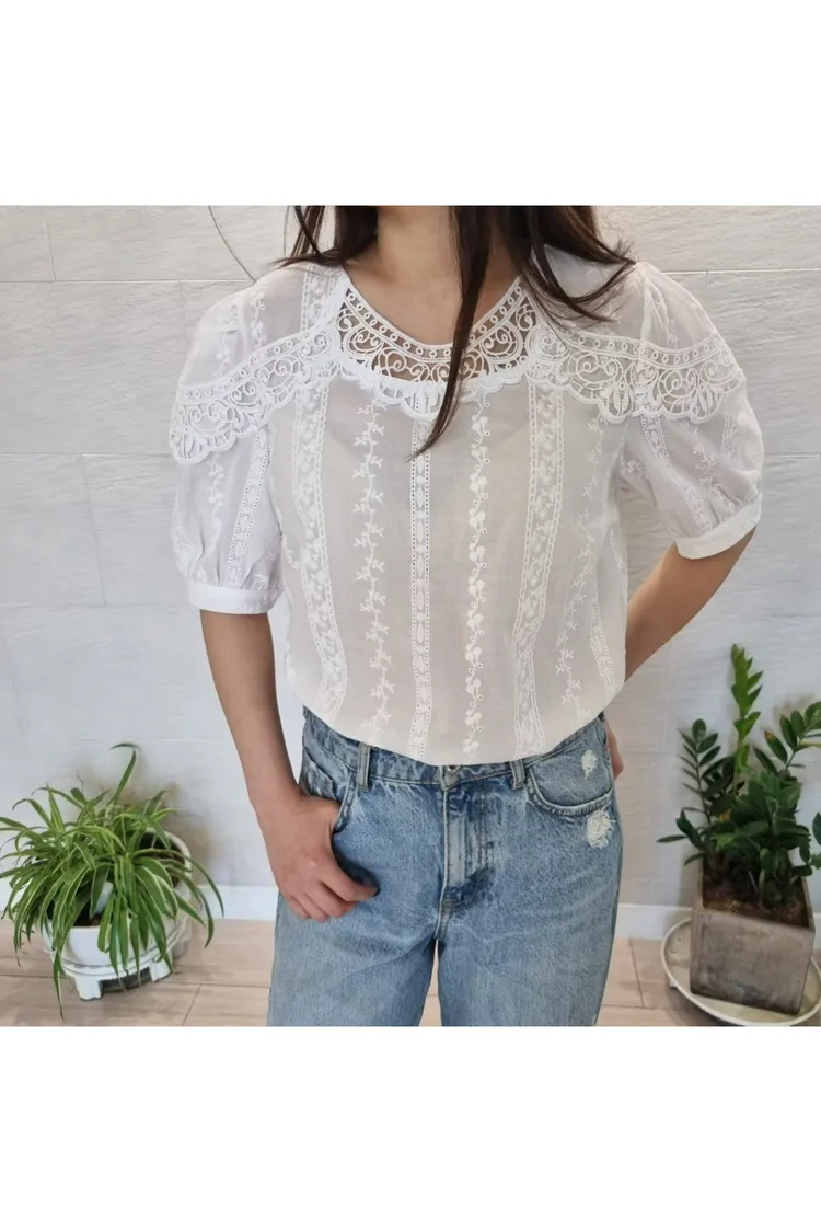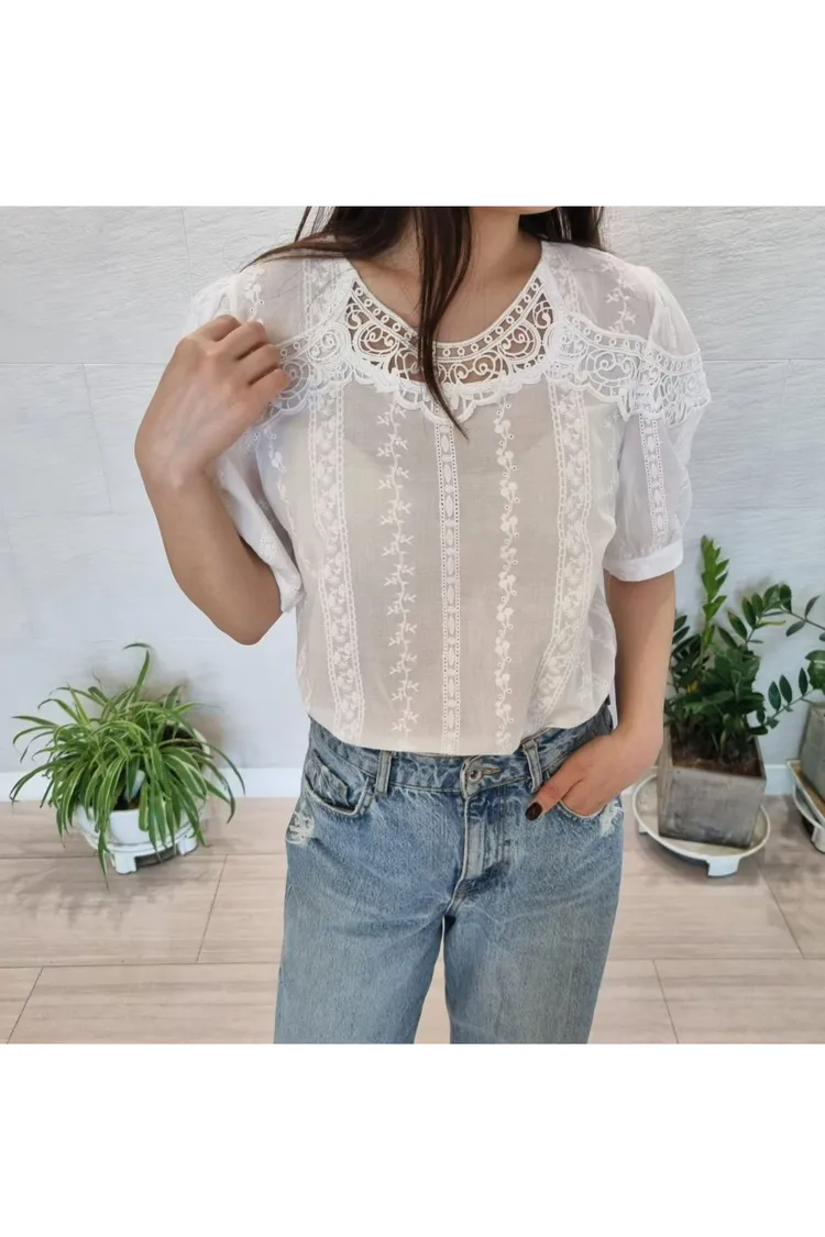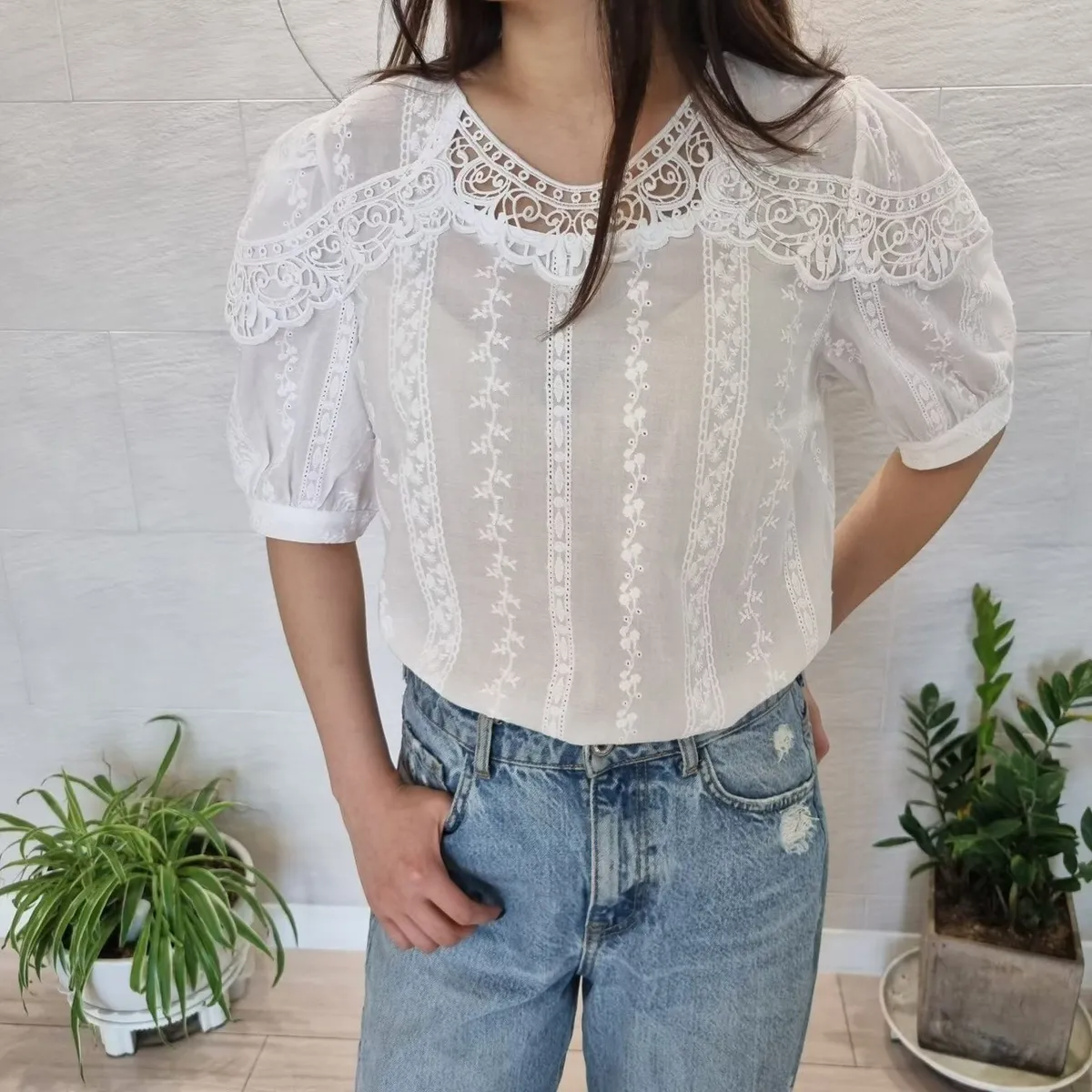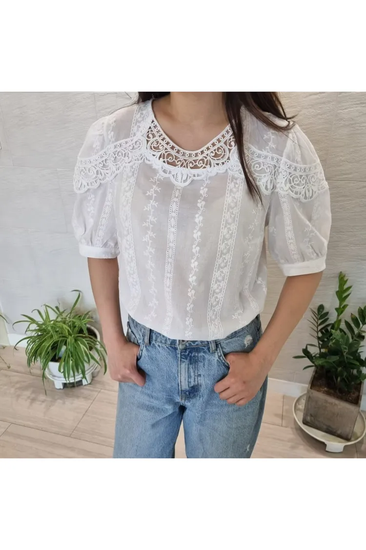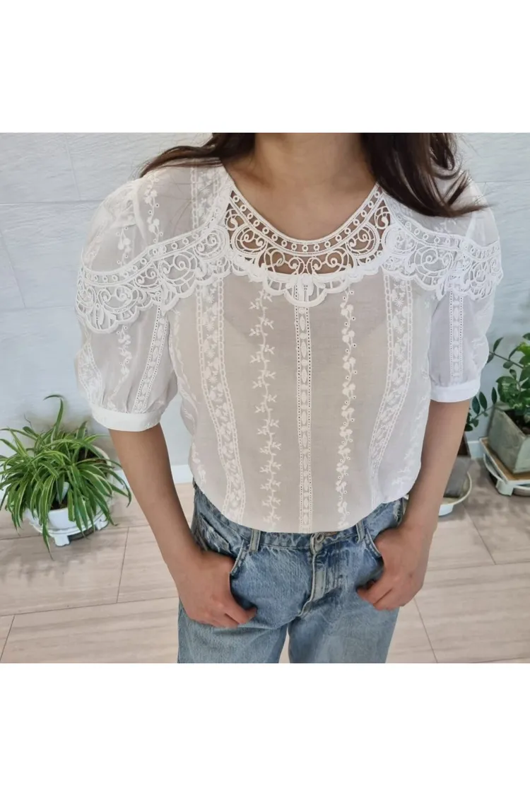 棉 簍空雕花布蕾絲 精緻刺繡 後頸釦穿脫 版型顯瘦