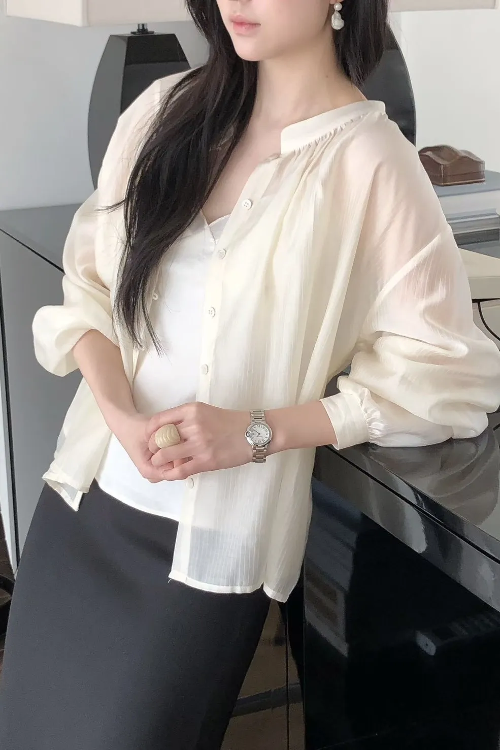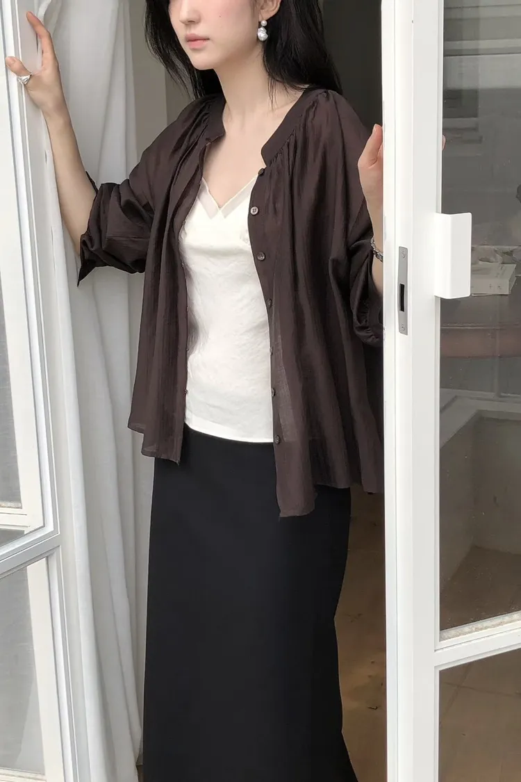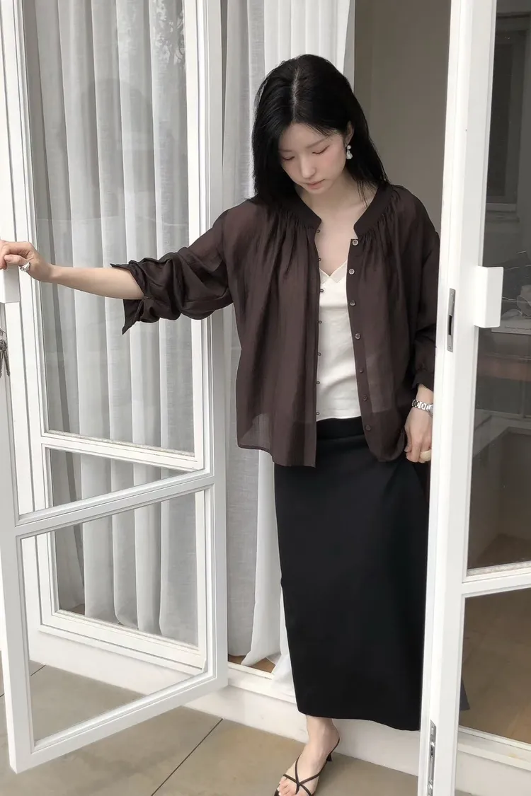 縲縈+聚酯 薄款透光 排釦穿脫 輕盈柔軟 細緻微光澤
