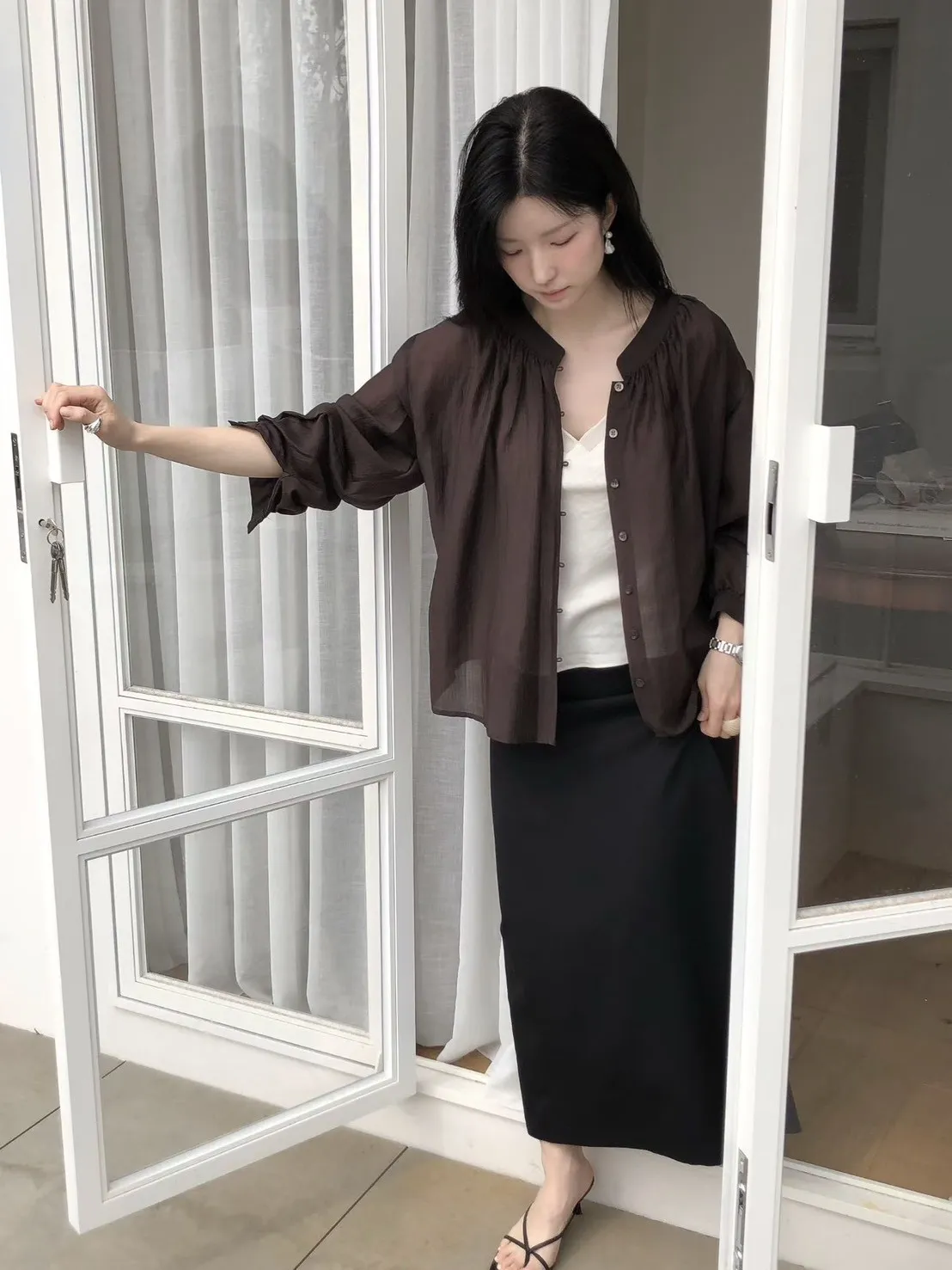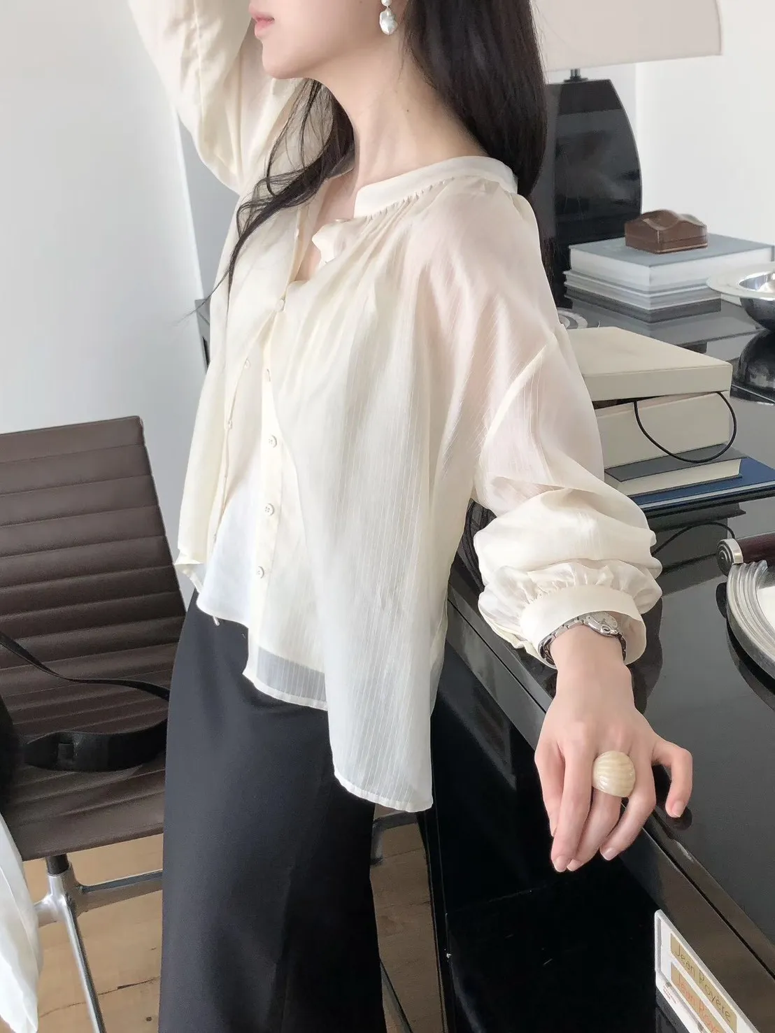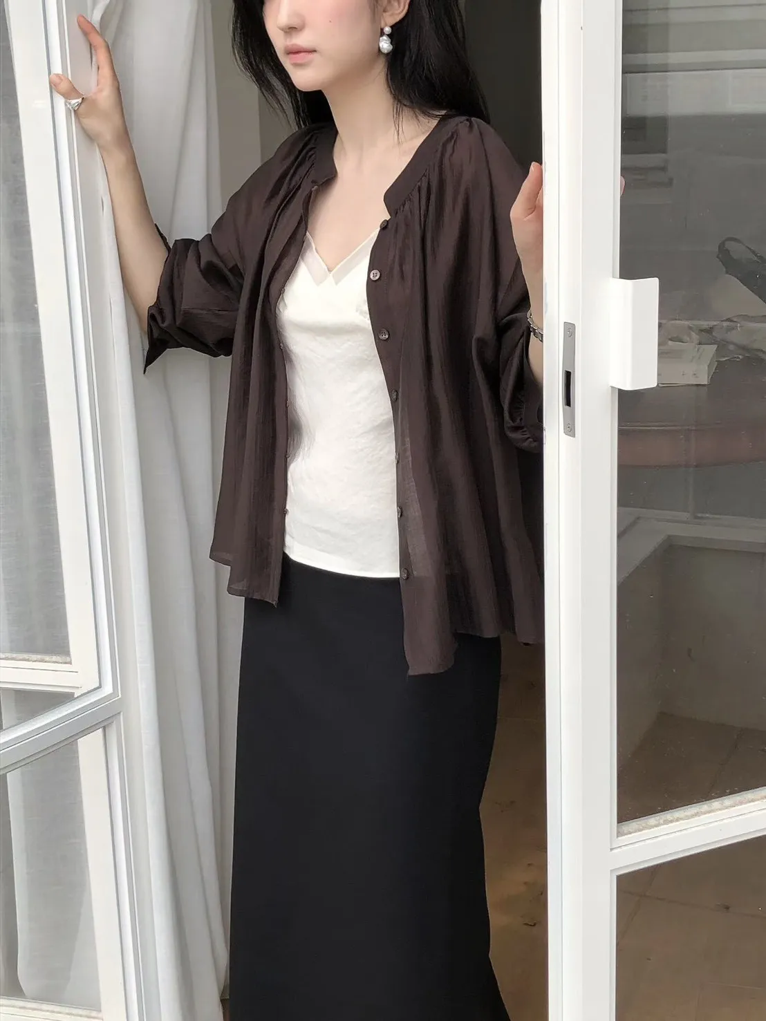 縲縈+聚酯 薄款透光 排釦穿脫 輕盈柔軟 細緻微光澤