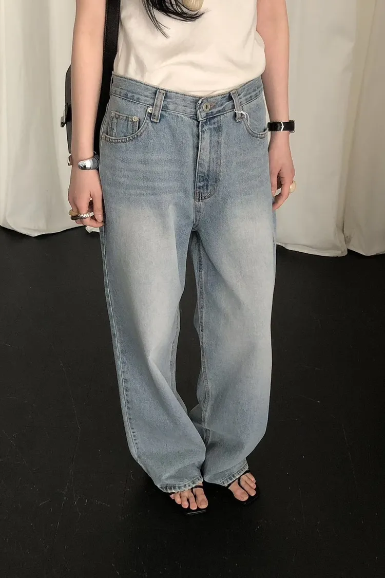 棉 復古淡藍刷色 釦練穿脫 有口袋 腰無鬆緊 台灣夏天可穿