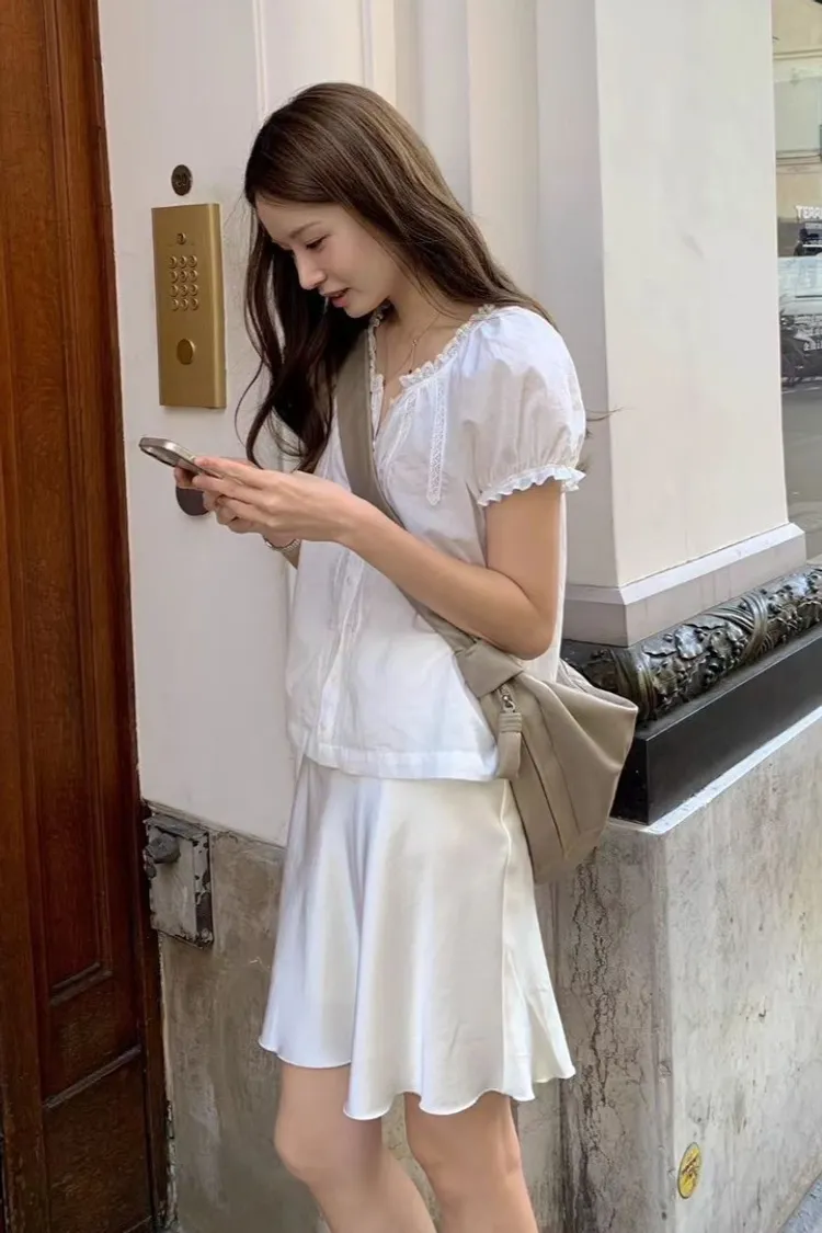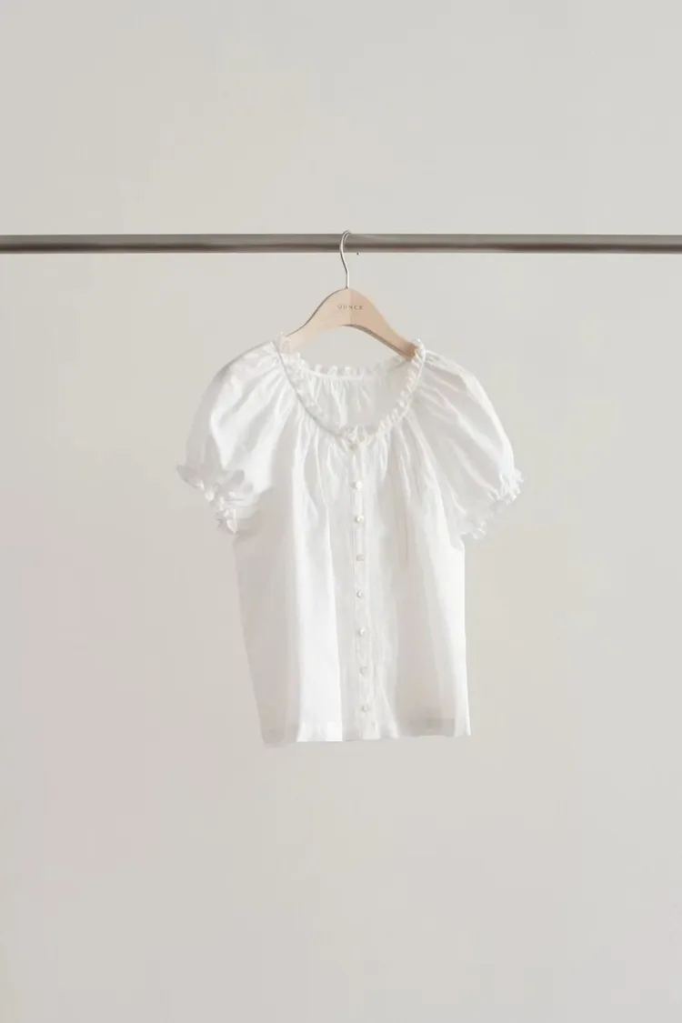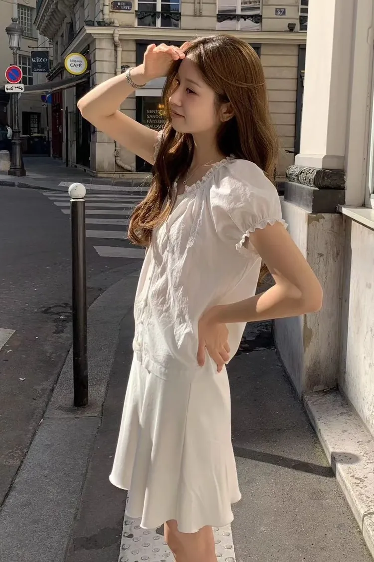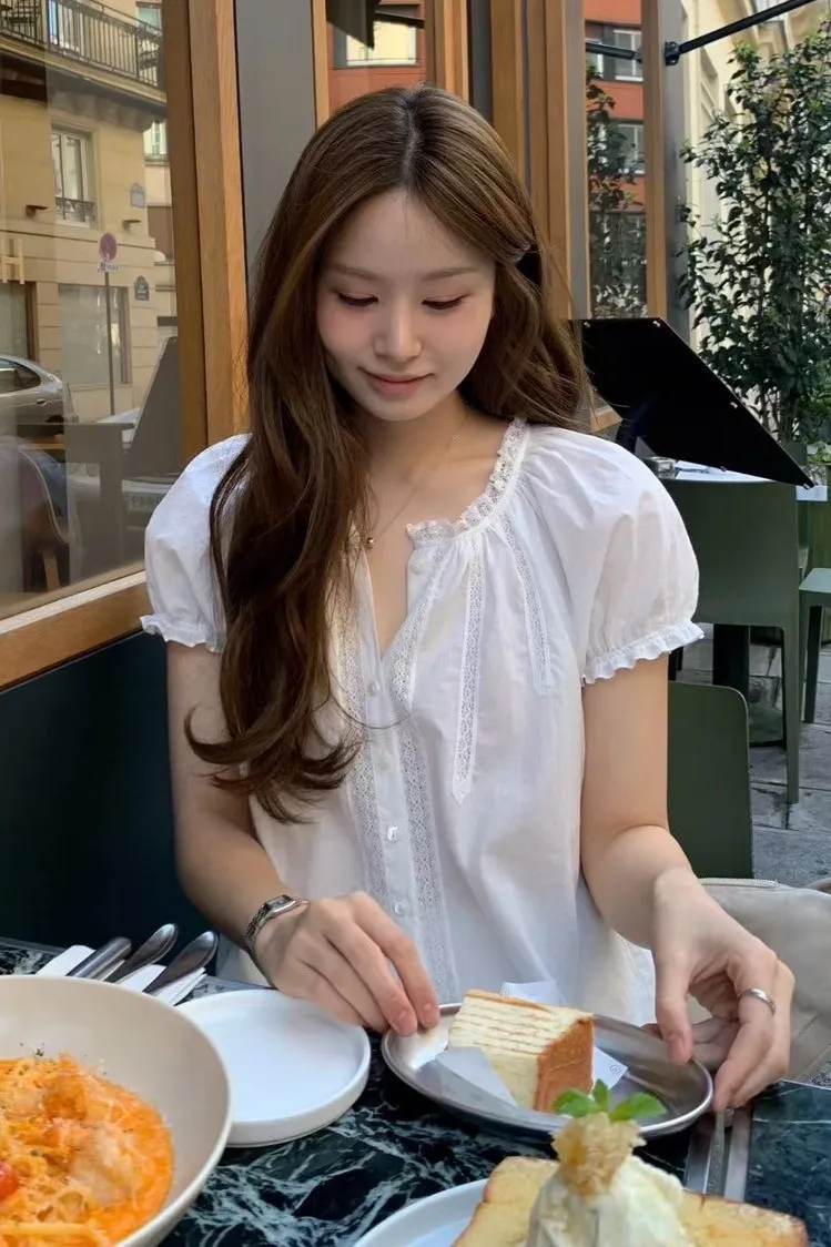 棉 薄款輕盈 透光沁涼 荷葉蕾絲滾邊 排釦穿脫 胸前細緻蕾絲