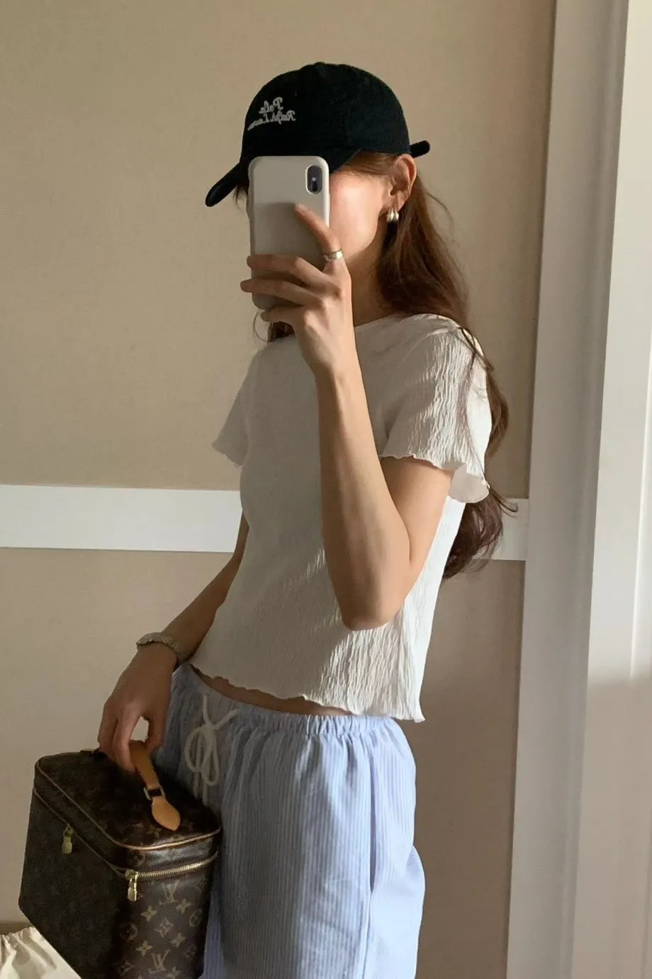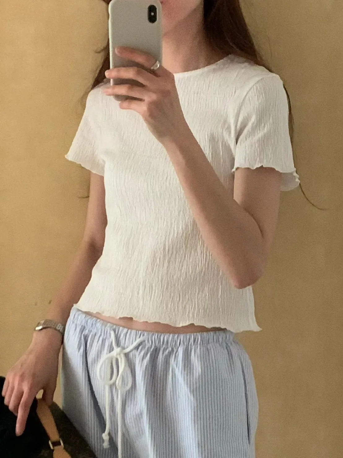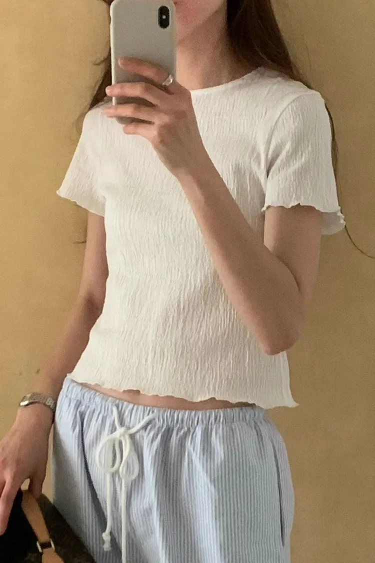 棉+彈力 推薦款 木耳滾邊 親膚舒適 細緻坑條不易皺 整件有彈性