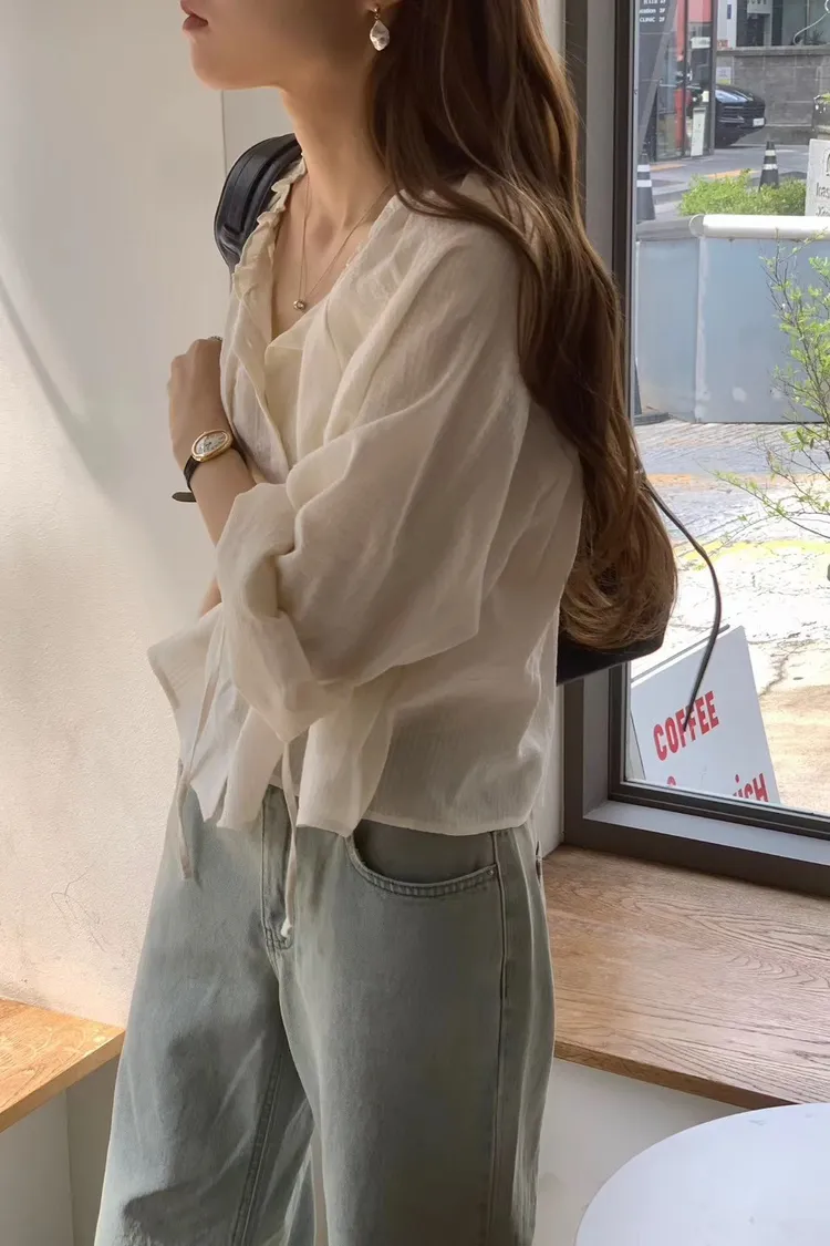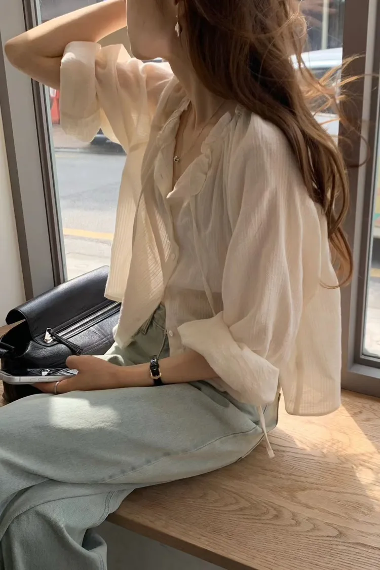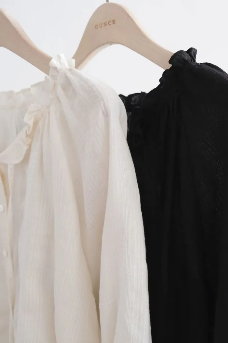 棉 薄款透光 細緻紋理 荷葉滾邊 不易皺 胸綁帶 排釦穿脫