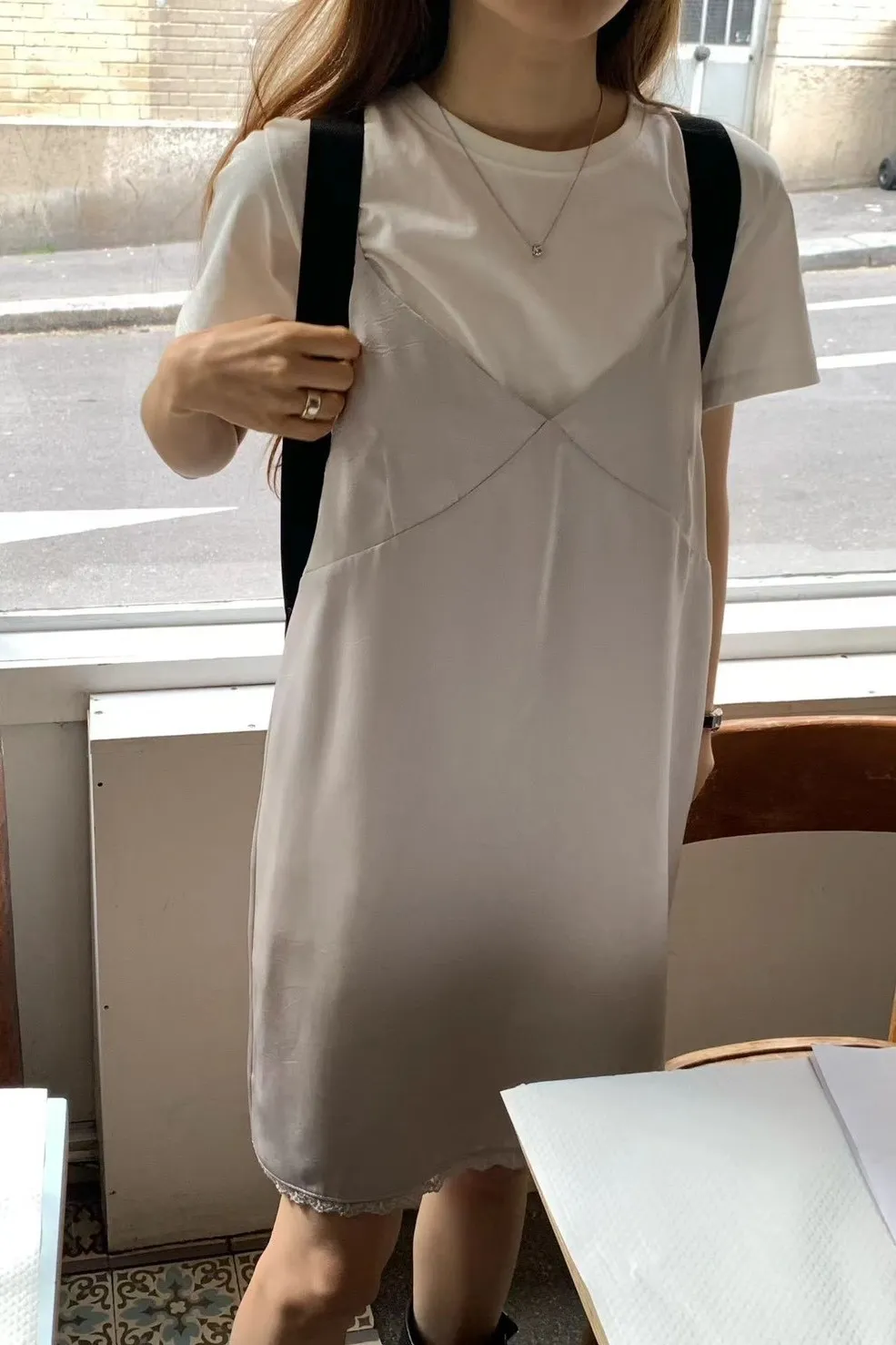 聚酯 有內裡 下擺蕾絲 肩帶可調 內部寬鬆佳 穿到M號