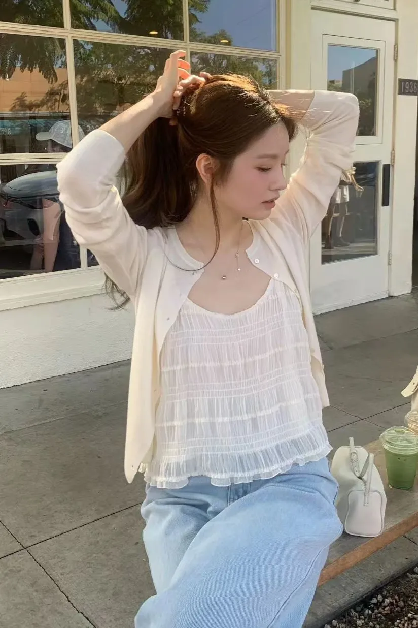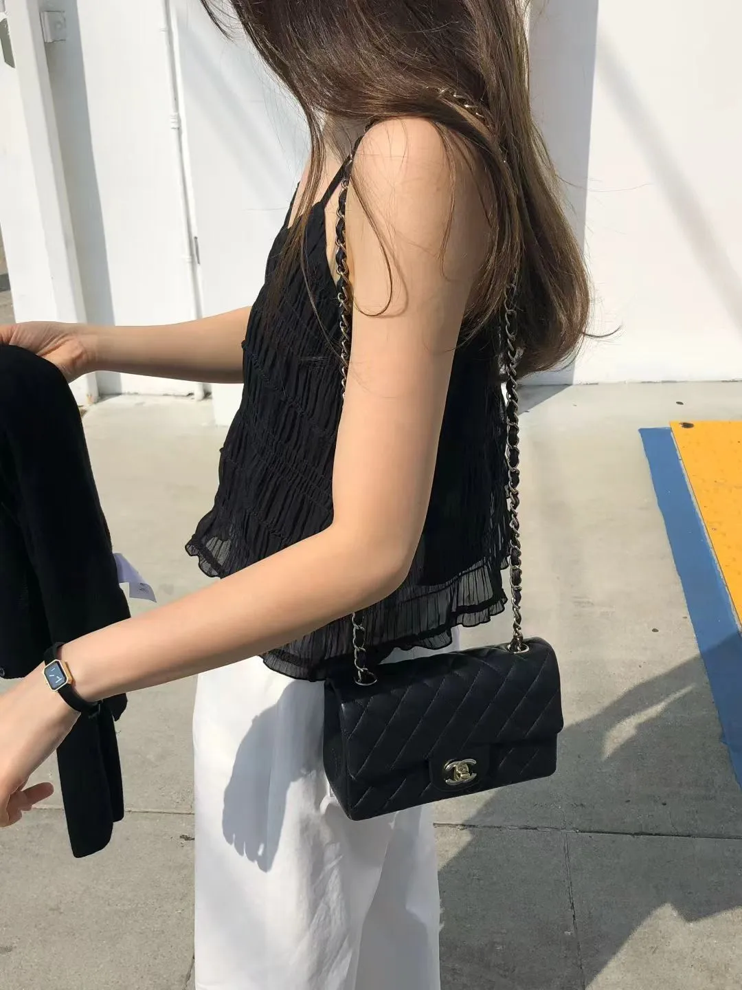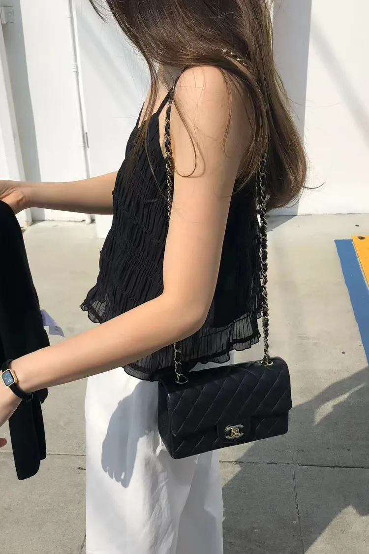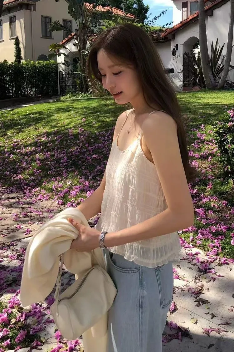 聚酯 薄款微透 有彈性 肩帶可調 下擺荷葉 細皺紋裡 有內裡