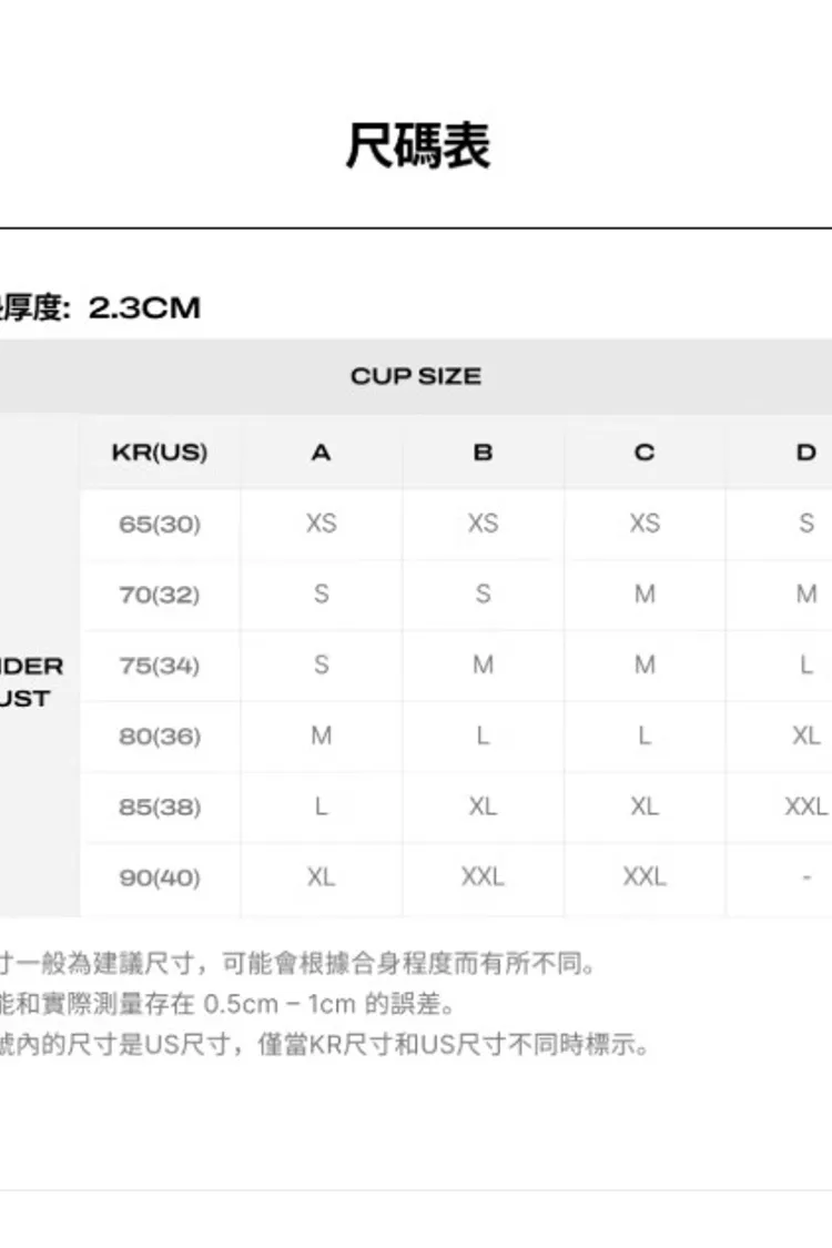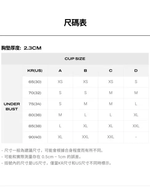 - 胸墊:無鋼圈,一體成型/厚2.3厘米