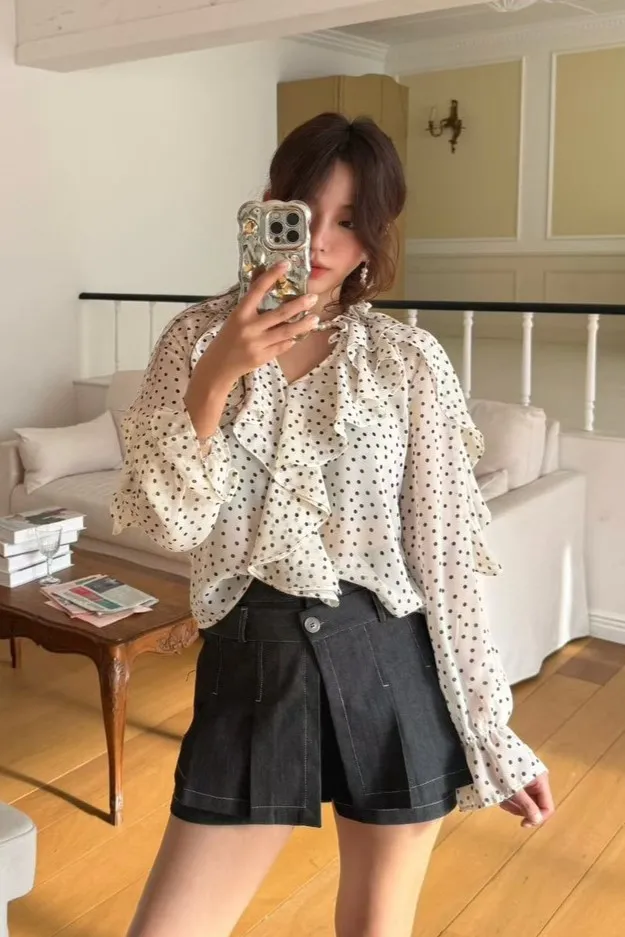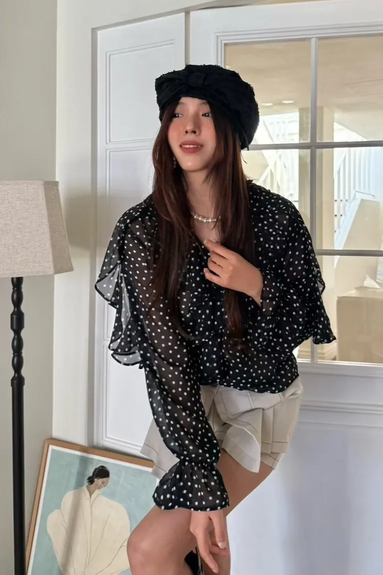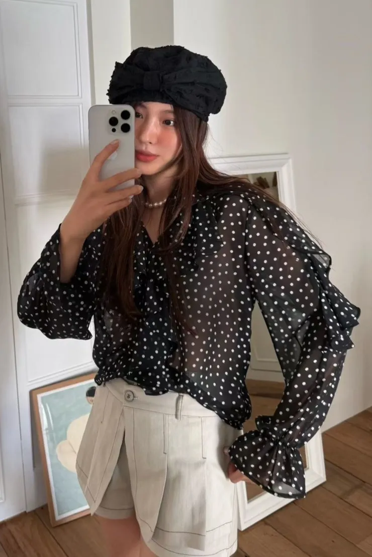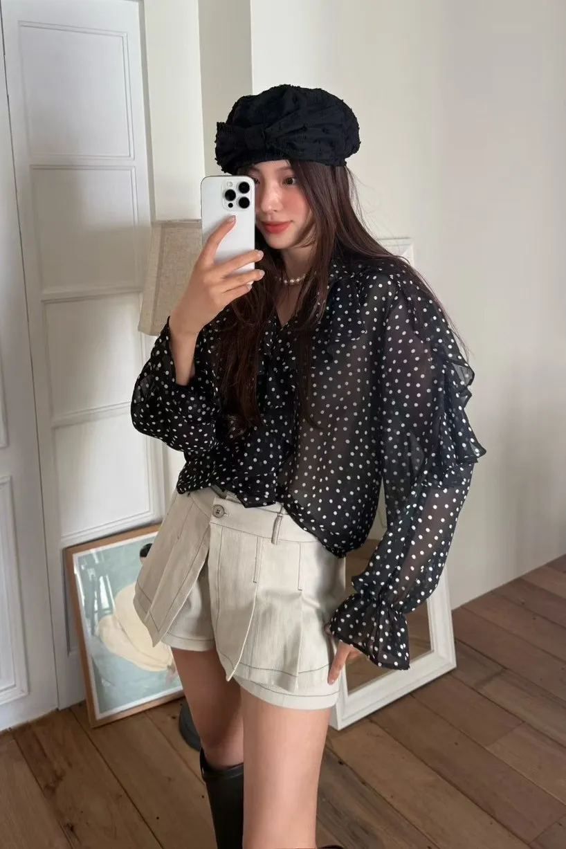 雪紡 薄款飄逸 細緻垂墜感 百搭復古細點點 透光視覺