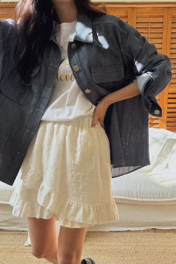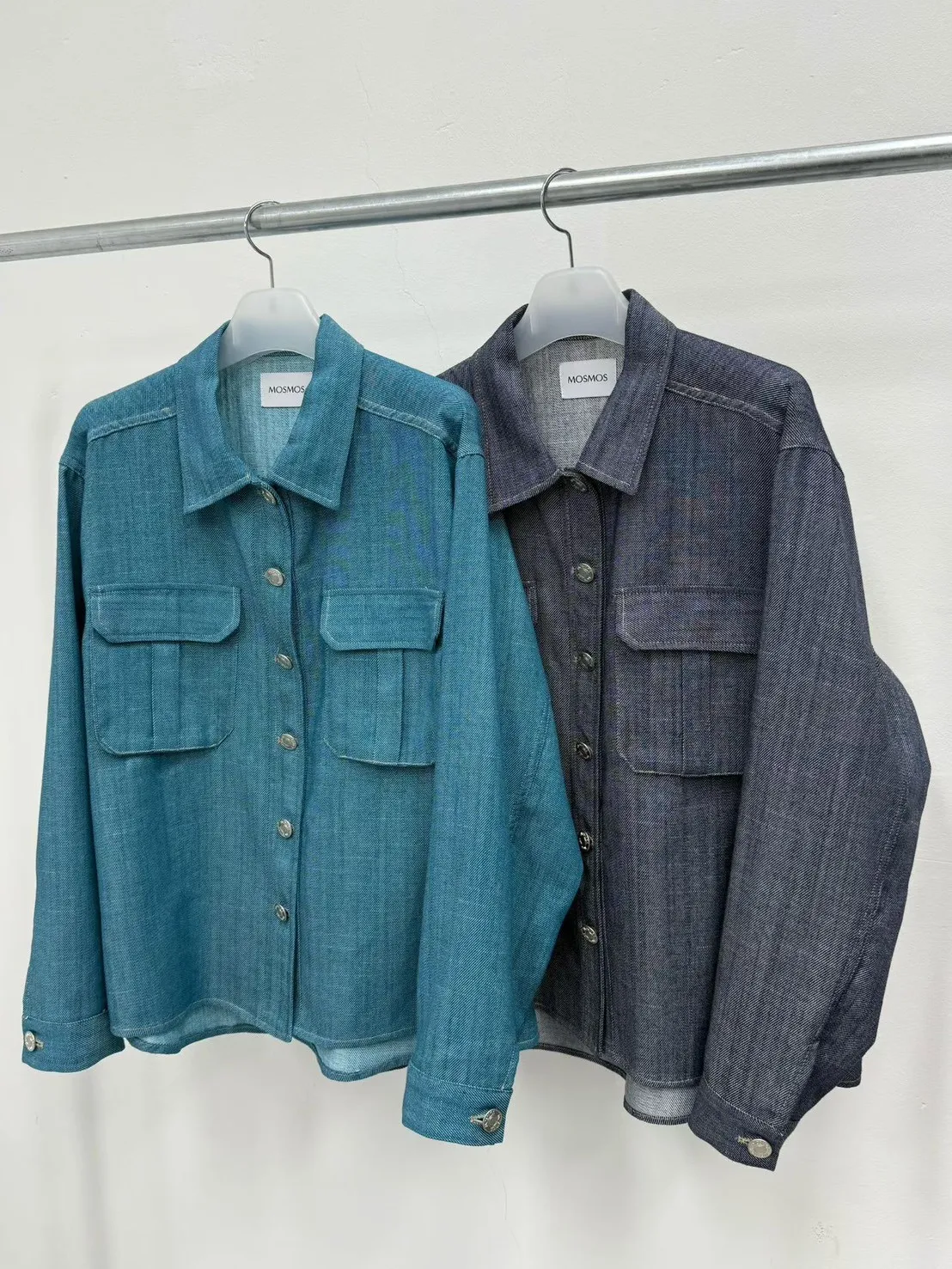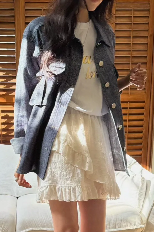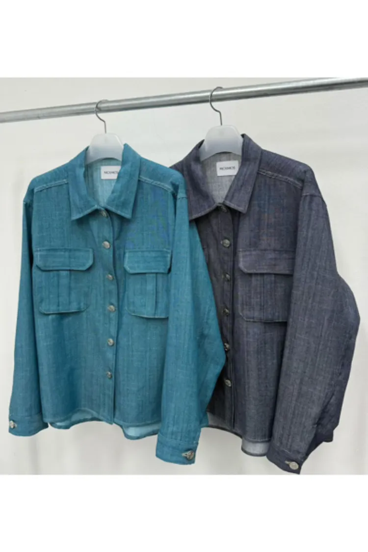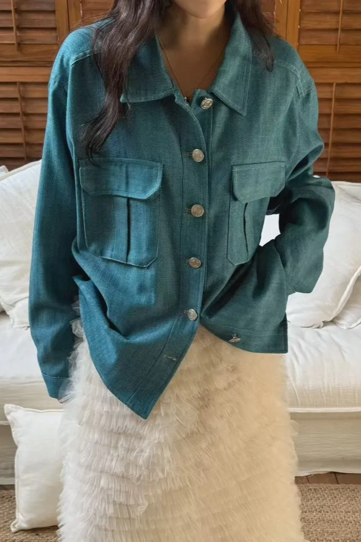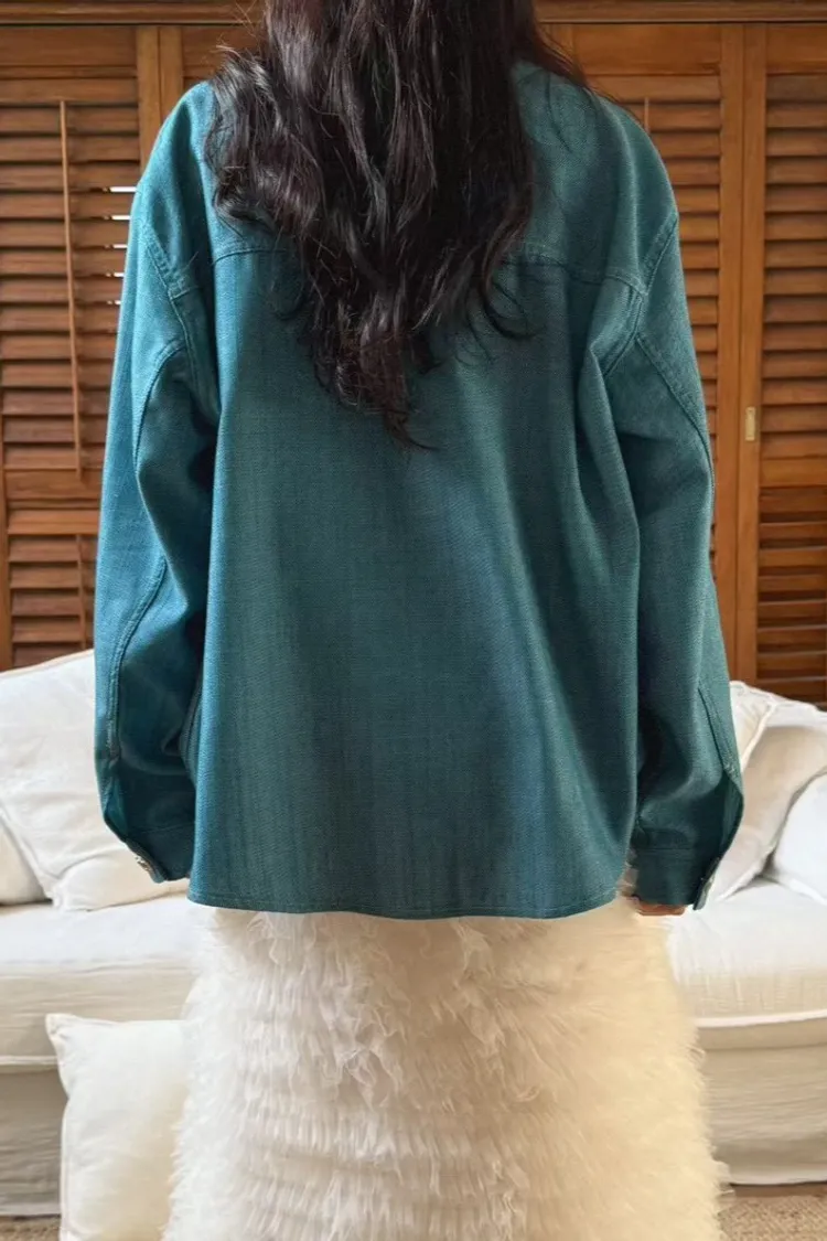 QB017薄款百搭襯衫棉外套上衣 綠 深藍 官網價$1520 線上價$1490棉 薄款面料 不易皺 柔軟材質 無內裡直播中韓國歐膩穿的是綠色,NANA穿的是深藍肩寬51胸寬66臂寬25袖長59袖口13全長66以下為深藍穿搭👇🏻 以下為綠色穿搭👇🏻 以下顏色,綠>藍